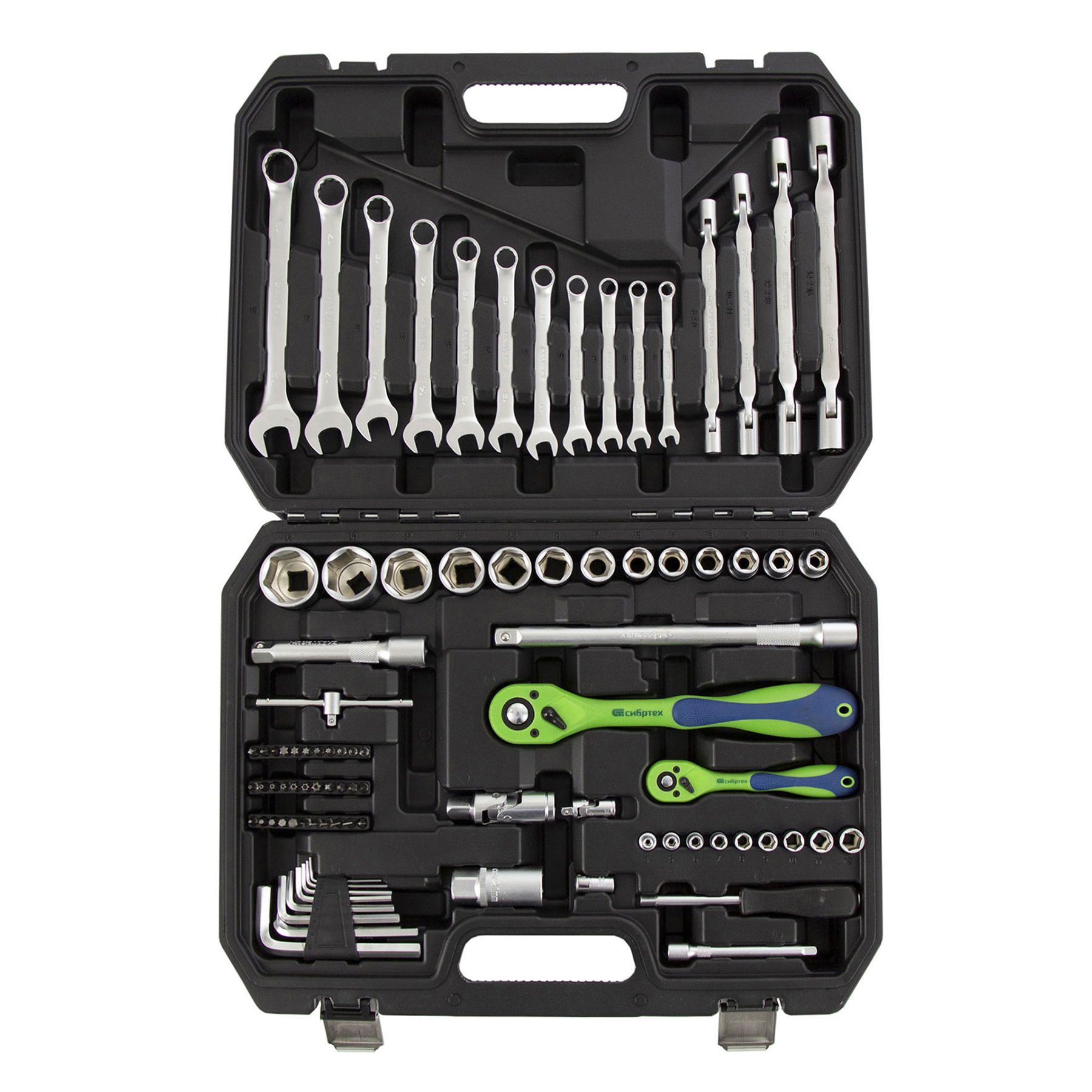 Набор инструментов Сибртех 13529 упакован в пластиковый кейс и состоит из 89 предметов из стали CrV, с присоединительными размерами 1/2" и 1/4". Предназначен для монтажа и демонтажа резьбового крепежа с разными типами шлицев. В комплект поставки входят карданы, удлинители и шарнирные ключи, облегчающие работу в труднодоступных местах. Набор используется для ремонта автомобилей, а также полезен в быту.