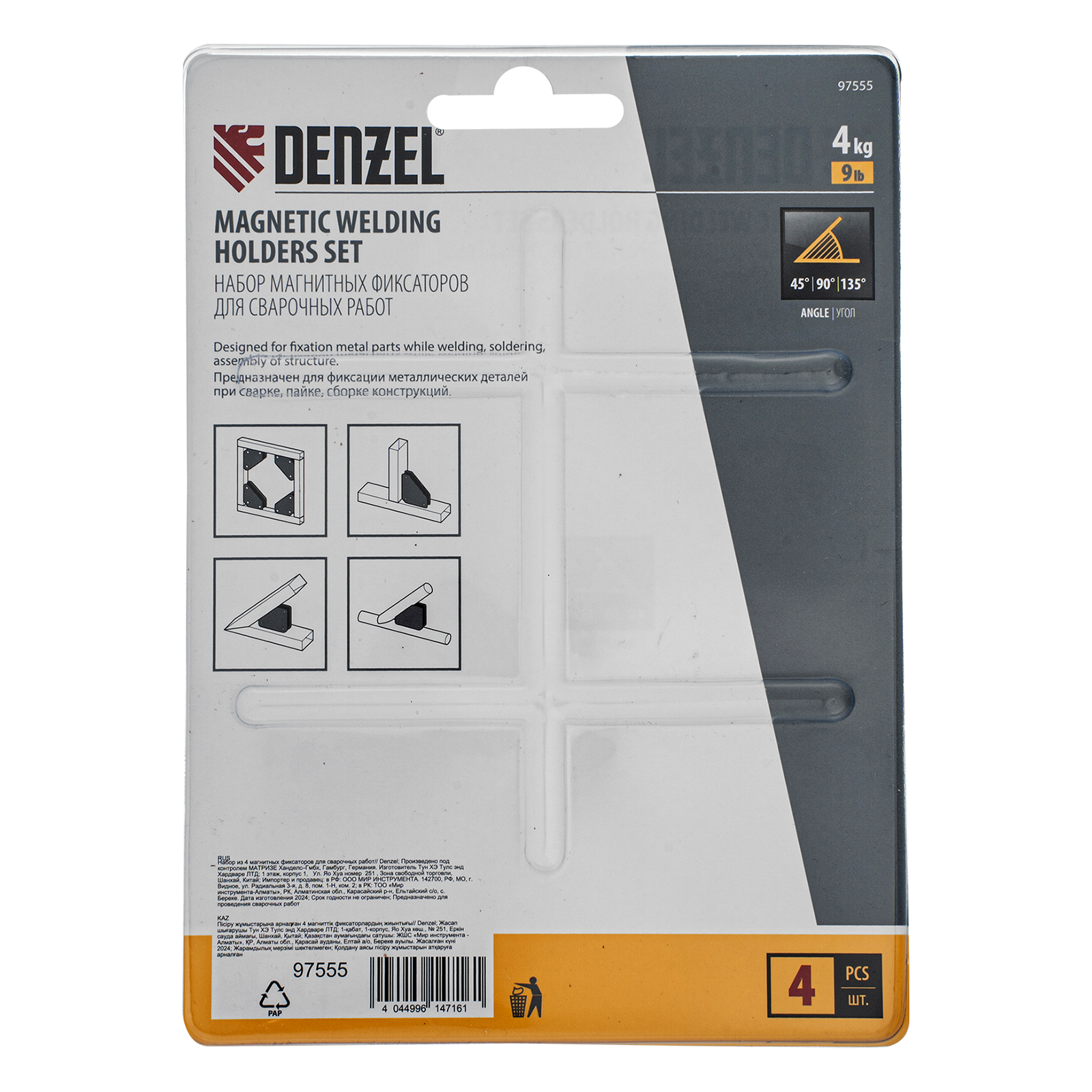 Набор из 4 магнитных фиксаторов для сварочных работ Denzel 97555 идеально подходит для выстраивания небольших металлических конструкций. Уголки обеспечивают надежную фиксацию деталей весом до 4 кг при выполнении сварочных и паяльных работ, поэтому работать можно в одиночку без чьей-либо помощи. При одновременном использовании всех фиксаторов из набора можно выстроить сразу 4 точных угла конструкции.