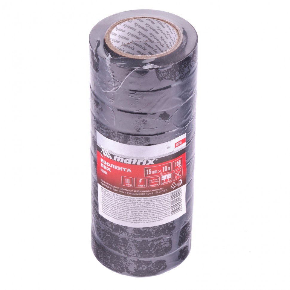 Набор черных изолент из ПВХ Matrix 88785 размером 15 мм x 10 м, толщиной 150 мкм, 10 шт. в упаковке, используется при проведении электромонтажных работ. Универсальные изоленты, сочетающие эластичность и высокую прочность, подходят как для бытового, так и для профессионального применения. С их помощью можно изолировать, соединять и жгутировать провода и кабели, а также маркировать их по цвету.