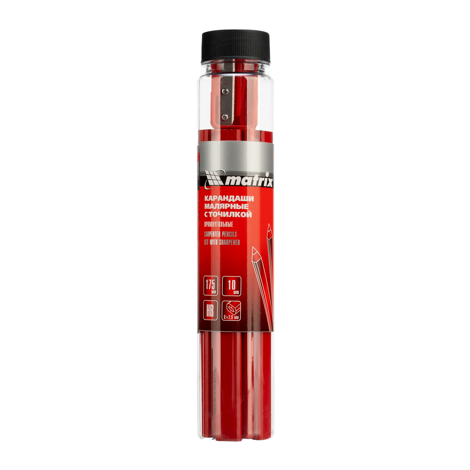 Набор Matrix 84814, упакованный в тубу, включает 10 прямоугольных малярных карандашей длиной 175 мм и точилку. Грифели средней твердости HB позволяют наносить разметку как на мягкие, так и на твердые основания, А если карандаш затупится, точилка поможет быстро вернуть ему работоспособность. Набор будет полезен для выполнения ремонтных и строительных работ.