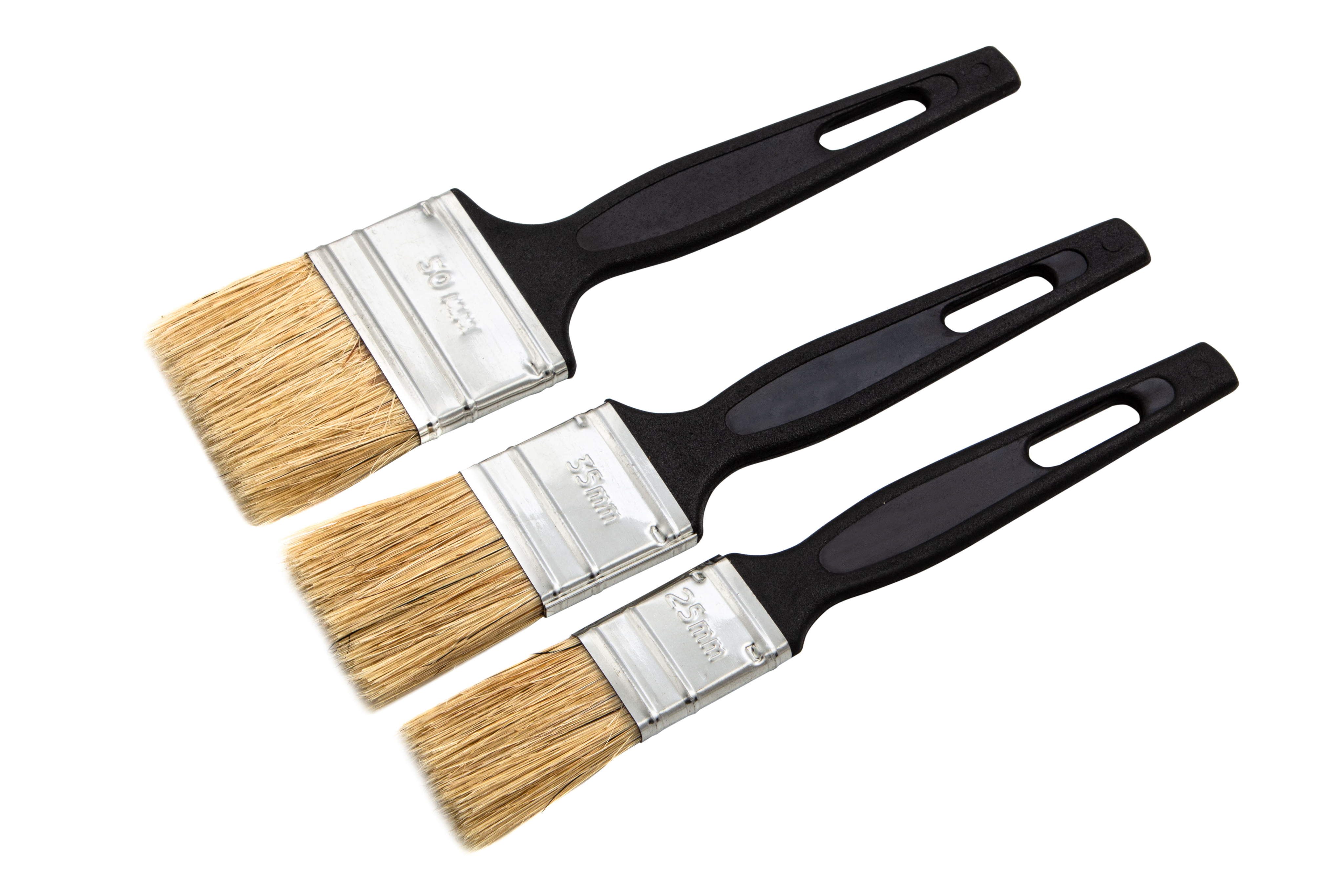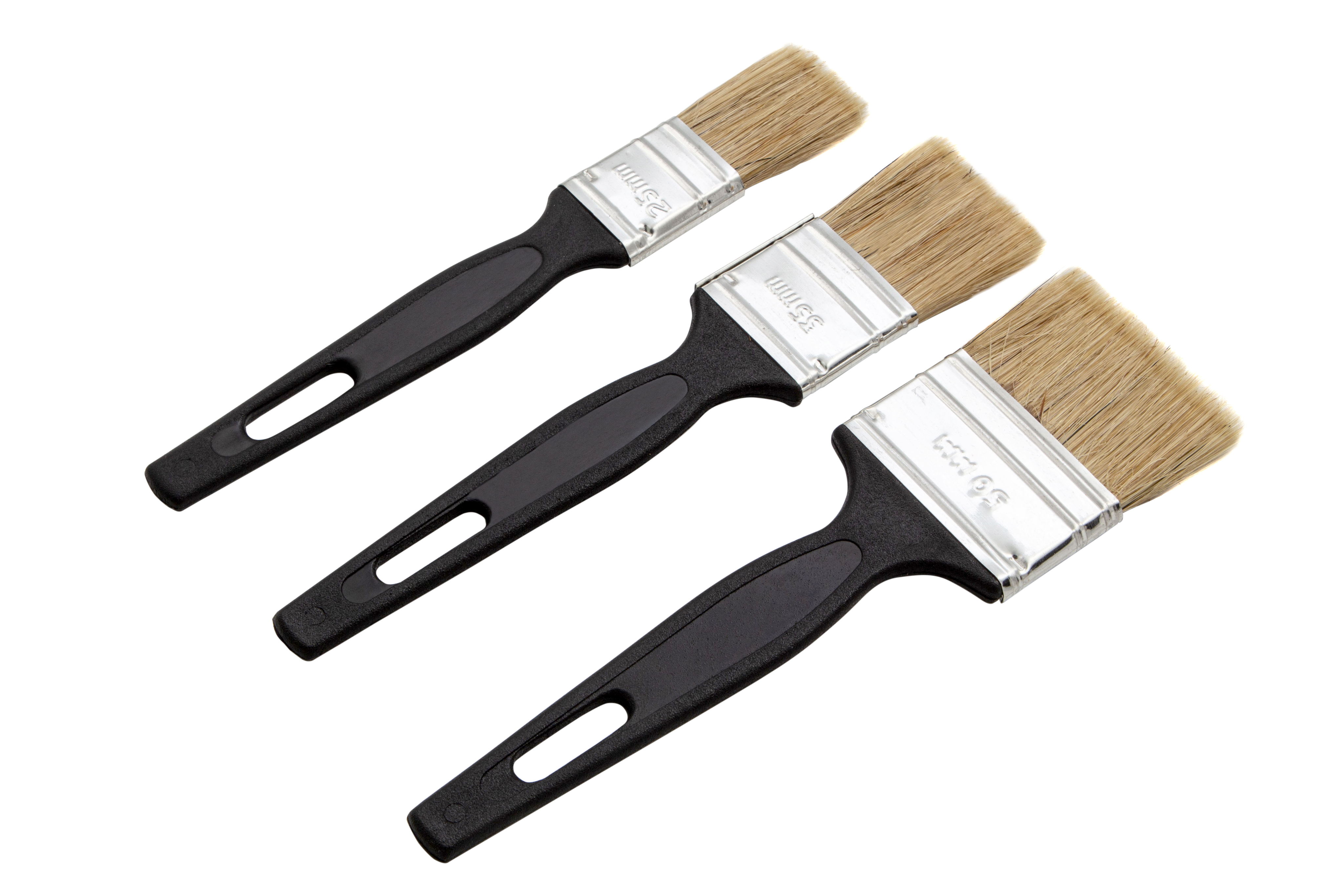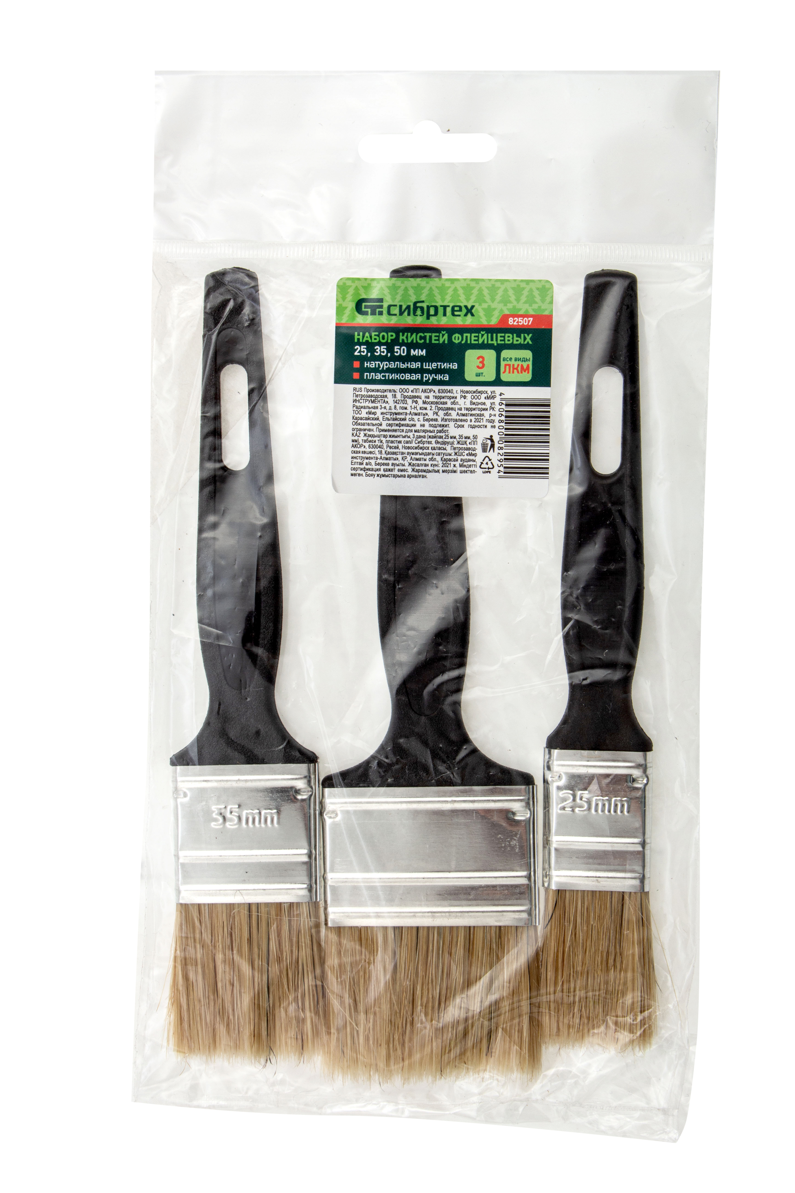 Набор Сибртех 82507 включает 3 флейцевые кисти шириной 25, 35 и 50 мм из светлой натуральной щетины, с пластиковыми ручками, предназначенные для проведения малярных работ. Узкие кисти оптимальны для окрашивания мелких деталей и работы в труднодоступных местах.