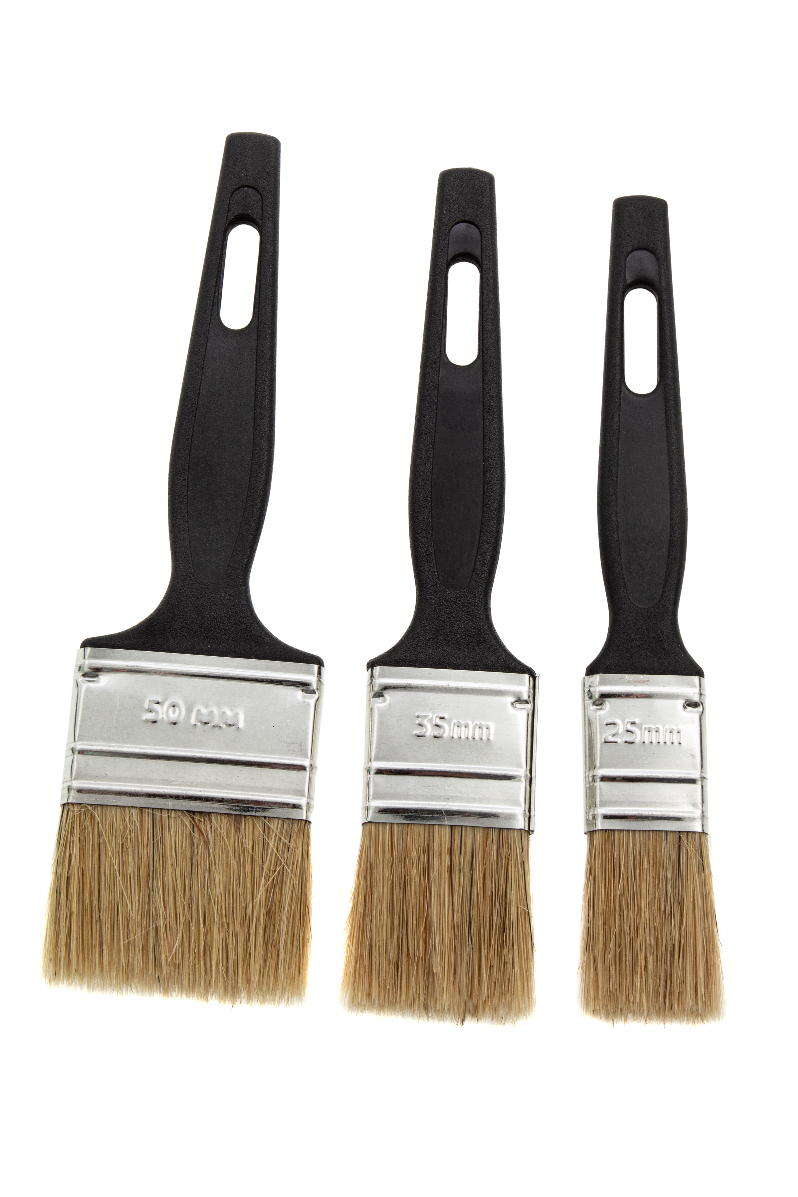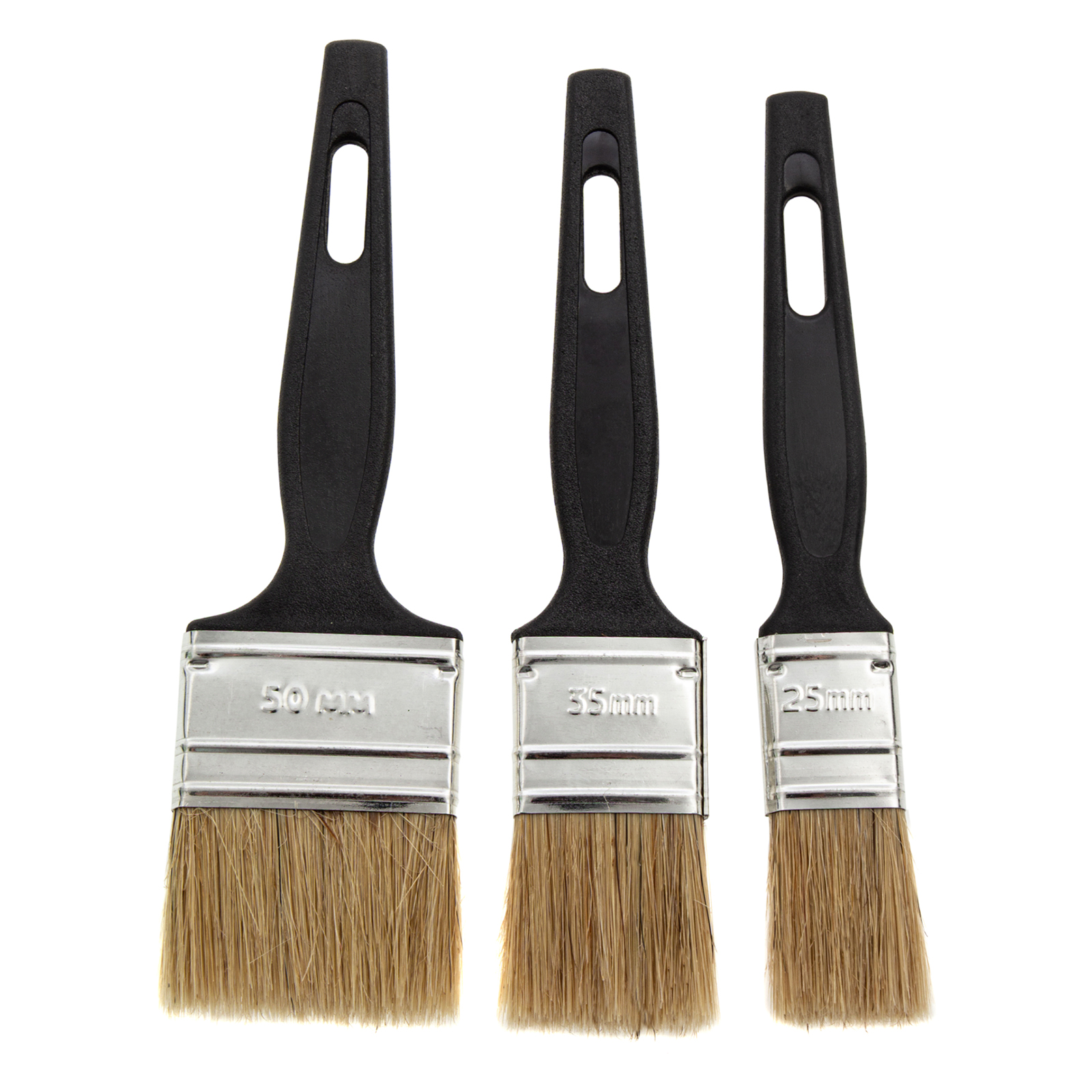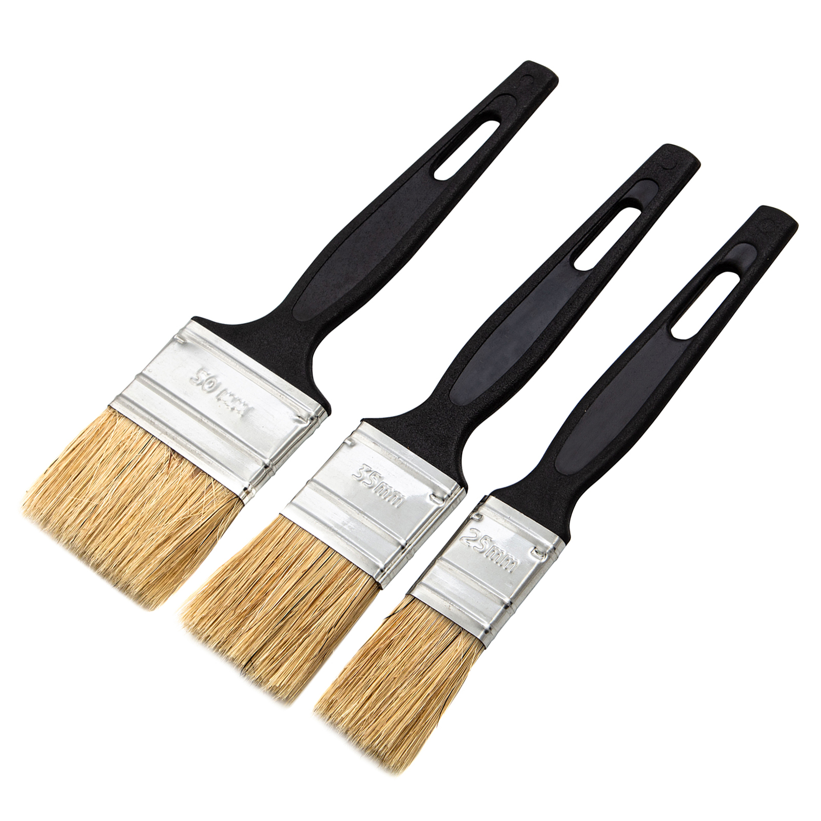 Набор Сибртех 82507 включает 3 флейцевые кисти шириной 25, 35 и 50 мм из светлой натуральной щетины, с пластиковыми ручками, предназначенные для проведения малярных работ. Узкие кисти оптимальны для окрашивания мелких деталей и работы в труднодоступных местах.