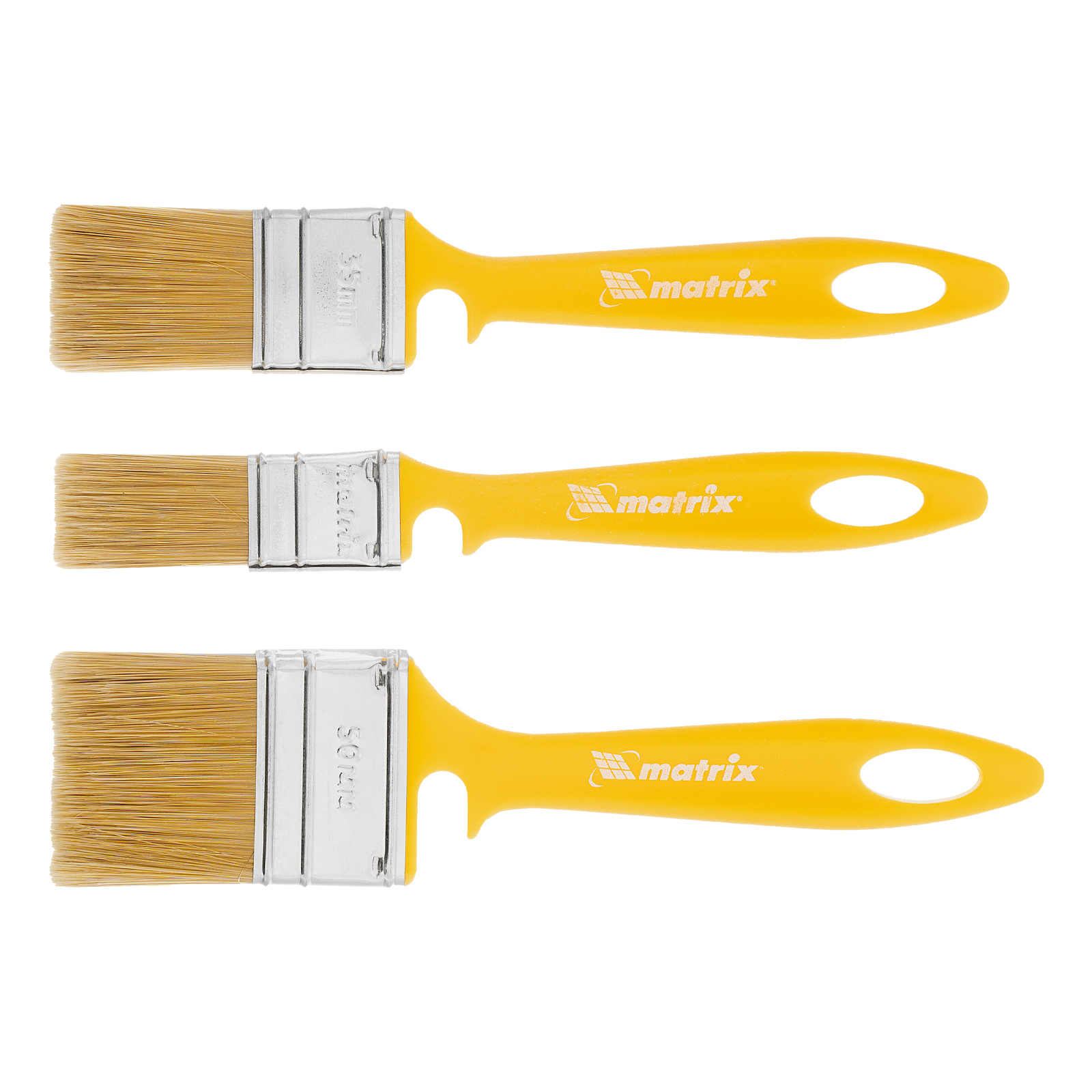 Набор Matrix Color Line «ЛАКИ» 83367 включает флейцевые кисти шириной 25, 35 и 50 мм, использующиеся для отделочных работ с применением лаков на акриловой, водной и натуральной основе. Ими удобно лакировать небольшие участки. Искусственная щетина отличается повышенной упругостью, поэтому кисти обеспечивают высокое качество работ.