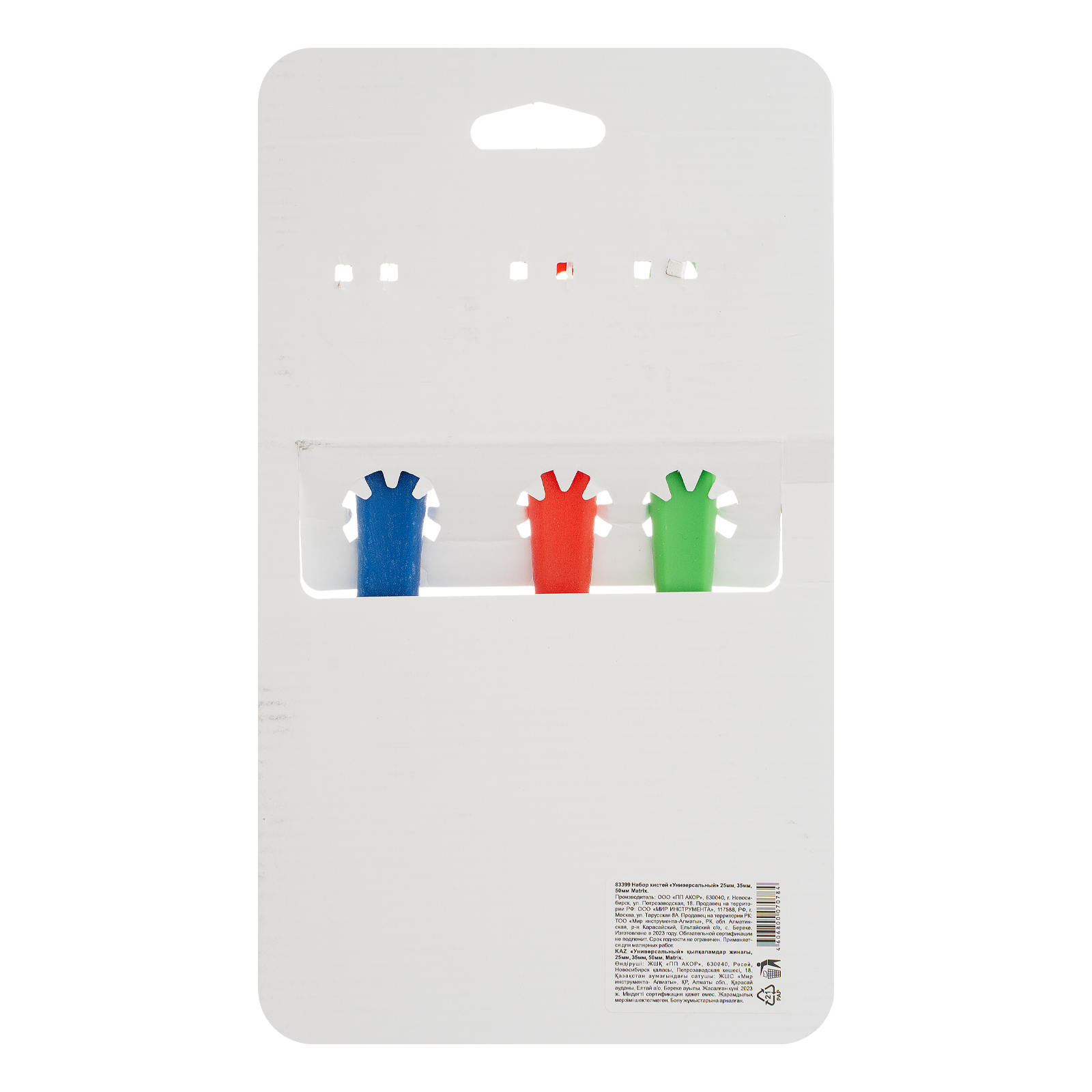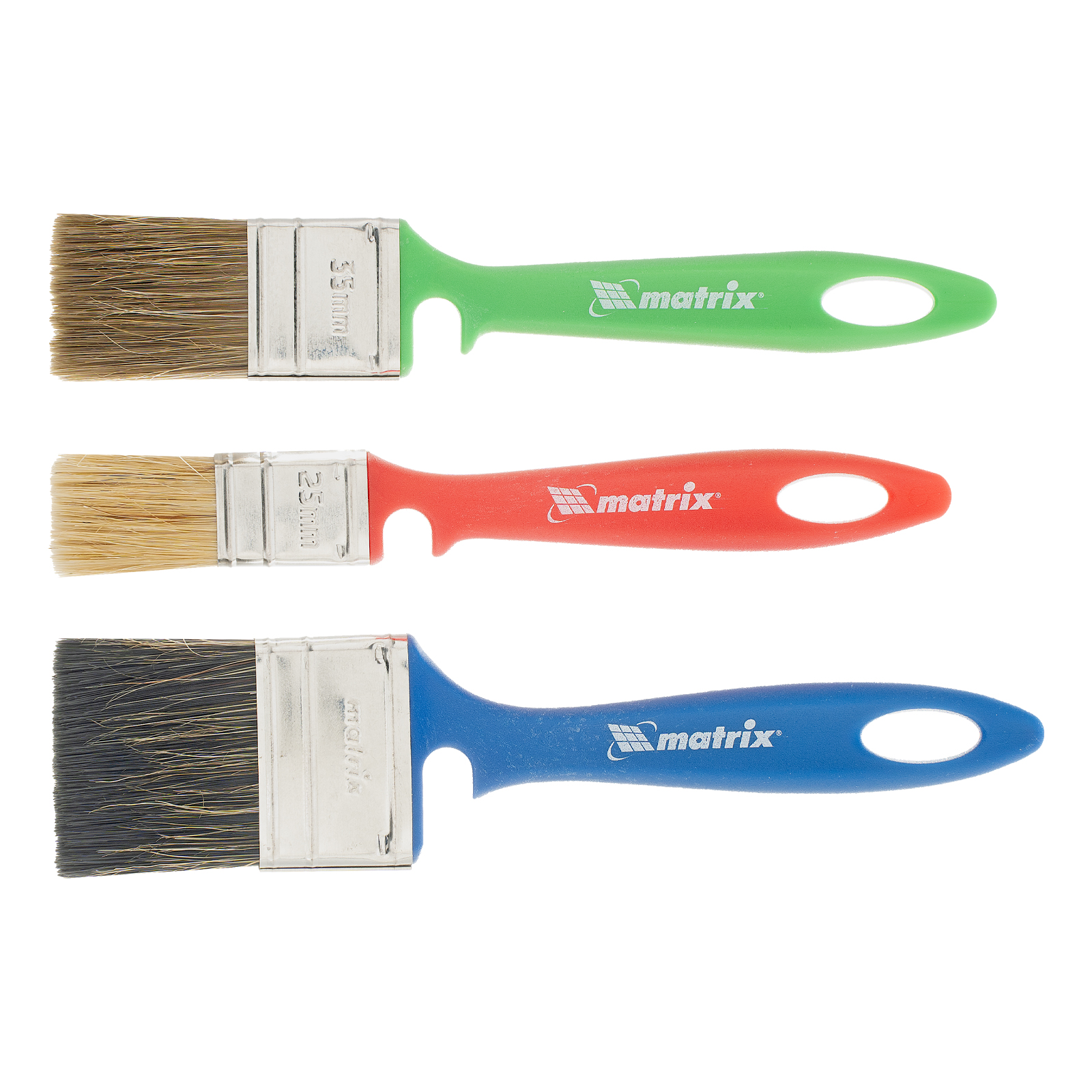 Набор Matrix Color Line «Универсальный» 83399 включает кисти шириной 25, 35 и 50 мм, подходит для выполнения отделочных работ любой сложности. Позволяет подобрать малярный инструмент в зависимости от состава, вязкости лакокрасочных материалов и типа окрашиваемой поверхности. В набор входит кисть для работы по дереву шириной 35 мм, для водных красок — 50 мм и для эмалей — 25 мм. Упругая плотная щетина с расщепленными кончиками характеризуется высокими краскообменными свойствами и обеспечивает качественное нанесение ЛКМ для каждой кисти.