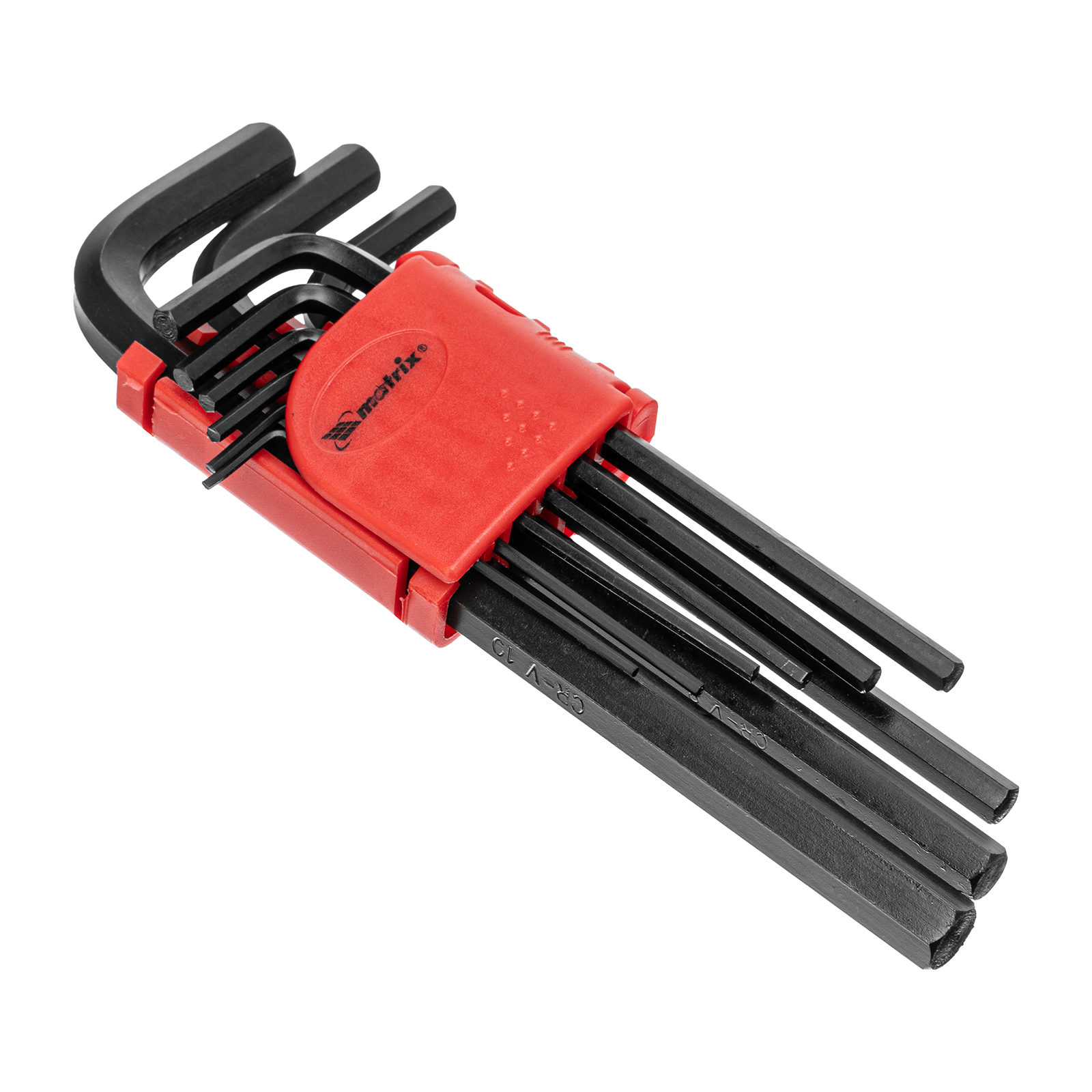 Набор Matrix 11231 из 9 удлиненных оксидированных имбусовых ключей размером 1,5-10 мм, из стали CrV, используется для монтажа и демонтажа крепежа со шлицем HEX. Шестигранники наиболее часто применяются для закручивания мебельных евровинтов и ремонта велосипедов. Удлиненные рабочие части обеспечивают удобный доступ в труднодоступные места.