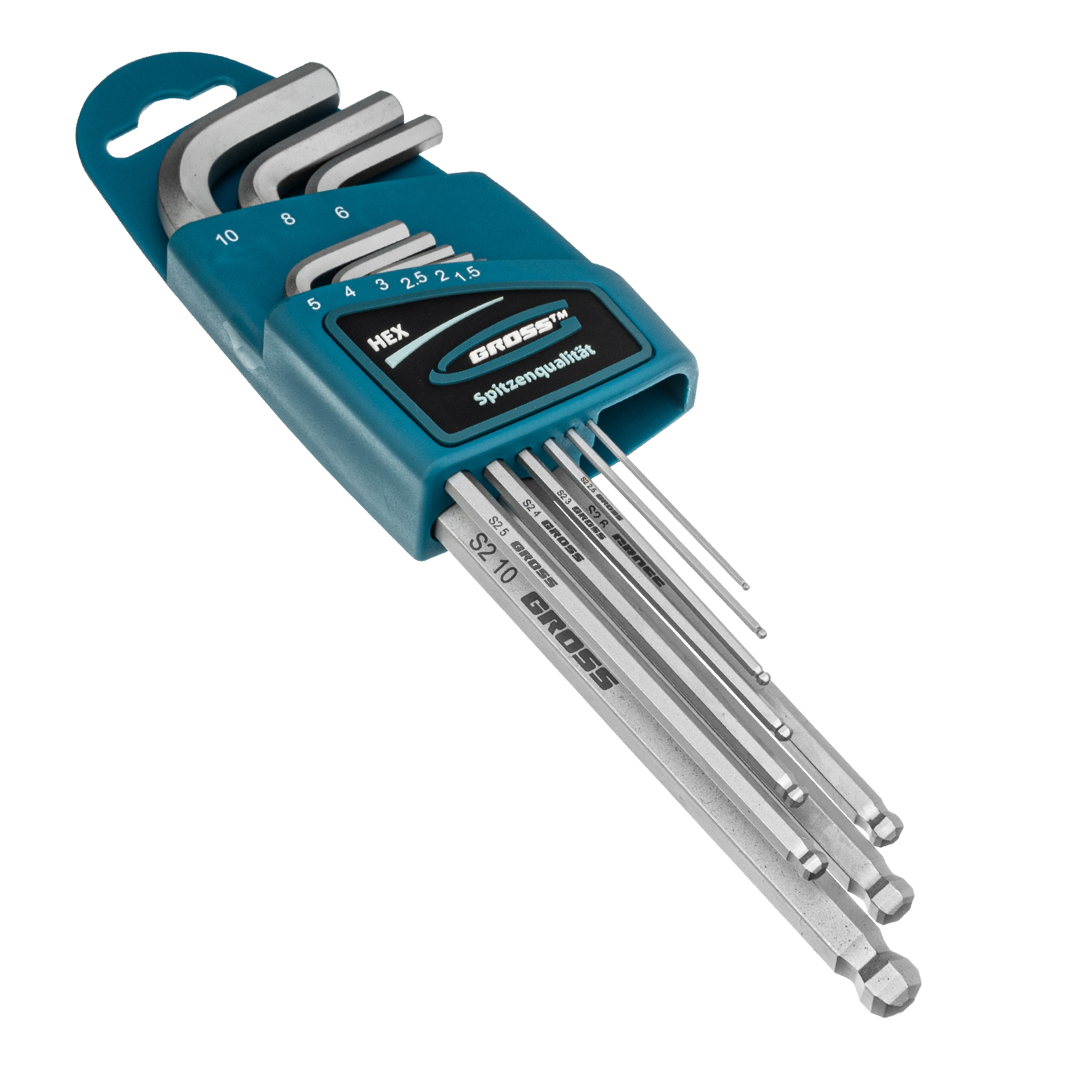 Набор Gross 16404 из стали S2 включает в себя 9 экстрадлинных сатинированных имбусовых ключей с шаром, предназначенных для закручивания и откручивания крепежа со шлицами HEX 1,5-10 мм. Благодаря увеличенной длине и Г-образной форме инструменты удобны для работы в труднодоступных местах, позволяют экономить усилия при монтаже и демонтаже крепежа. Набор пригодится для сборки мебели, ремонта велосипедов и т.д.