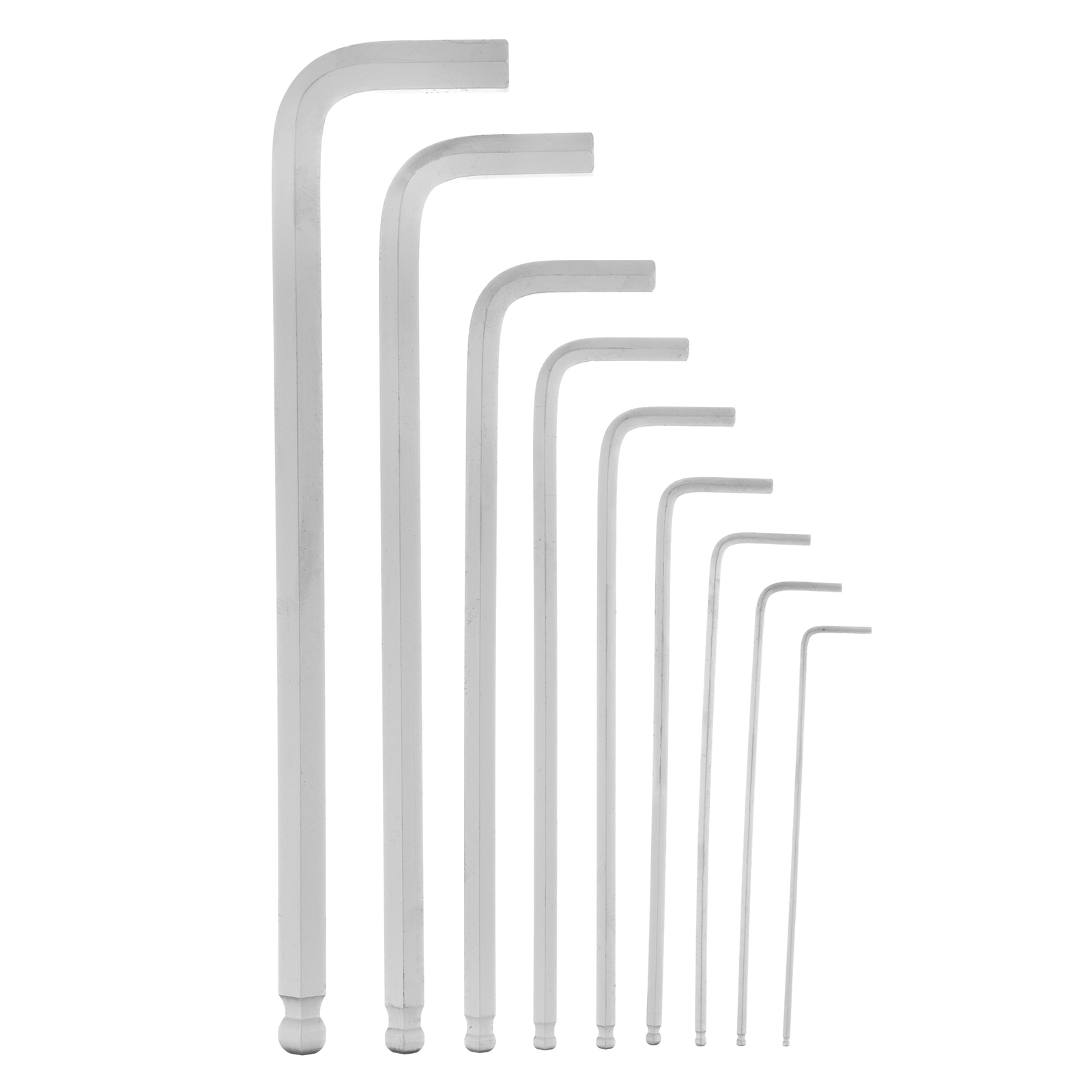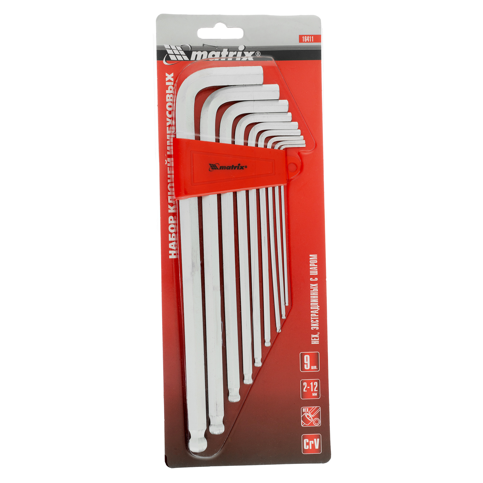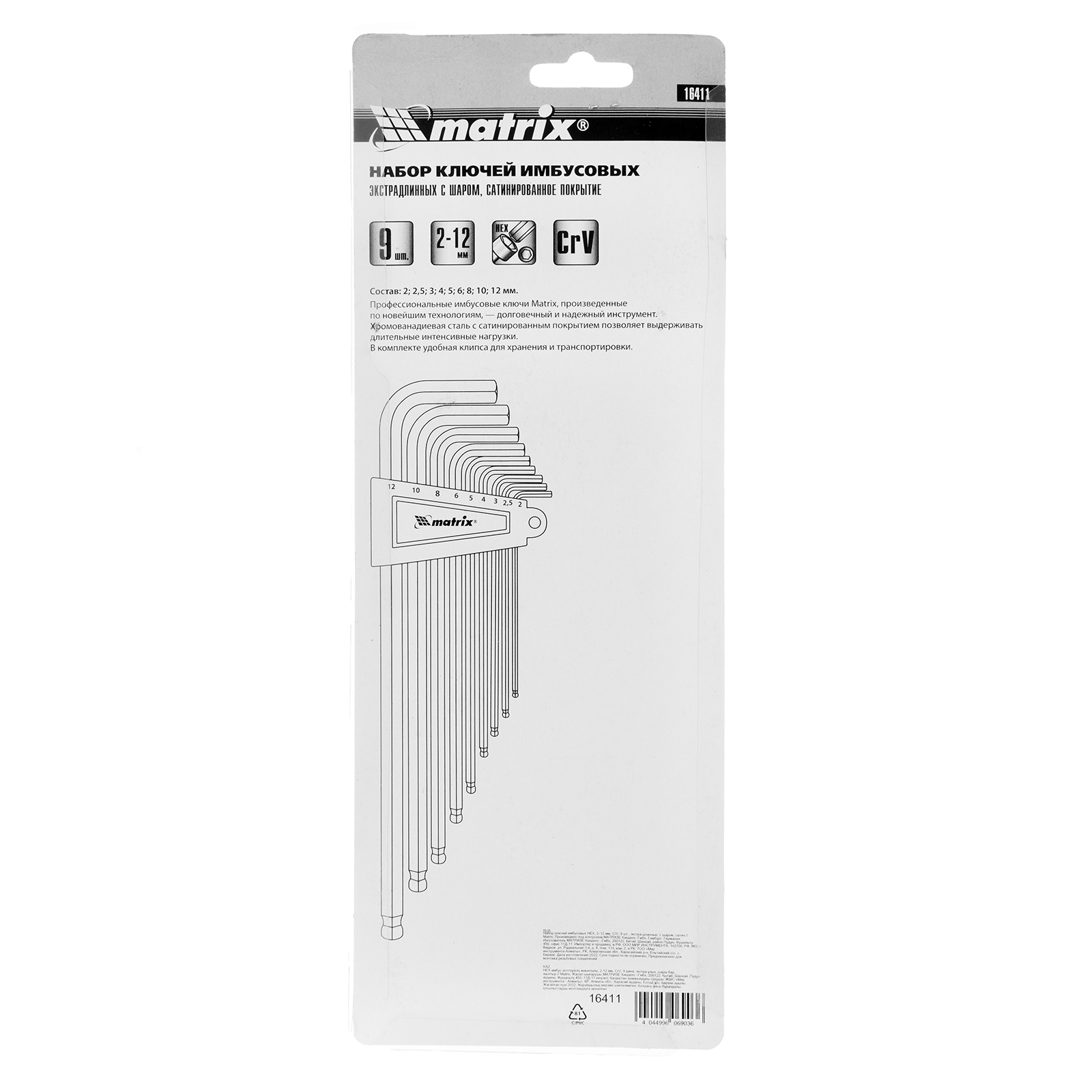 Набор из 9 экстра-длинных имбусовых ключей Matrix 16411 с шаром и сатинированным покрытием, из стали CrV, предназначен для монтажа и демонтажа болтов с внутренним шестигранником HEX 2-12 мм. Набор будет полезен для сборки мебели и ремонта велосипедов. Экстра-длинные ключи Г-образной формы облегчают работу в труднодоступных местах.