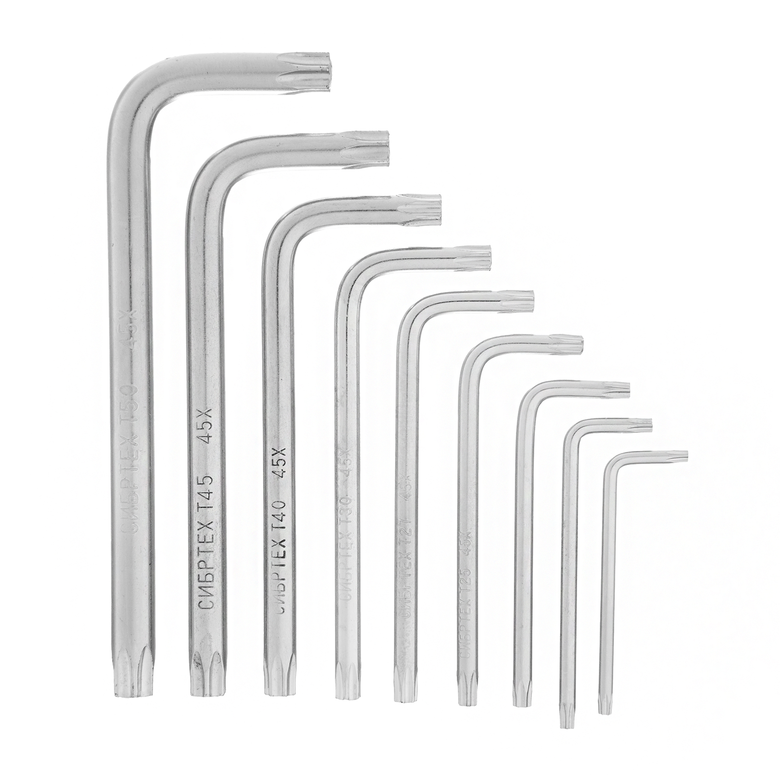 Набор Сибртех 12321 состоит из 9 коротких имбусовых ключей TT10-TT50, выполненных из закаленной стали 45Х. Предназначен для работы со специализированными крепежами, оснащенными шлицами Tamper-Torx. Ключи размером от TT10 до TT50 используются для разборки и сборки оборудования, защищенного от несанкционированного вмешательства пользователя, — например, аккумуляторных отсеков электроинструмента или бытовой техники.