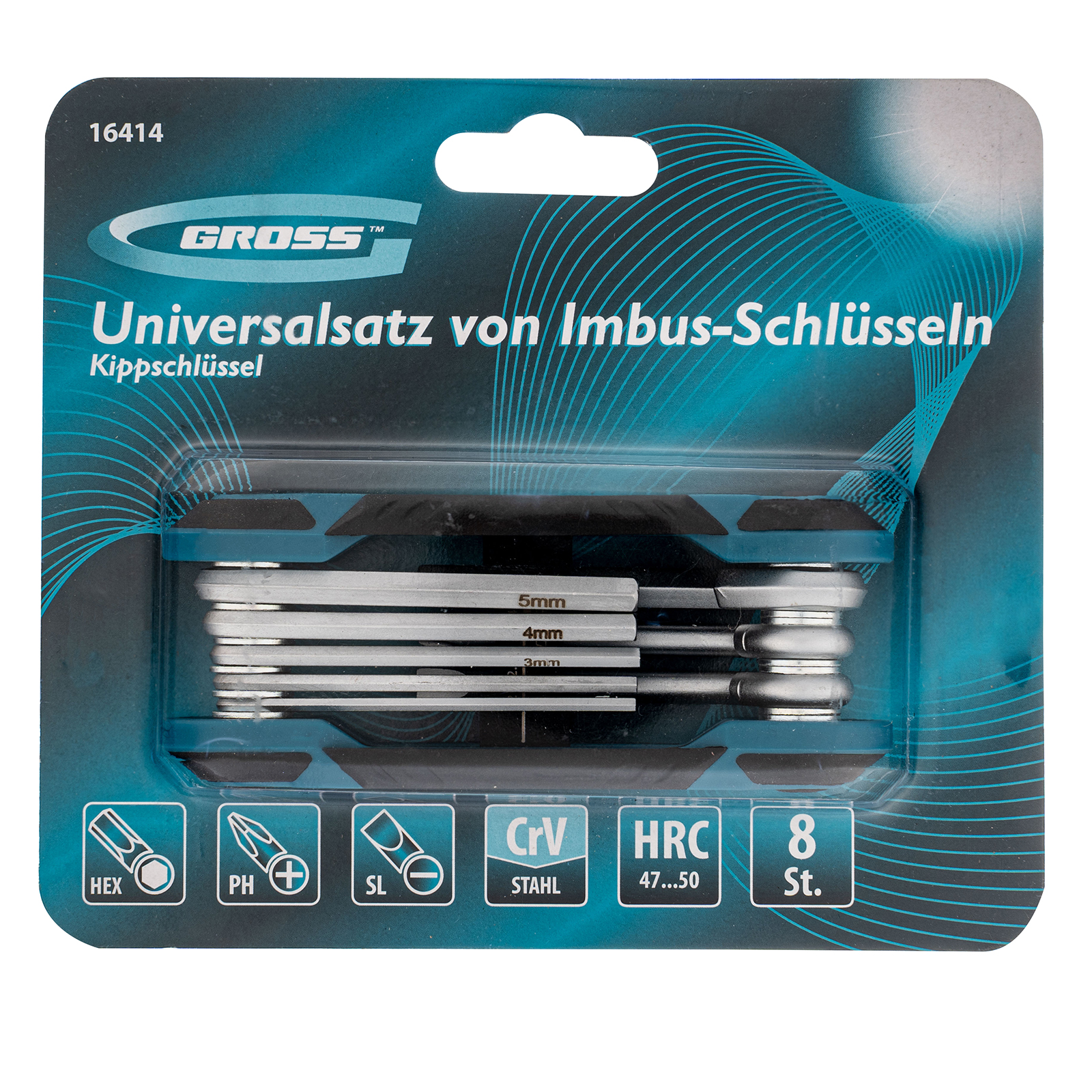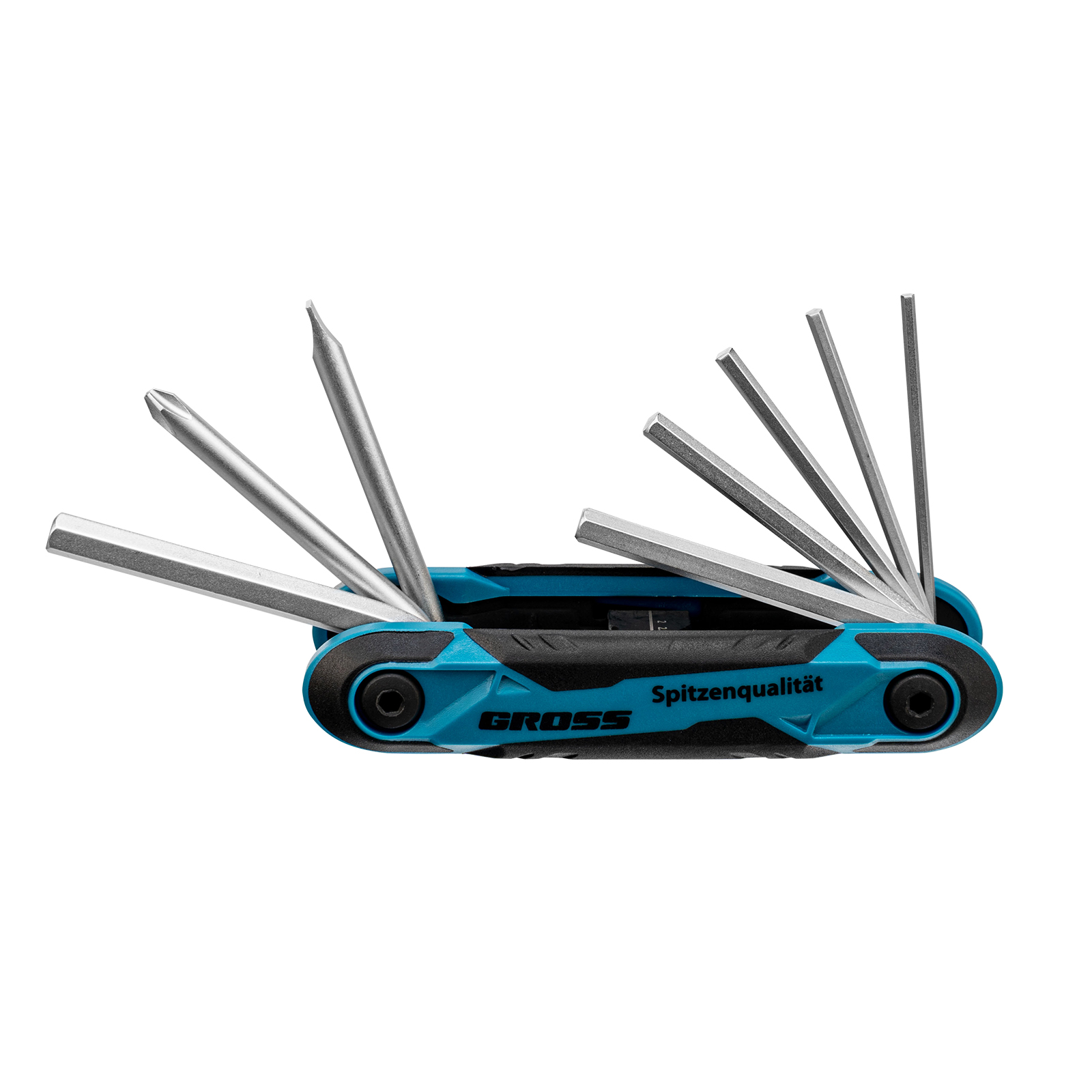 Универсальный набор складных имбусовых ключей Gross 16414 из стали CrV включает 8 предметов и применяется для демонтажа и монтажа крепежей со шлицами HEX, PH и SL. В набор входят ключи самых распространенных размеров, что позволяет решить большинство задач. С его помощью можно собрать мебель, отремонтировать спортинвентарь, бытовую технику. Набор подходит для профессионального и домашнего использования.