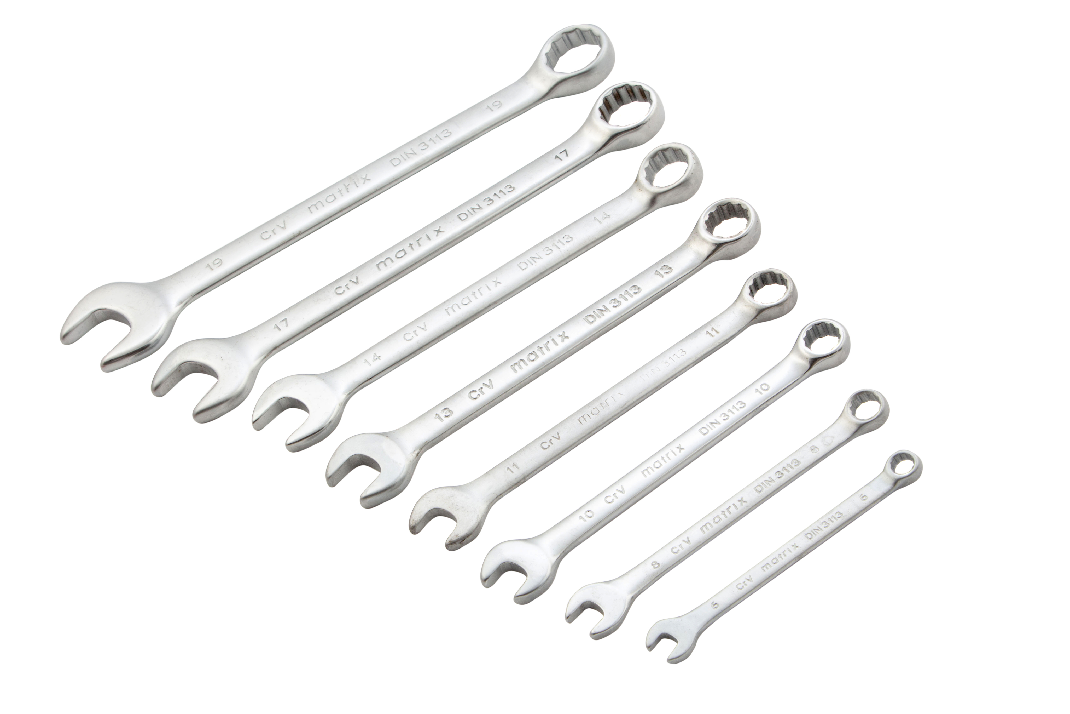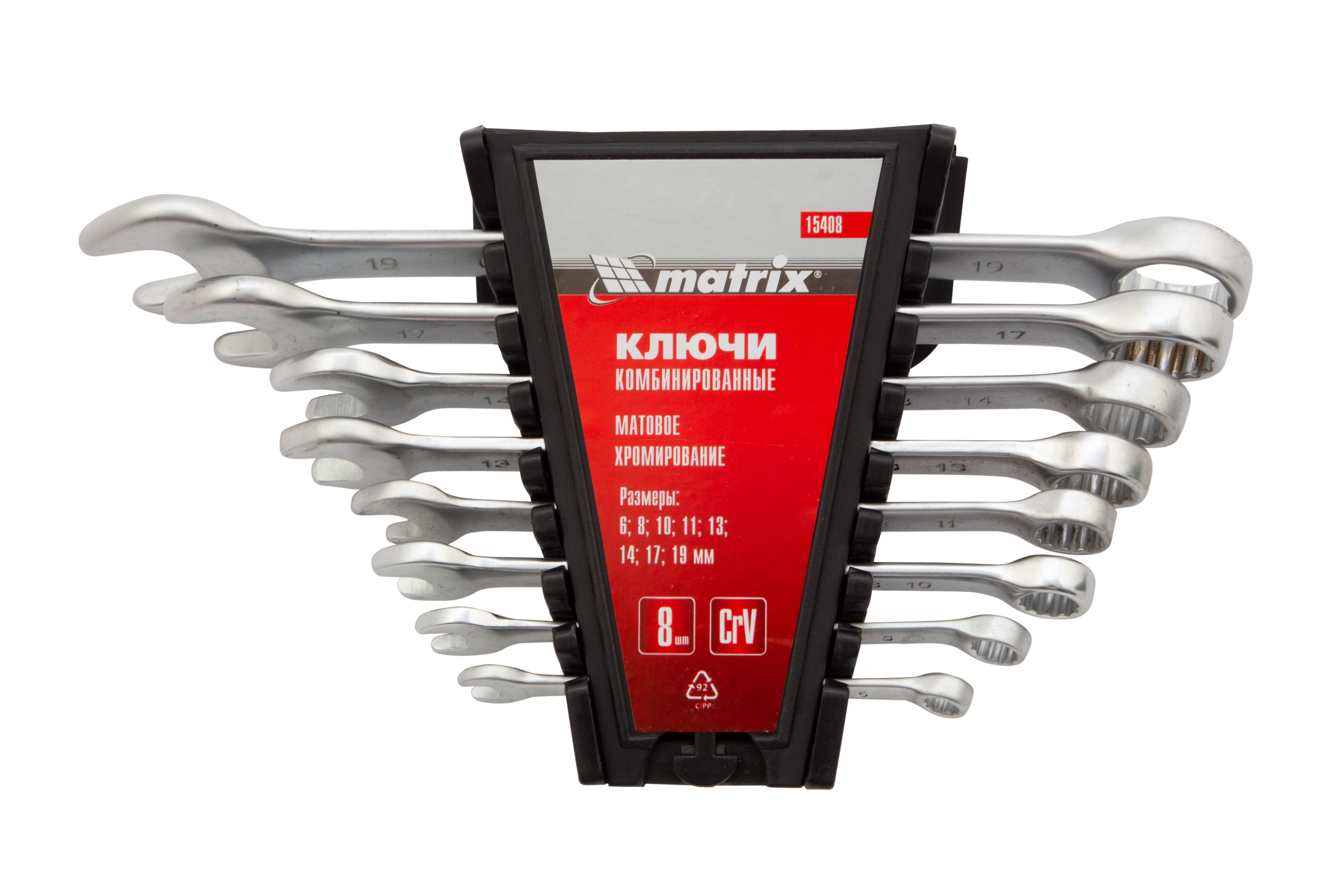 Набор Matrix 15408 включает 6 комбинированных ключей из стали CrV, размером 6-19 мм, с покрытием «матовый хром», которые пригодятся во время ремонтных работ дома или в гараже. С их помощью можно быстро монтировать и демонтировать крепежные элементы. В набор входят инструменты основных типоразмеров, позволяющие эффективно решать поставленные задачи.