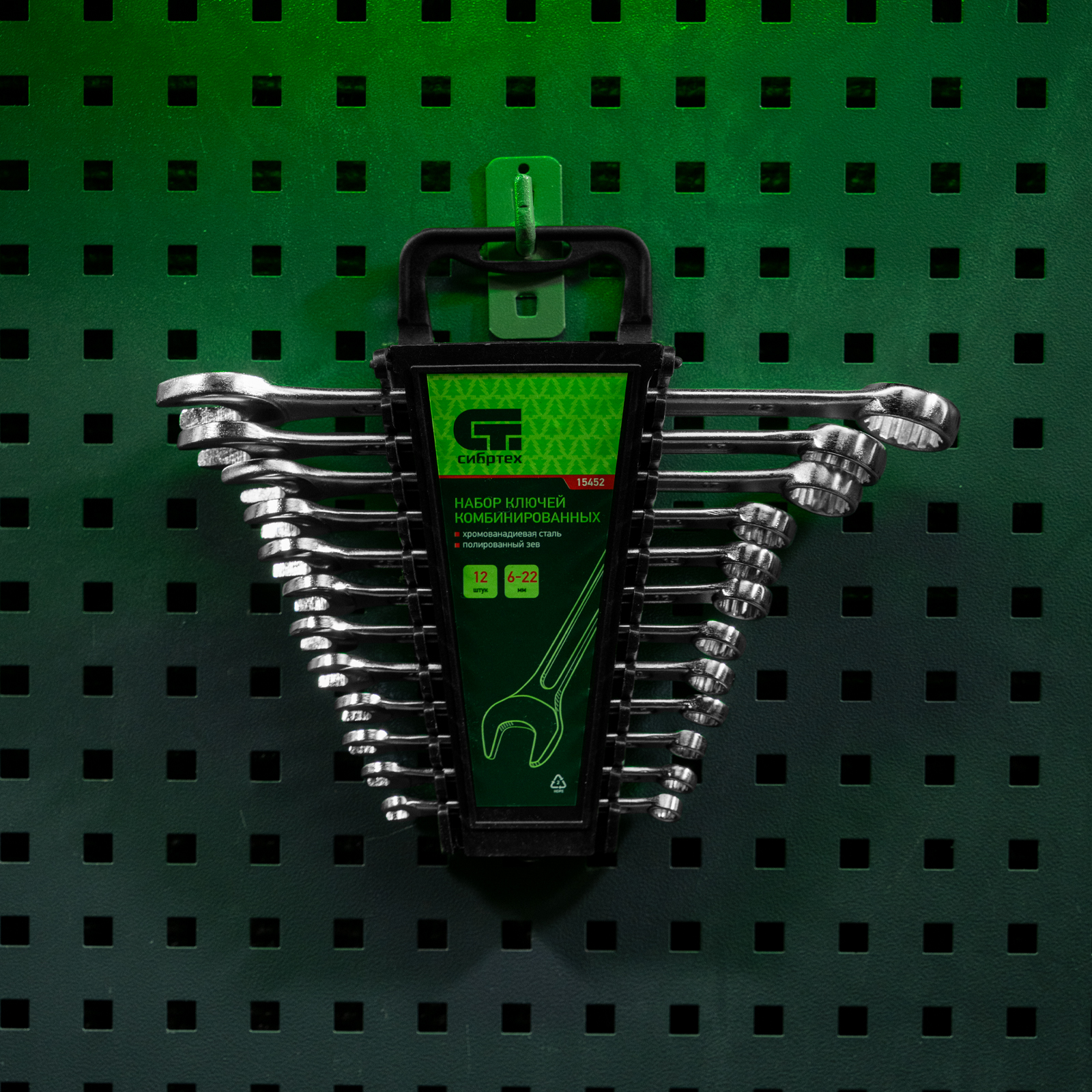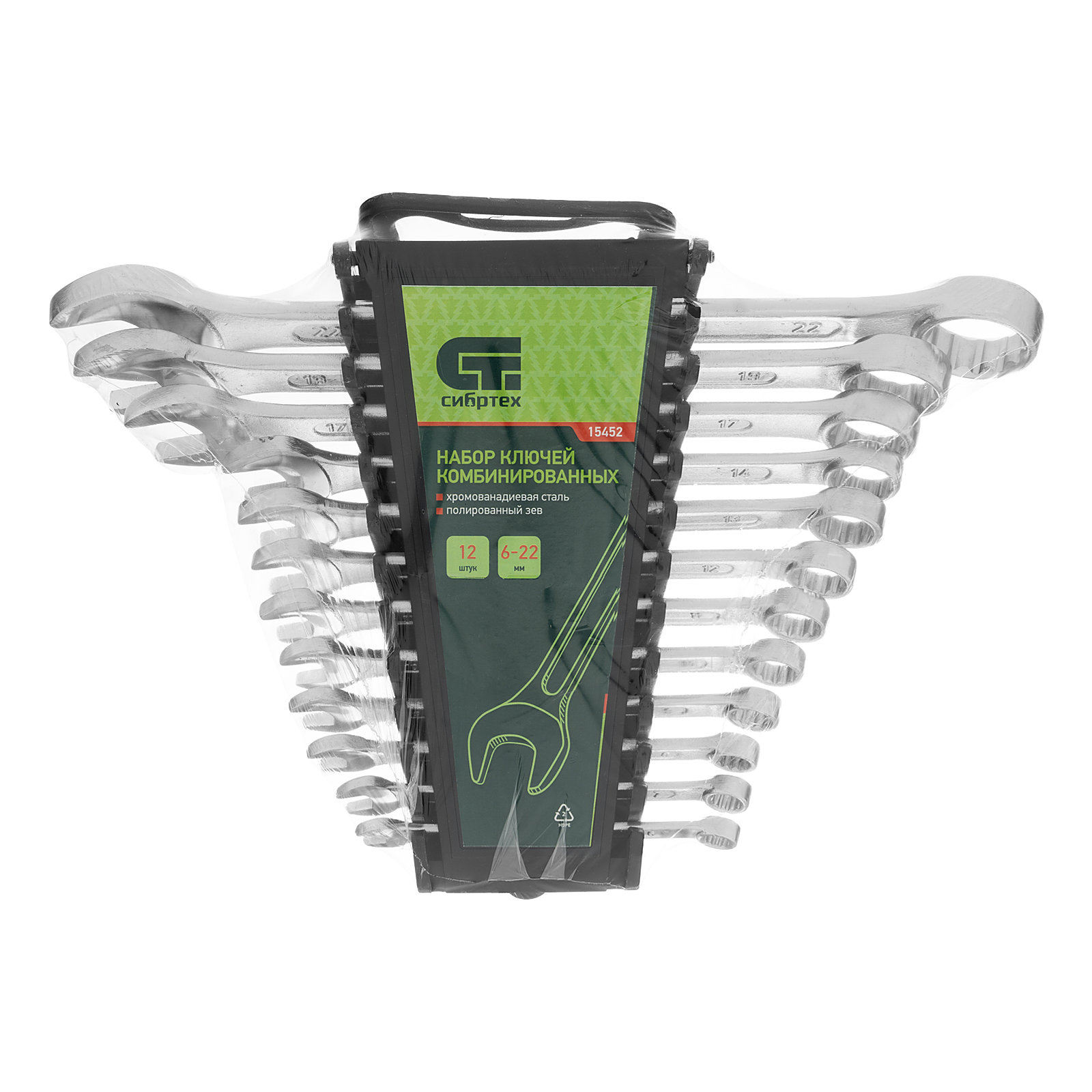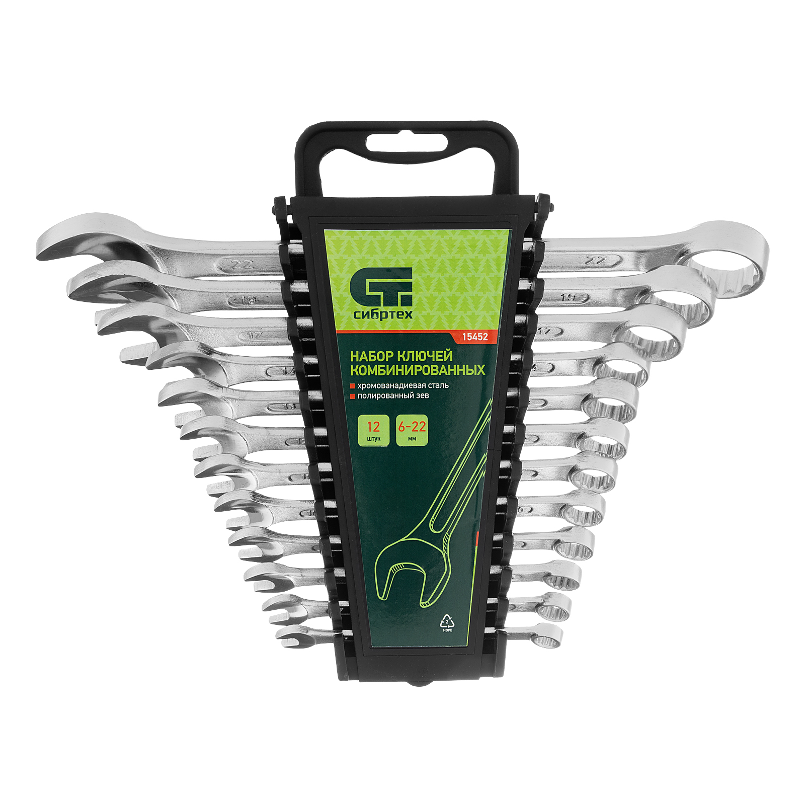 Набор комбинированных ключей Сибртех 15452 включает в себя 12 инструментов из стали CrV для работы с резьбовыми крепежами диаметром от 6 до 22 мм. Каждый ключ снабжен рожковым и 12-гранным кольцевым зевом, который максимально плотно соприкасается с поверхностью гайки или болта — это уменьшает риск ее деформации. Набор незаменим при ремонте автомобиля, а также будет полезен для сборки техники или решения бытовых задач.