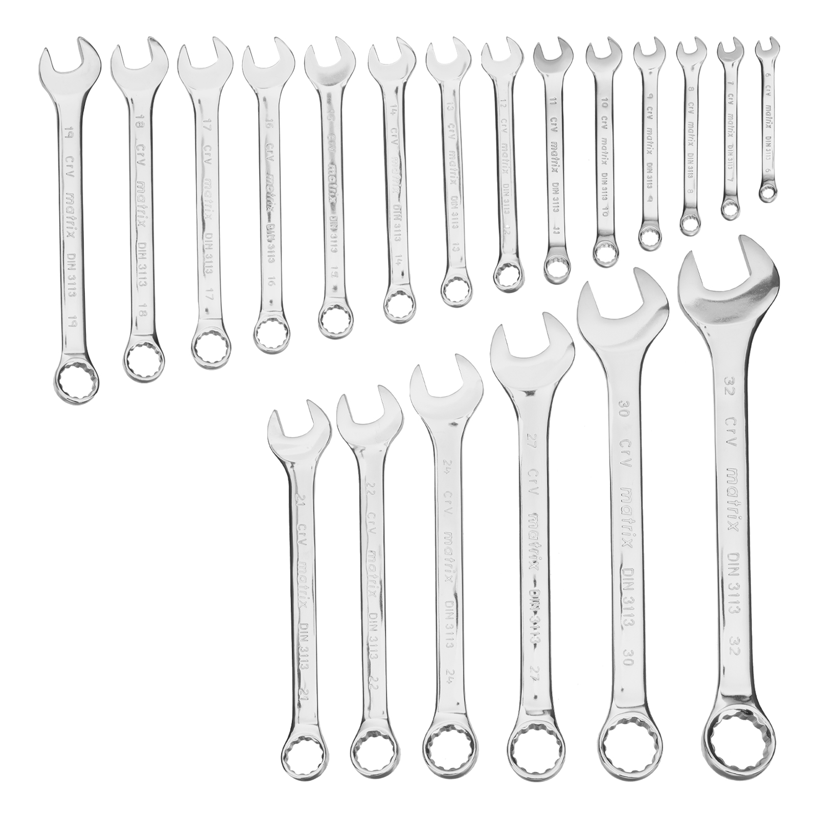 Набор Matrix 15441 включает 20 комбинированных ключей из стали CrV, размером 6-32 мм, с покрытием «полированный хром», которые пригодятся во время ремонтных работ дома или в гараже. С их помощью можно быстро монтировать и демонтировать крепежные элементы. В набор входят инструменты основных типоразмеров, позволяющие эффективно решать поставленные задачи.
