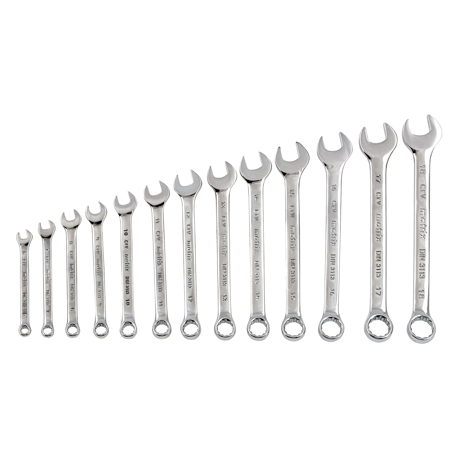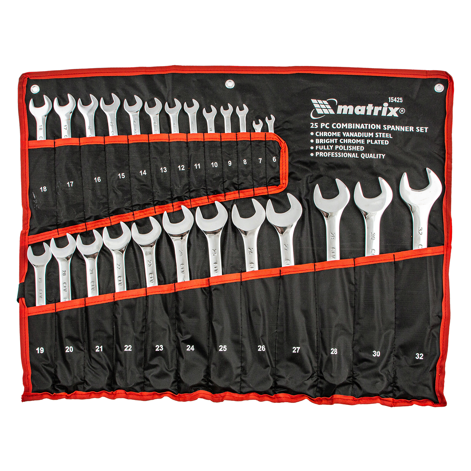 Набор Matrix 15425 включает 25 комбинированных ключей из стали CrV, размером 6-32 мм, с покрытием «полированный хром», которые пригодятся во время ремонтных работ дома или в гараже. С их помощью можно быстро монтировать и демонтировать крепежные элементы. В набор входят инструменты основных типоразмеров, позволяющие эффективно решать поставленные задачи.