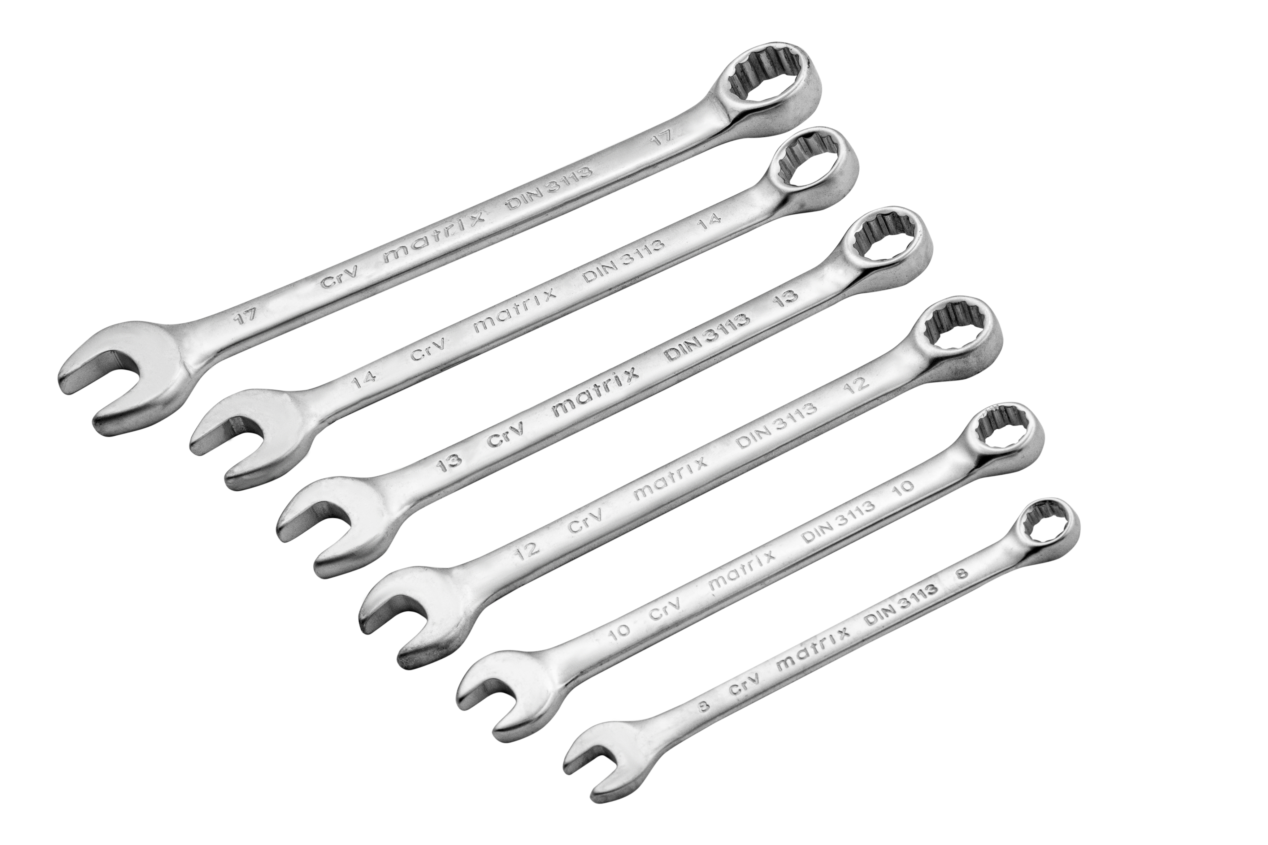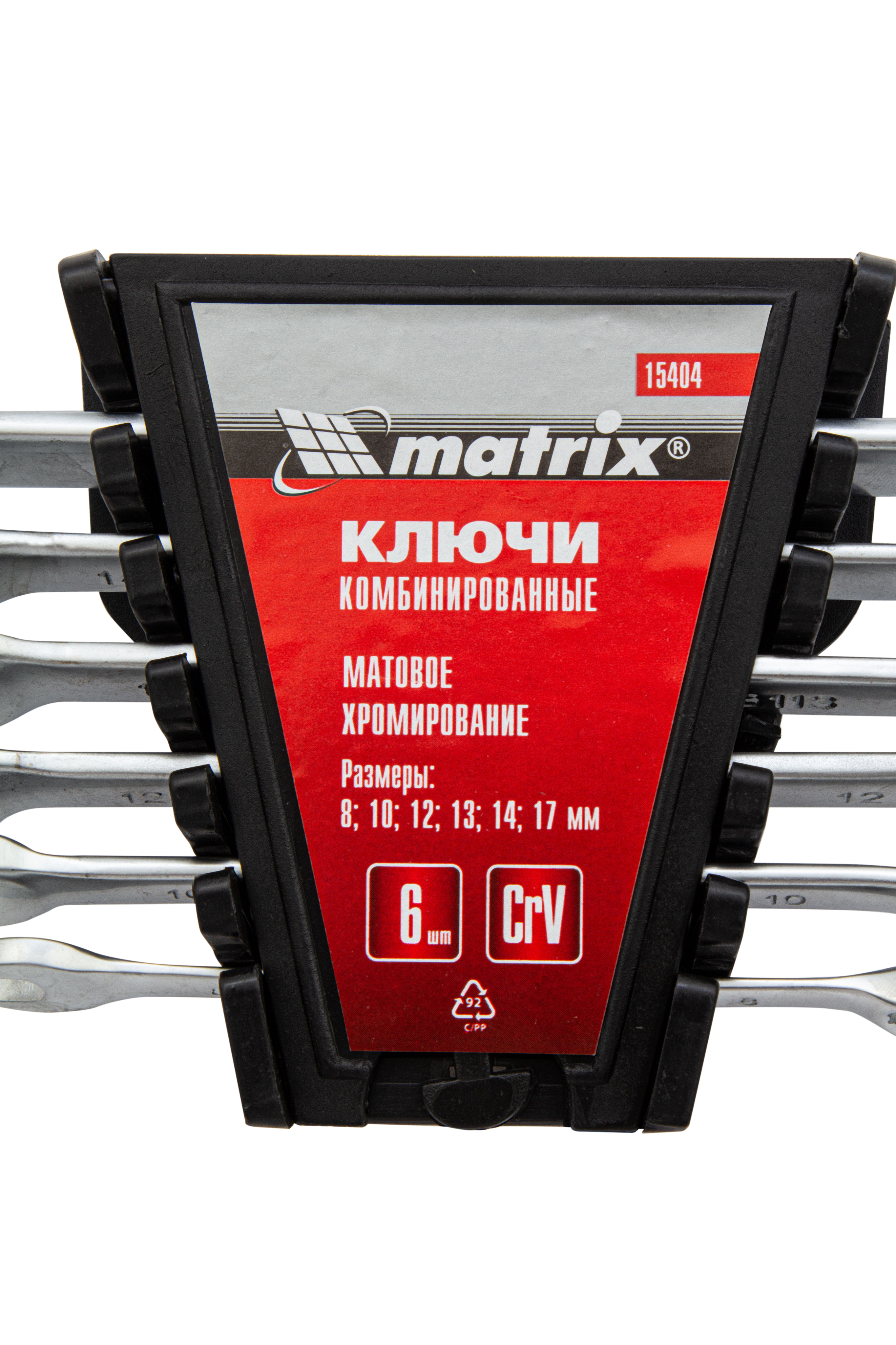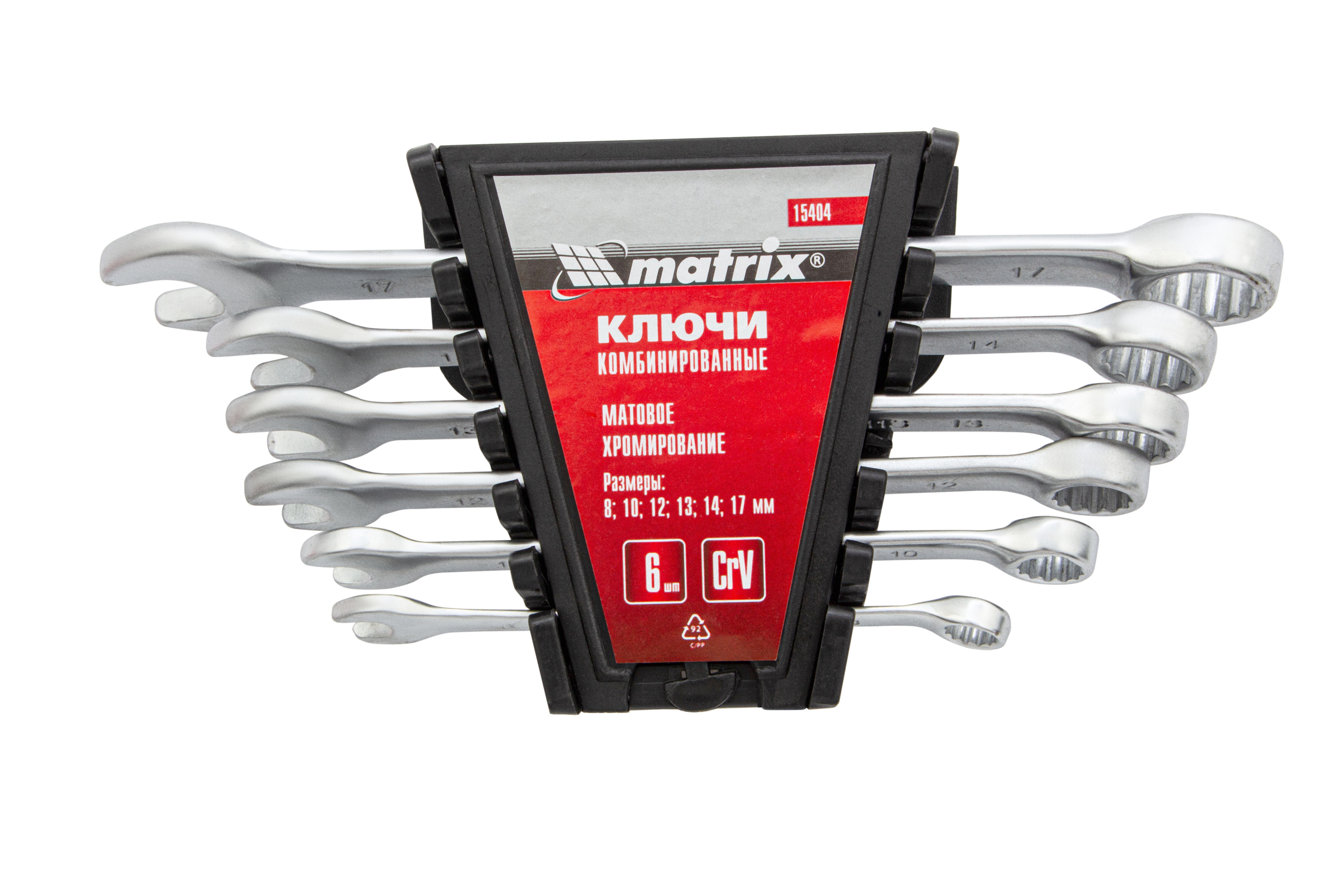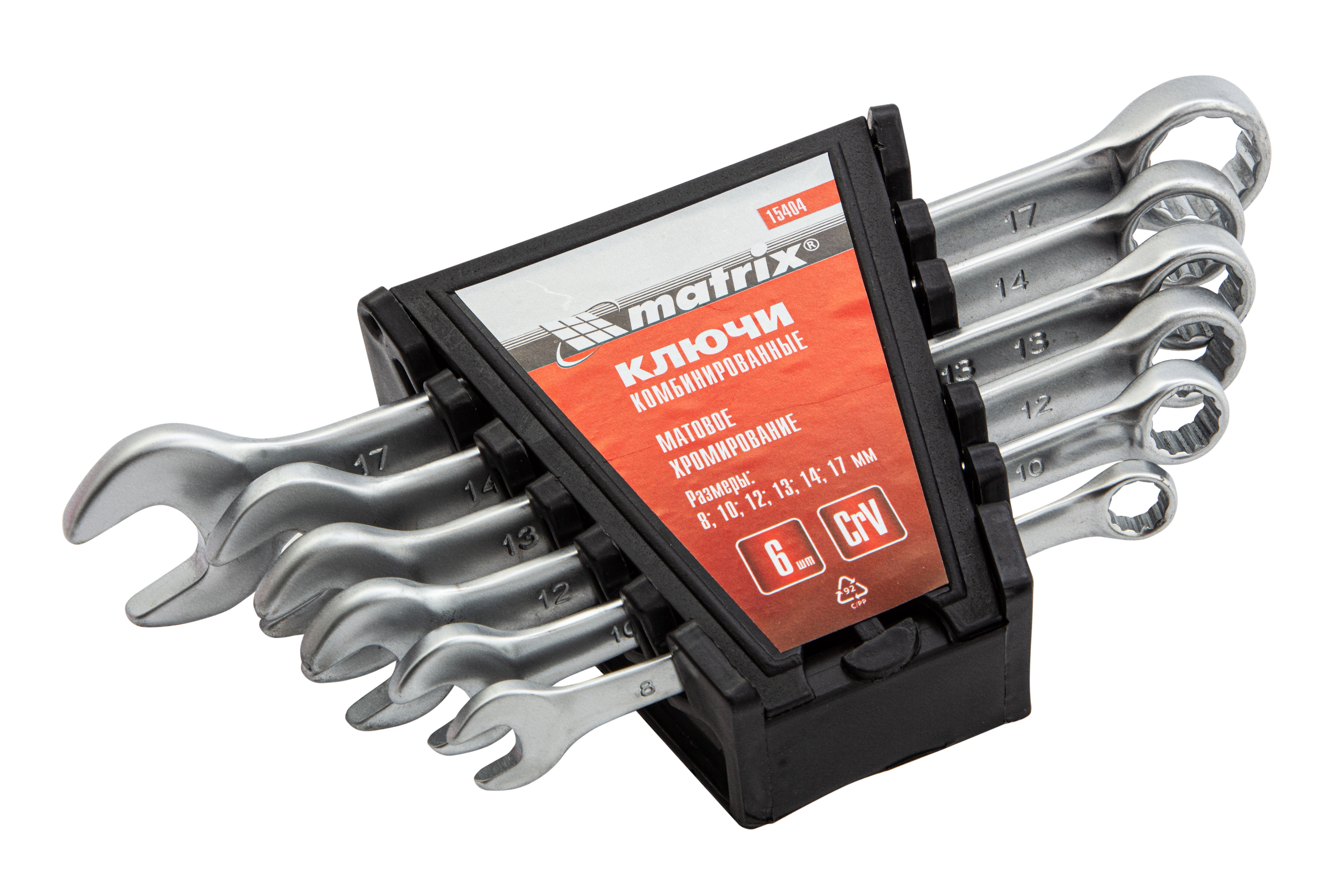Набор Matrix 15404 включает 6 комбинированных ключей из стали CrV, размером 8-17 мм, с покрытием «матовый хром», которые пригодятся во время ремонтных работ дома или в гараже. С их помощью можно быстро монтировать и демонтировать крепежные элементы. В набор входят инструменты основных типоразмеров, позволяющие эффективно решать поставленные задачи.
