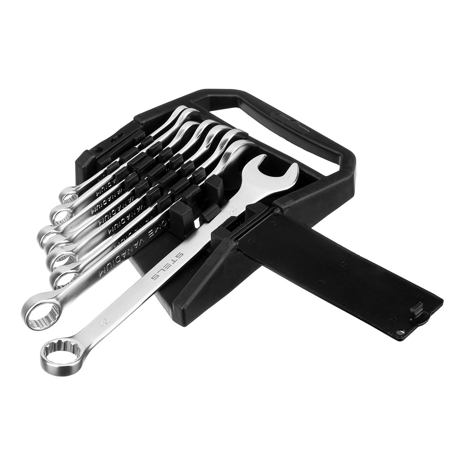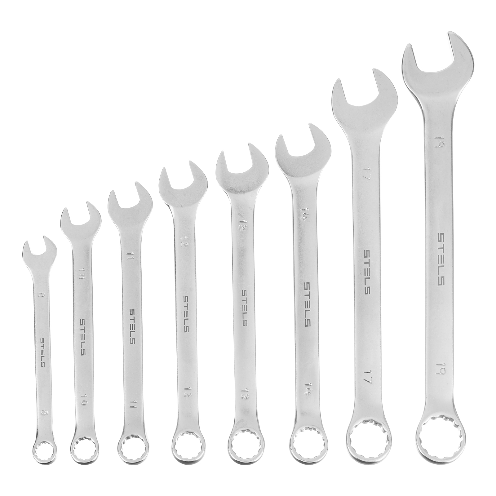 Набор Stels 15428 включает 8 комбинированных ключей из стали CrV, размером от 8 до 19 мм, покрытых матовым хромом, и используется для закручивания и откручивания гаечных и болтовых соединений. Накидная головка каждого ключа имеет 12-гранную внутреннюю поверхность, что облегчает работу с крепежом и уменьшает опасность его повреждения. Ключи применяются в слесарных мастерских и автосервисах, а также будут полезны для решения бытовых задач.