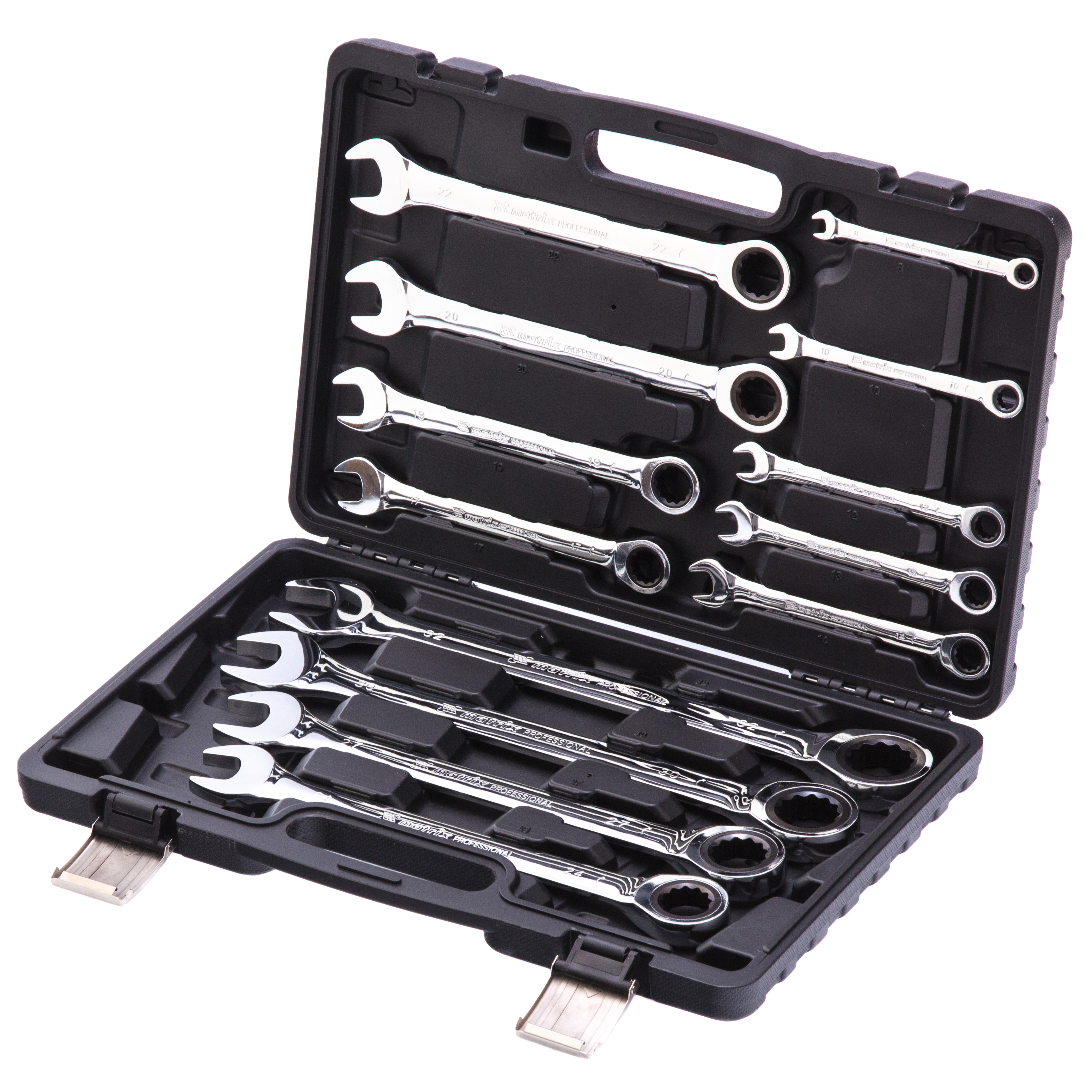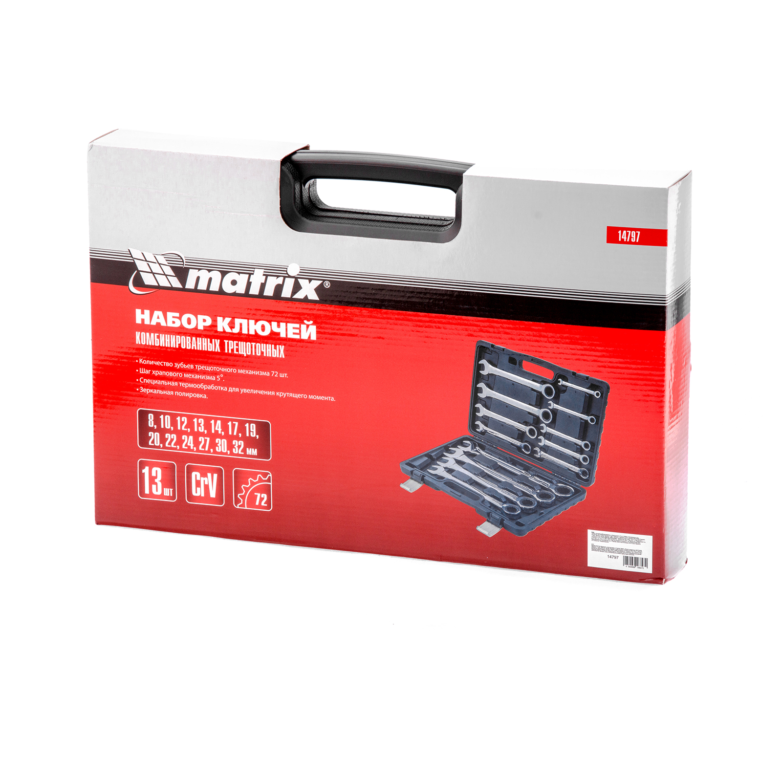 Набор из 13 комбинированных трещоточных ключей Matrix 14797 пригодится мастерам и автолюбителям для монтажа/демонтажа болтов и гаек наиболее популярных типоразмеров. Храповой механизм с 72 зубьями облегчает закручивание или откручивание крепежей, в том числе в труднодоступных местах.