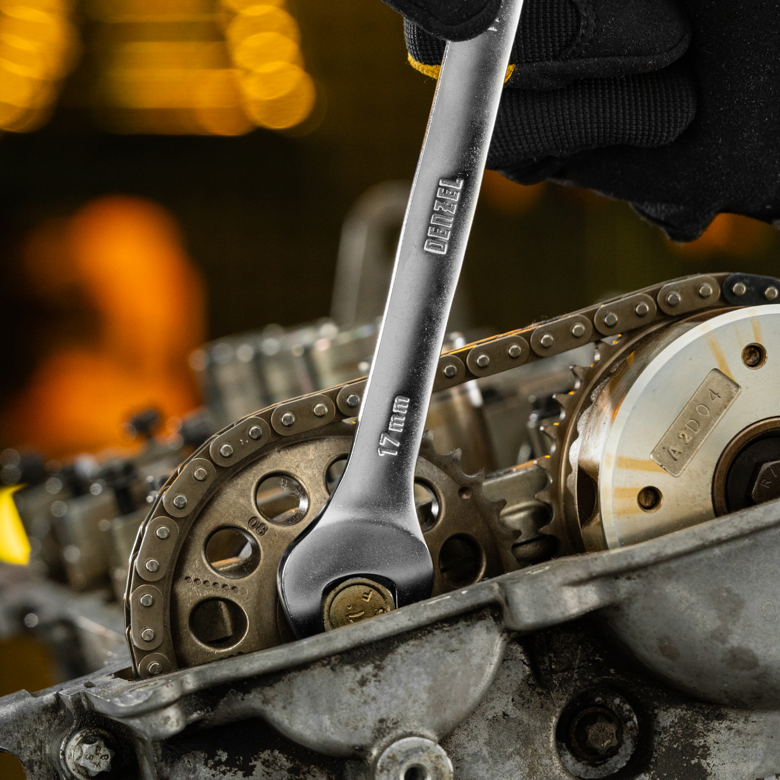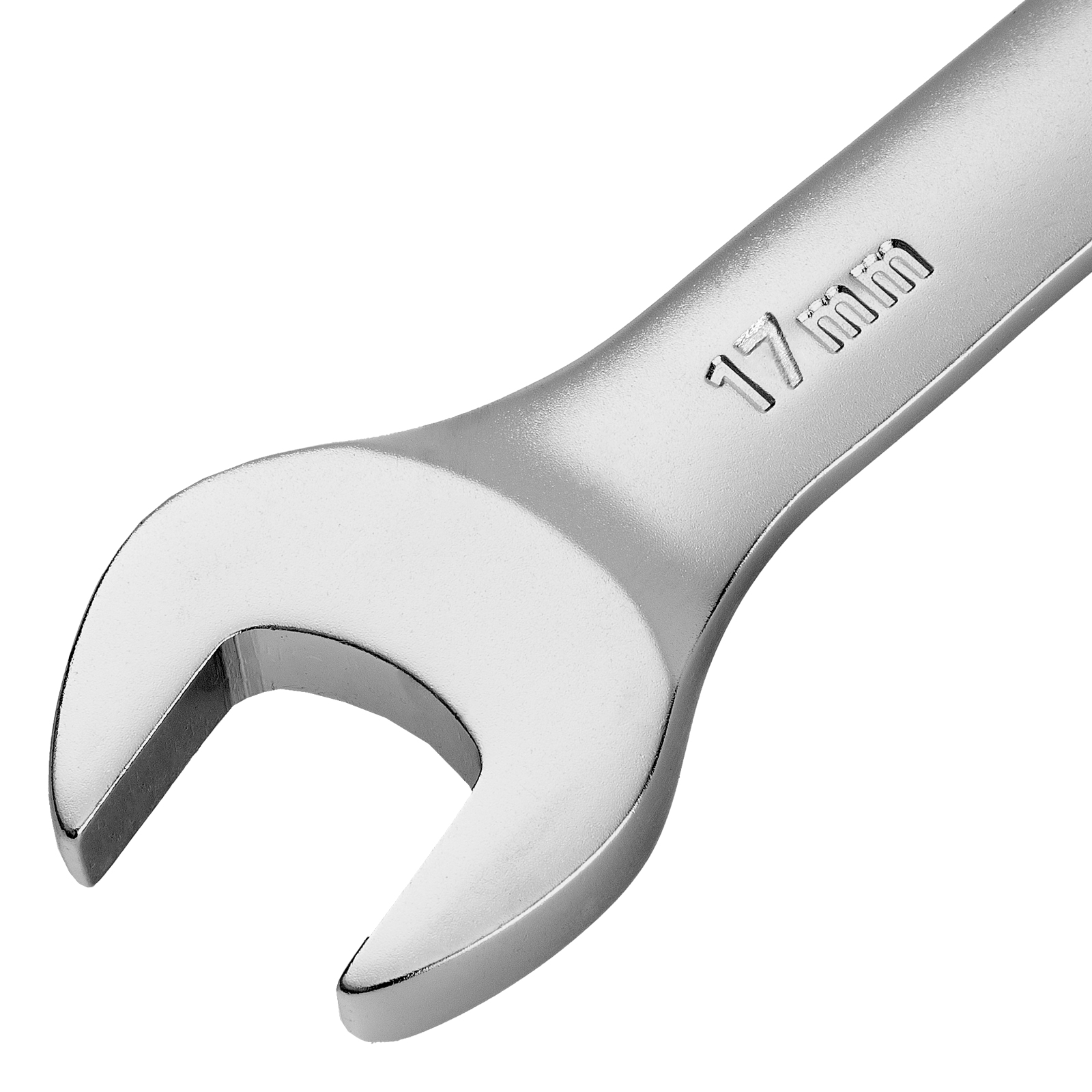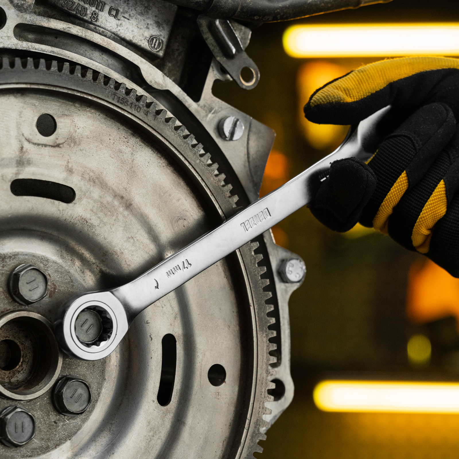 - Аккуратная работа — 12-гранная накидная часть увеличивает площадь соприкосновения с головкой крепежа и снижает риск ее деформации.