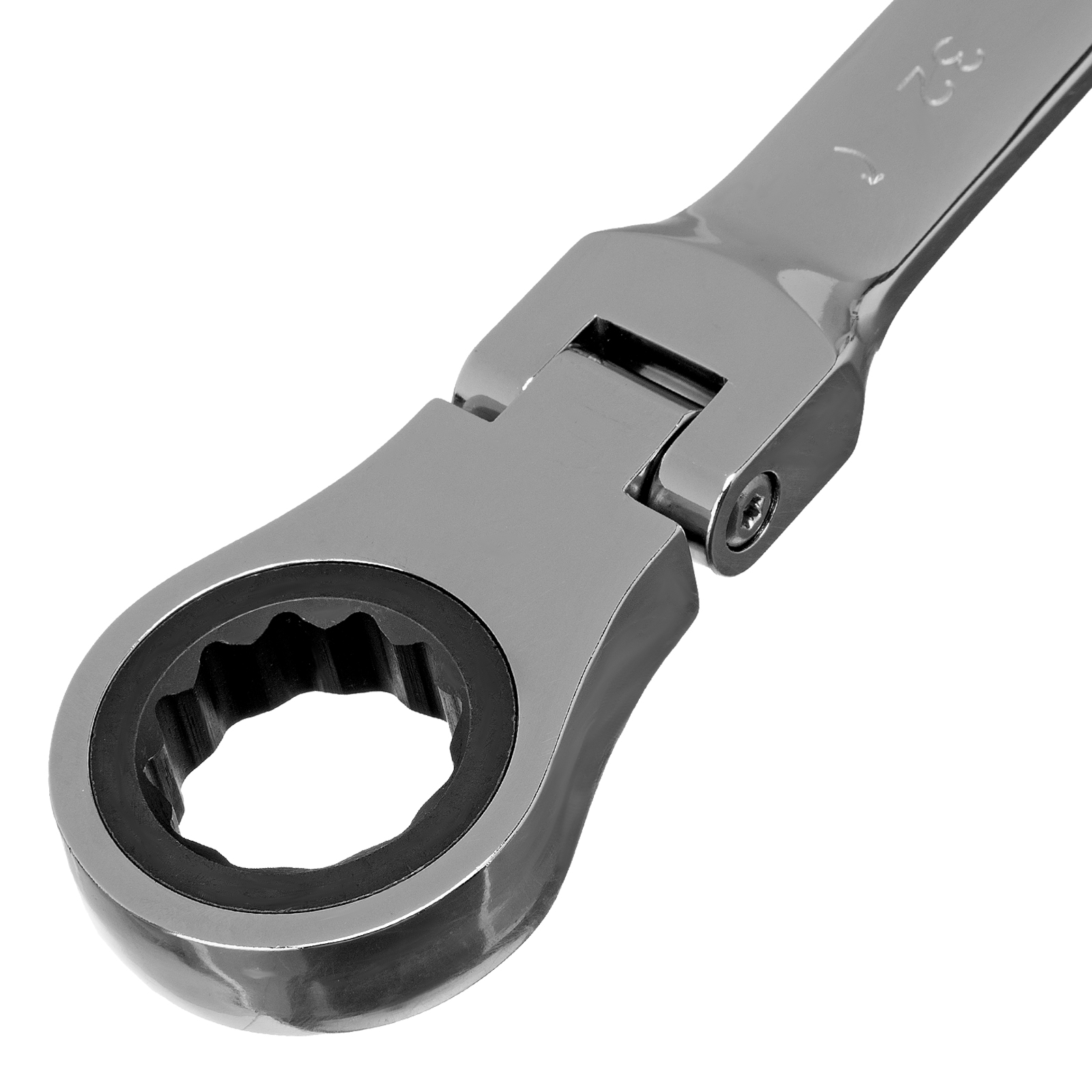 - Удобная работа в труднодоступных местах — храповой механизм на 72 зуба обеспечивает плавное вращение (шаг трещотки составляет 5°), а шарнир позволяет поворачивать рабочую часть под углом.