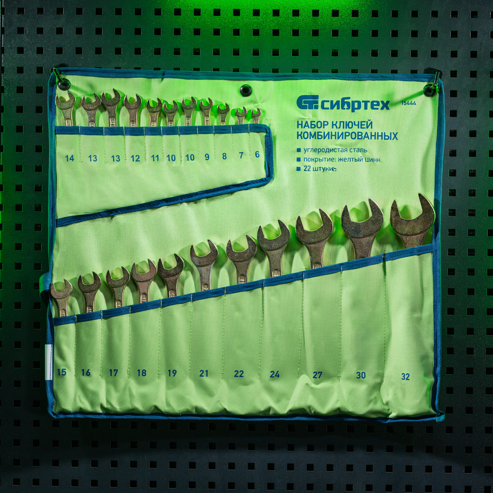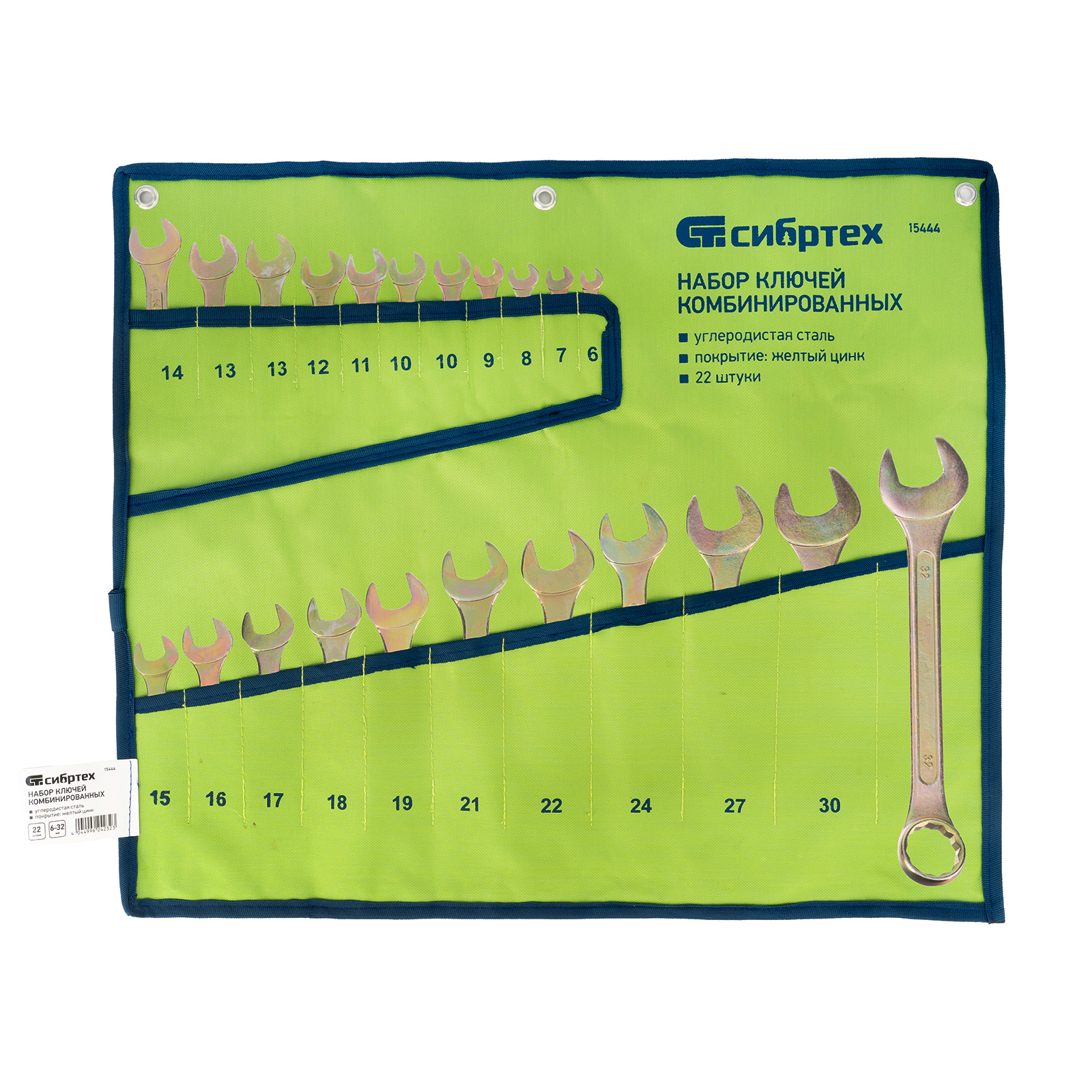 Набор комбинированных ключей Сибртех 15444 размером 6-32 мм, с покрытием «желтый цинк», включает в себя 22 инструмента для монтажа и демонтажа шестигранного резьбового крепежа соответствующего размера. Наличие рожкового и кольцевого зева делает каждый ключ универсальным в применении. Накидные головки с 12-гранным профилем надежно удерживают крепеж, уменьшая риск его деформации. Набор будет полезен в сервисном центре, авторемонтной мастерской, для выполнения монтажных работ. Пригодится также дома и на даче.