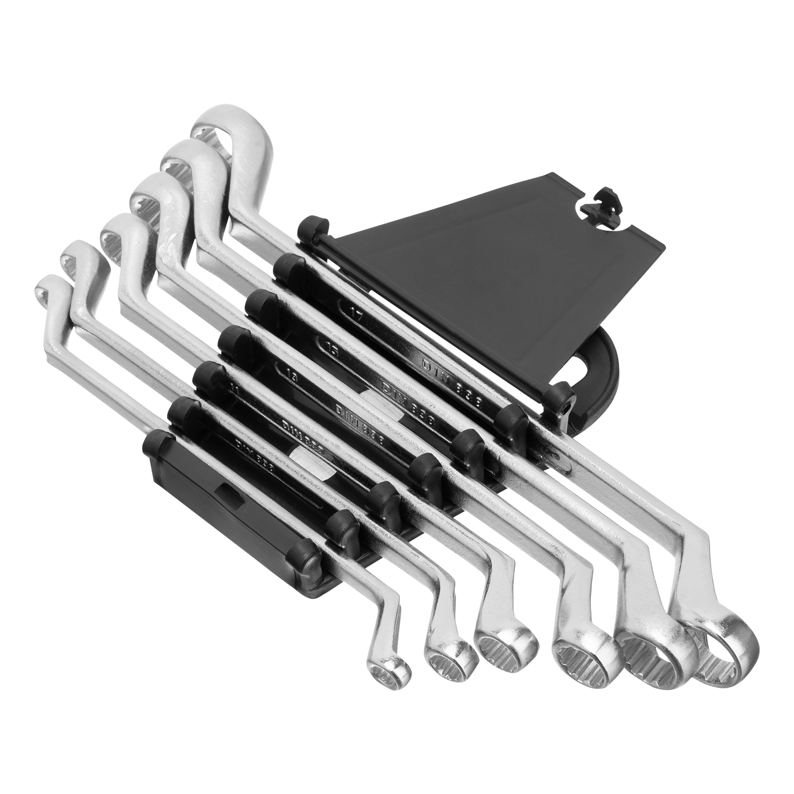 Набор из 6 накидных ключей Matrix 15331 из стали CR-V, с покрытием из полированного хрома, предназначен для монтажа и демонтажа крепежных элементов размером 6-17 мм. Накидные рабочие части с круглым профилем полностью охватывают головку крепежа и легко справляются даже с закисшими болтами и гайками. Благодаря изогнутой форме ключи удобны для работы в труднодоступных местах. Инструменты подходят для эксплуатации в бытовых условиях, автосервисе и частной мастерской.
