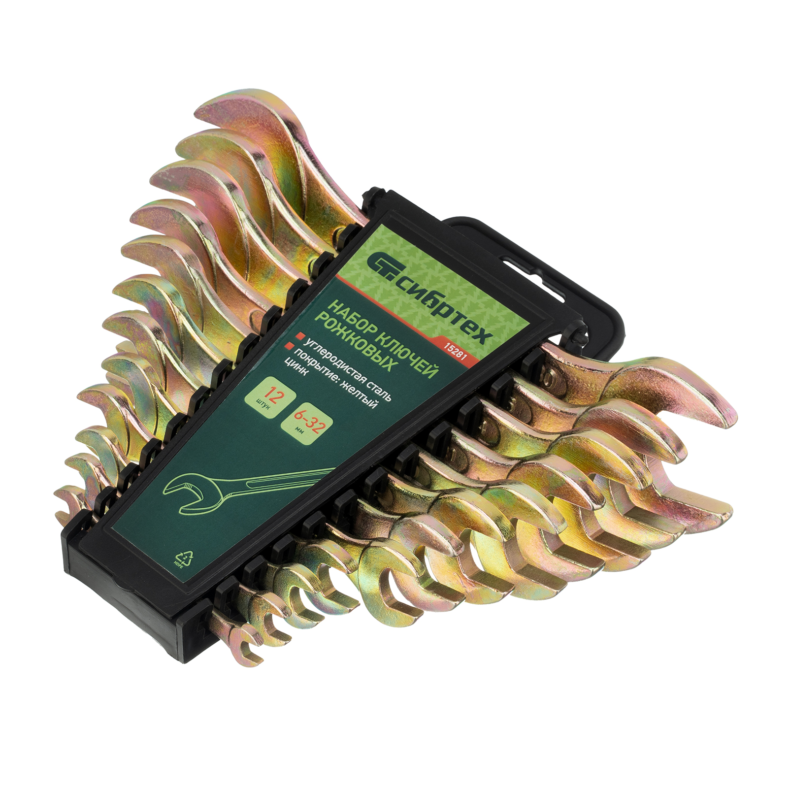 Набор рожковых ключей Сибртех 15281 размером 6-32 мм, с покрытием «желтый цинк», 12 штук в упаковке, используется для монтажа и демонтажа шестигранного резьбового крепежа соответствующего диаметра. Каждый ключ имеет две рабочие части с разным размером зева. Набор будет полезен в сервисном центре, авторемонтной мастерской, при выполнении монтажных работ. Пригодится также дома и на даче.