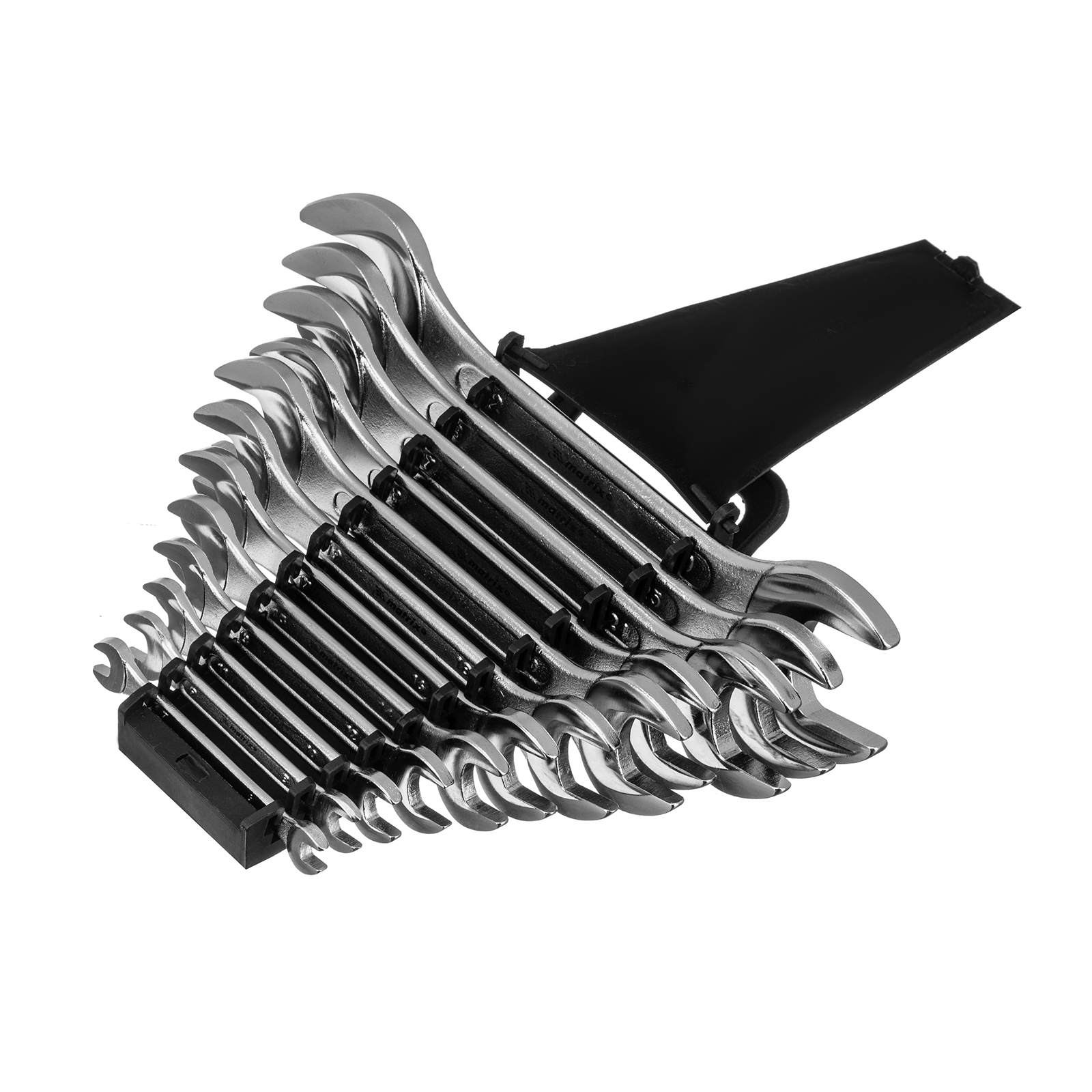 Набор ключей рожковых Matrix 15278 включает в себя 12 хромированных двусторонних ключей с величиной зева от 6 до 32 мм, выполненных из стали CrV. Инструменты используются для монтажа и демонтажа гаечных, болтовых и других резьбовых соединений с шестигранным профилем. Набор удобен для работы в ограниченном пространстве благодаря небольшому наклону губок относительно рукоятки. Ключи пригодятся в слесарной или авторемонтной мастерской, сервисном центре, а также дома, в гараже или на даче.