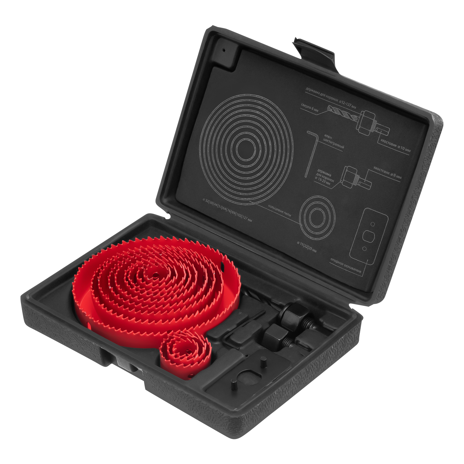 - Удобное хранение и транспортировка — набор поставляется в пластиковом кейсе с ложементами для отдельных предметов.