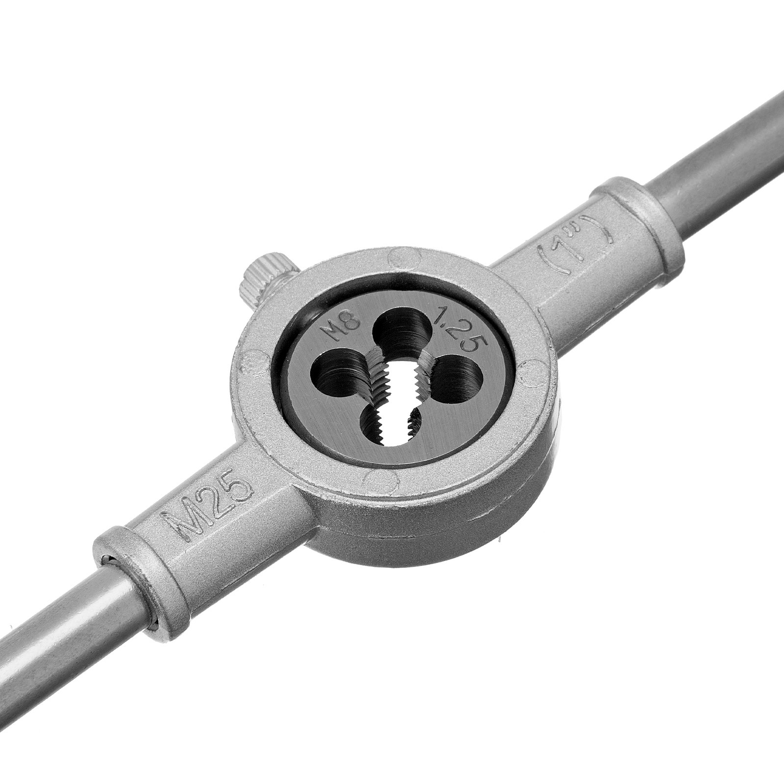 - Комфортная и эффективная работа — плашку удерживают в держателе боковые винты, метчик крепко фиксируется в воротке посредством регулируемого винтового механизма.