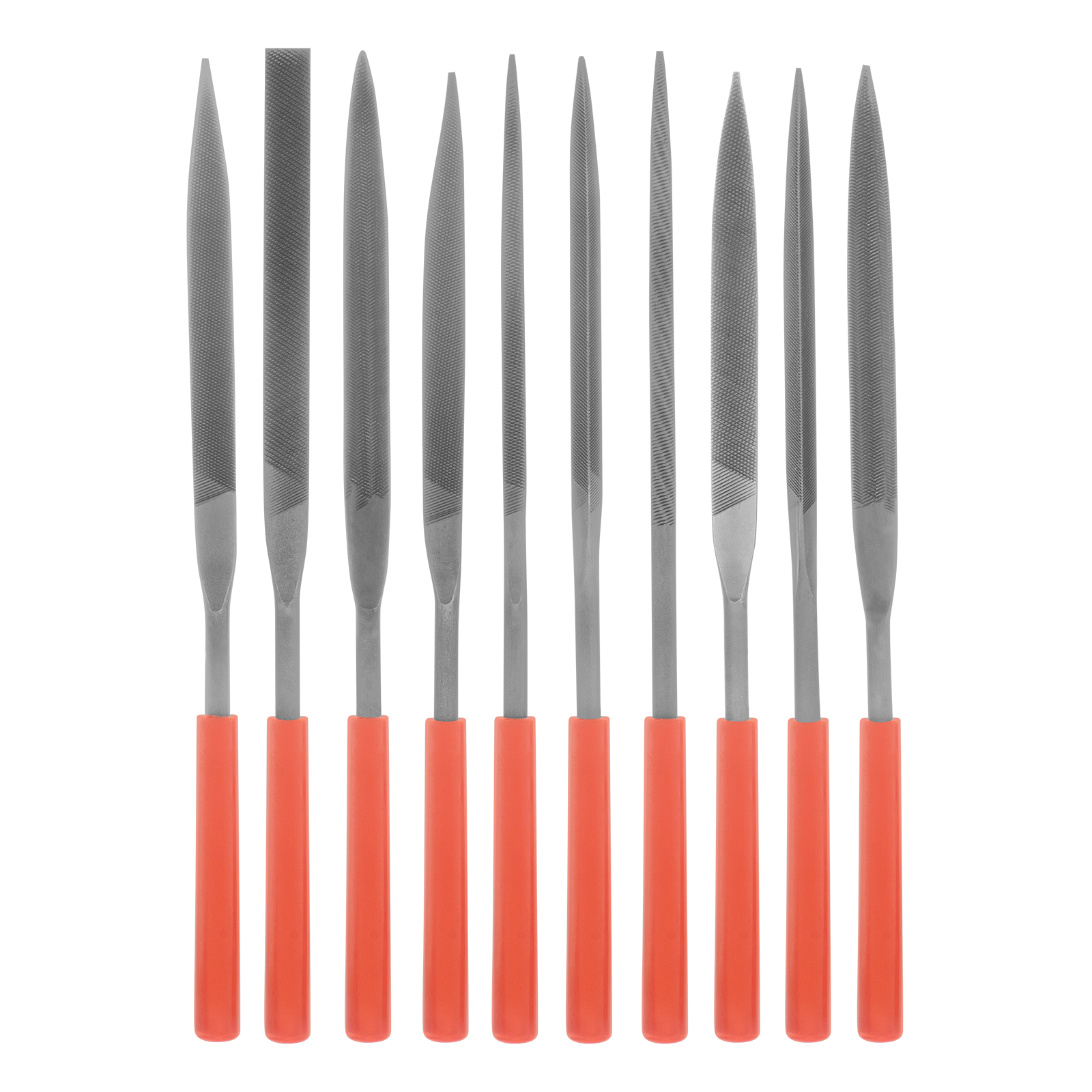 Набор надфилей Matrix 15824 размером 180 х 5 мм, с пластиковыми рукоятками, состоит из 10 инструментов для опиловки и зачистки мелких деталей. Входящие в комплект надфили имеют разные профили, благодаря чему подходят для обработки изделий сложной формы. Набор будет полезен при проведении слесарных и столярных работ, пригодится также дома или в гараже.