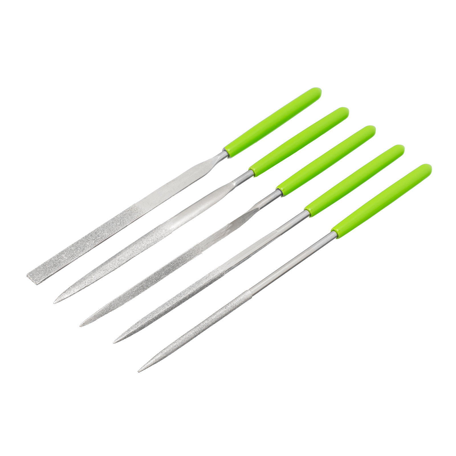 Набор алмазных надфилей Сибртех 158307 из 5 шт. размером 140 х 50 х 3 мм предназначен для опиливания твердых поверхностей — стекла, металла, камня, керамики. В комплект поставки входят надфили с самыми распространенными профилями, благодаря чему можно обрабатывать плоские детали, пазы, углы, отверстия и рельефные поверхности. Набор будет полезен для проведения слесарных или ремонтно-отделочных работ, также пригодится в быту.