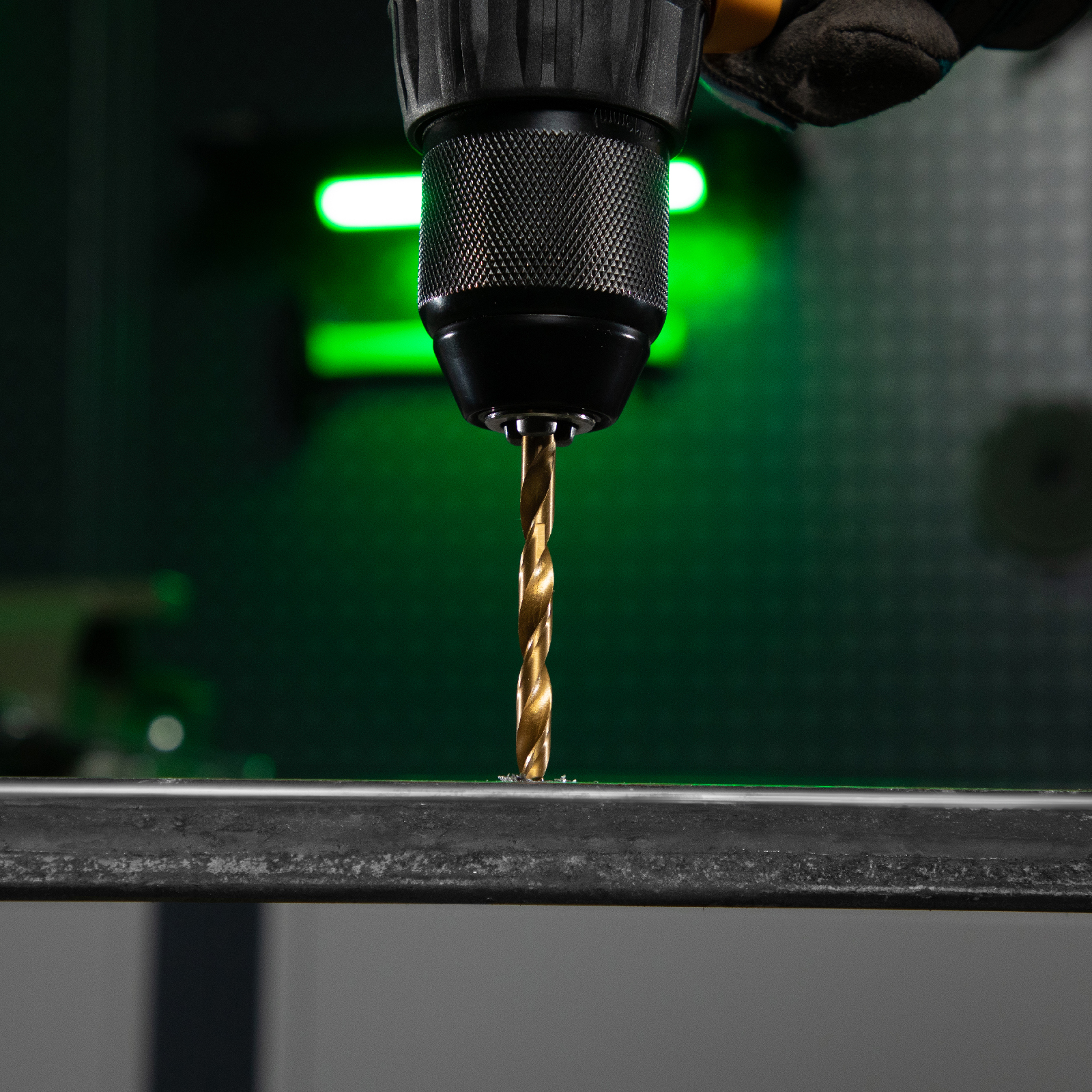 Долговечность — твердость режущих кромок составляет 62-65 HRC, нитридтитановое покрытие повышает стойкость сверл к перегреву и защищает от коррозии.