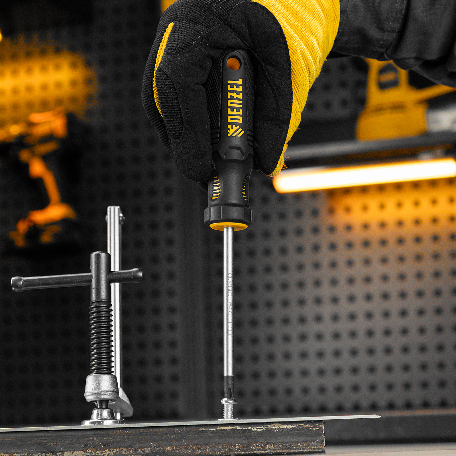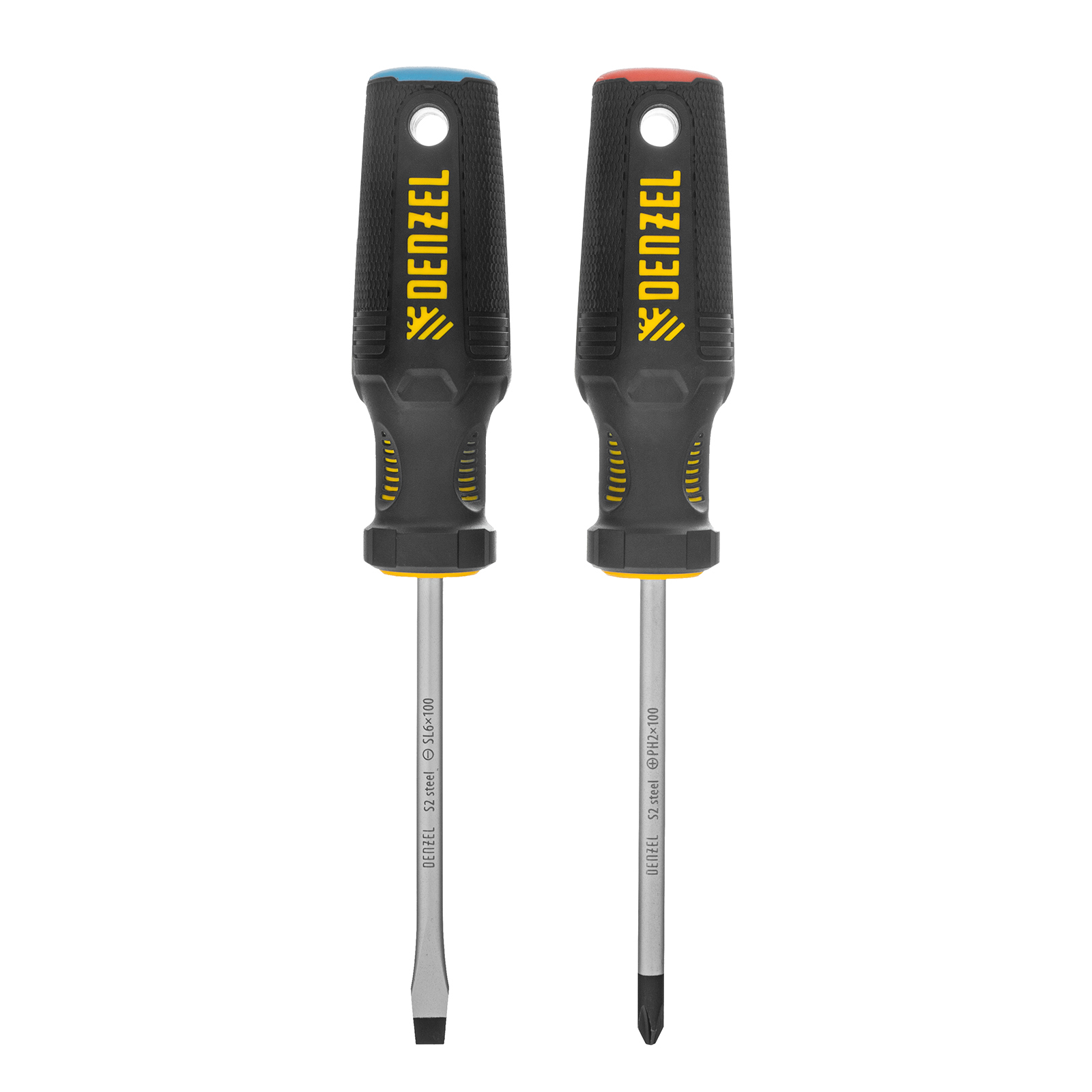 Комбинированный набор Denzel 122117 состоит из 2 отверток типоразмеров PH2 и SL6 длиной 100 мм, изготовленных из стали S2, с трехкомпонентными рукоятками. Намагниченные высокоточные шлицы позволяют направлять отвертку с крепежом одной рукой, а другой придерживать закрепляемую деталь. Набор предназначен для выполнения профессиональных монтажных и демонтажных работ с резьбовыми соединениями.