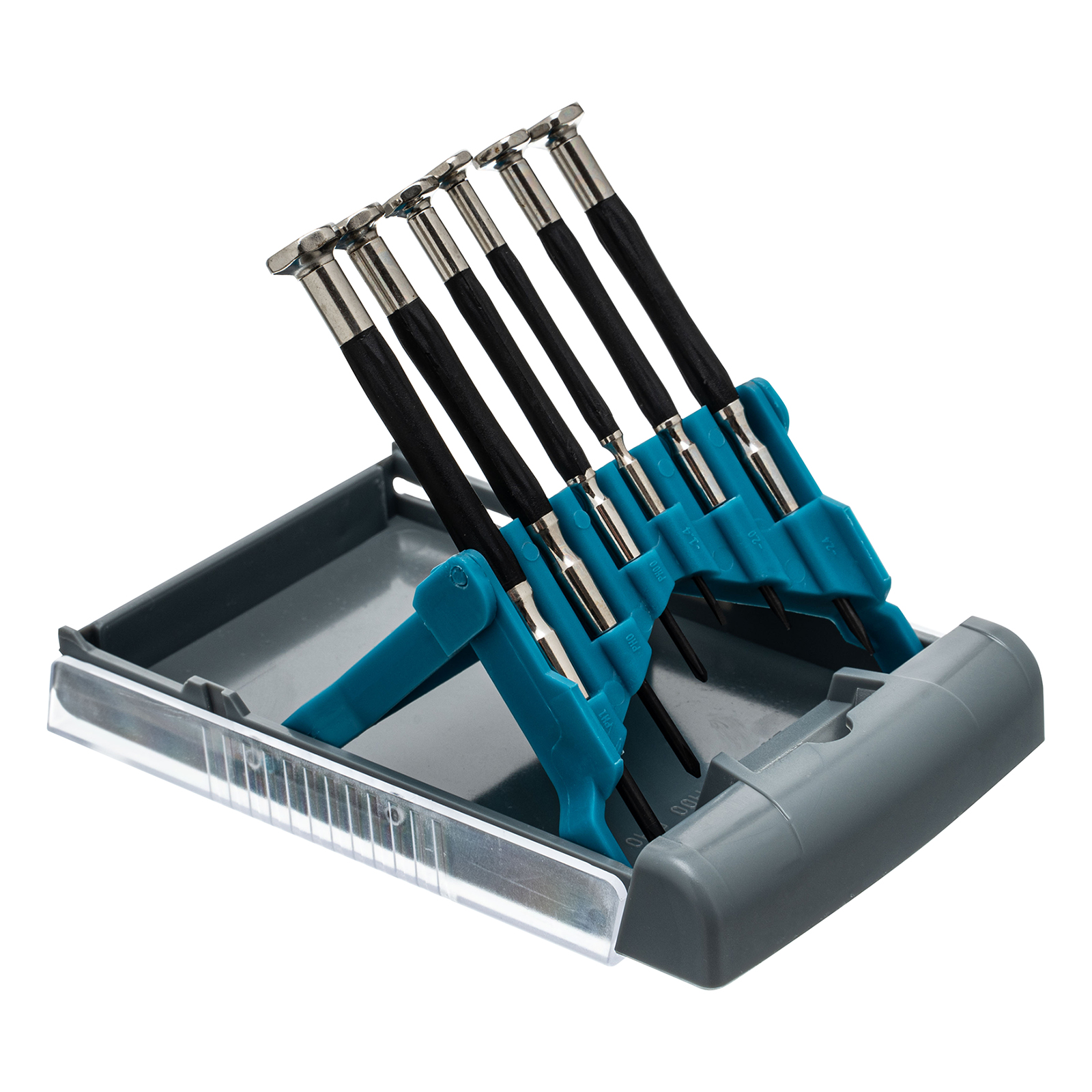 Набор отверток для точной механики Gross 13346, CrMo, с металлическими обрезиненными рукоятками, 6 предметов в боксе-трансформере, пригодится при монтаже/демонтаже микровинтов SL и PH. Высококачественное исполнение деталей набора позволяет использовать его для решения профессиональных задач в ходе ремонта электроники, очков и других мелких механизмов.