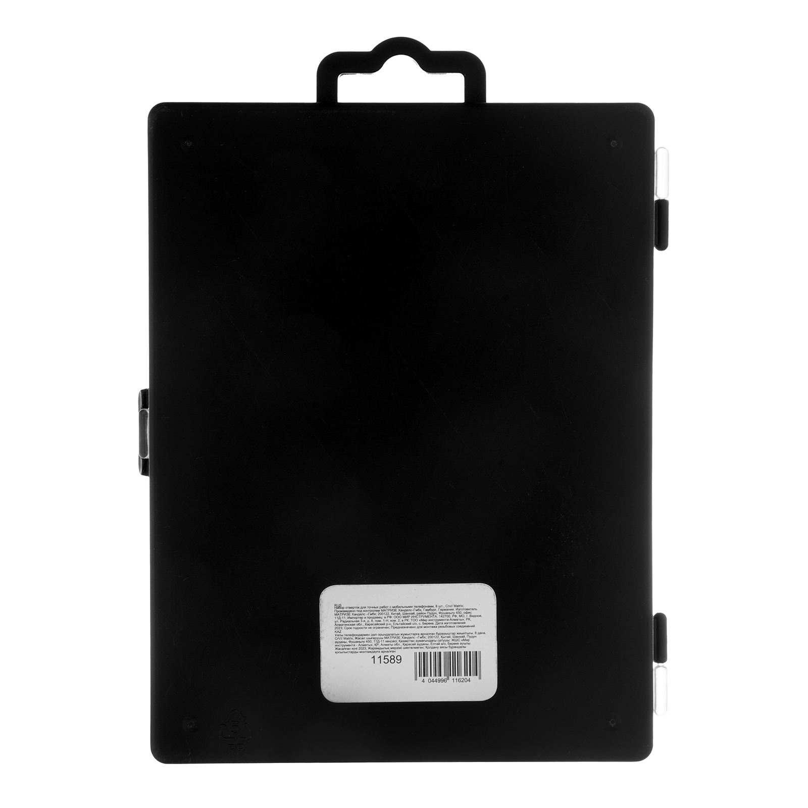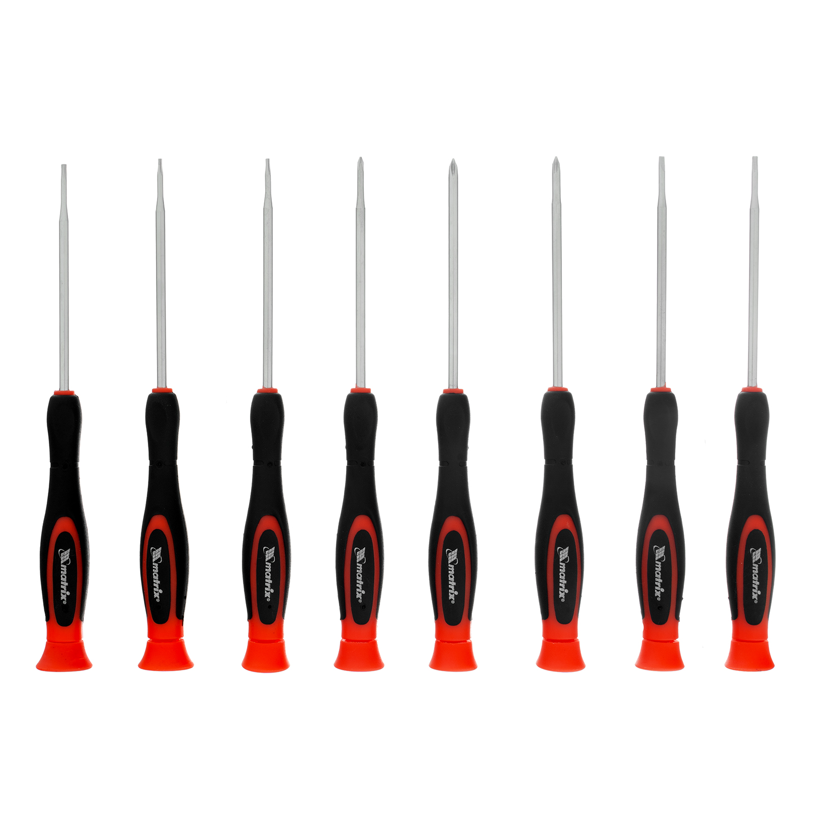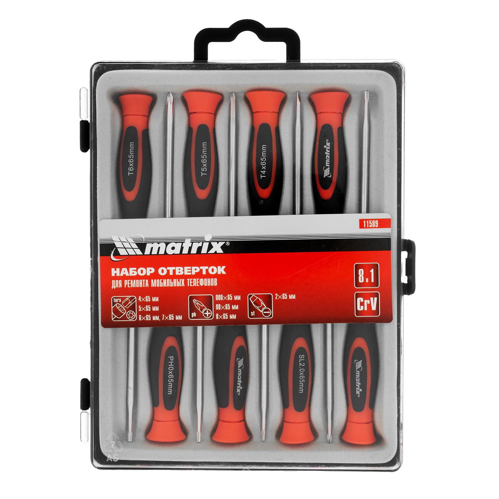 Набор отверток Matrix 11589 включает в себя 8 специализированных инструментов из стали CrV, предназначенных для точных работ с мобильными телефонами. Состоит из отверток под шлицы PH, SL и Torx. У каждой отвертки с тыльной стороны имеется вращающийся затыльник с площадкой под палец, упрощающий вращение инструмента. Набор пригодится мастерам по ремонту портативной электроники.
