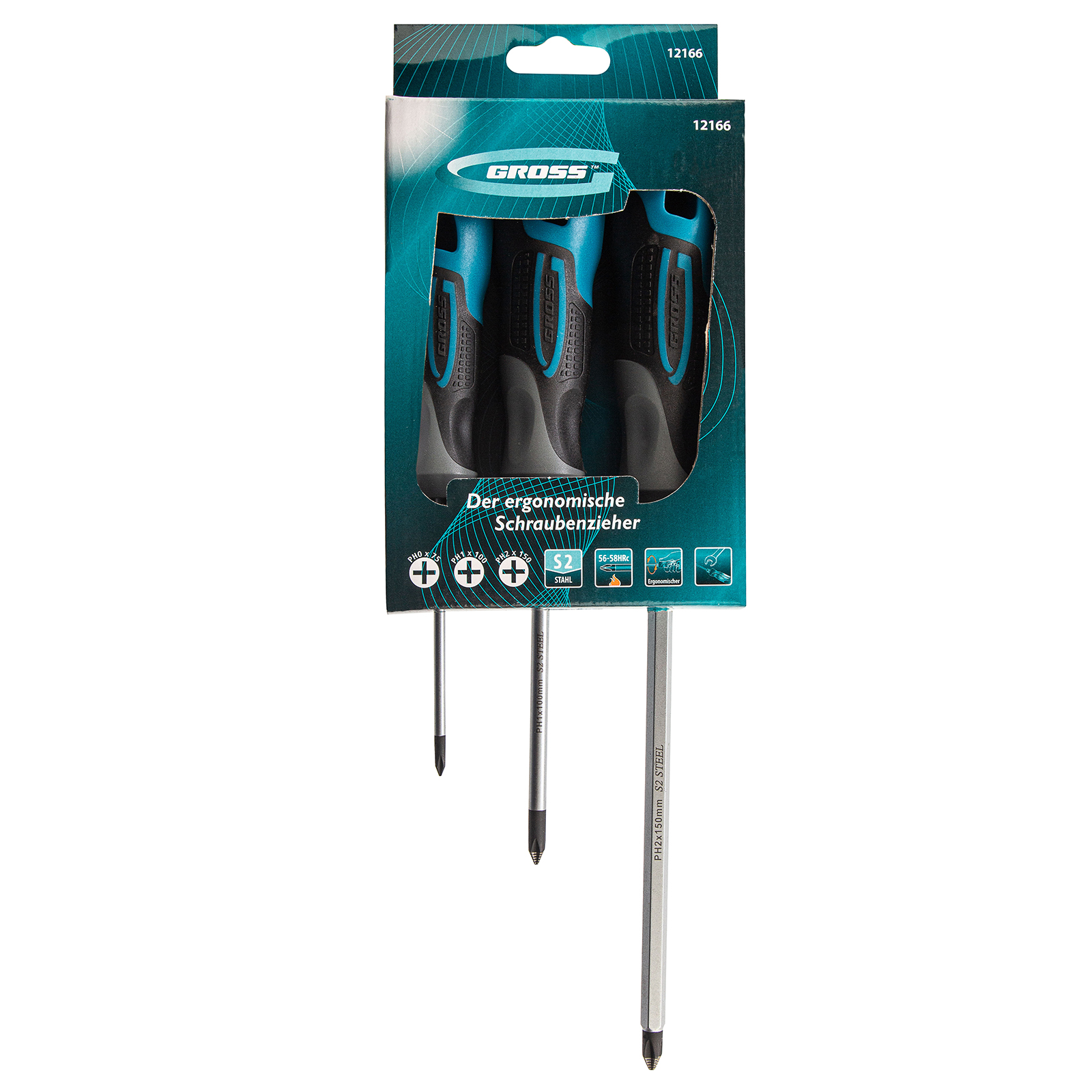 Набор из 3 отверток Gross 12166 из стали S2, с трехкомпонентными рукоятками и крестовым шлицем, подходит для монтажа и демонтажа крепежных элементов типа Philips (PH0, PH1 и PH2). Пригодится при проведении профессиональных ремонтных, строительных и монтажных работ. Универсальный набор включает 3 отвертки со стержнями 75-150 мм, поэтому с его помощью можно работать с крепежом на поверхности и в углублениях.