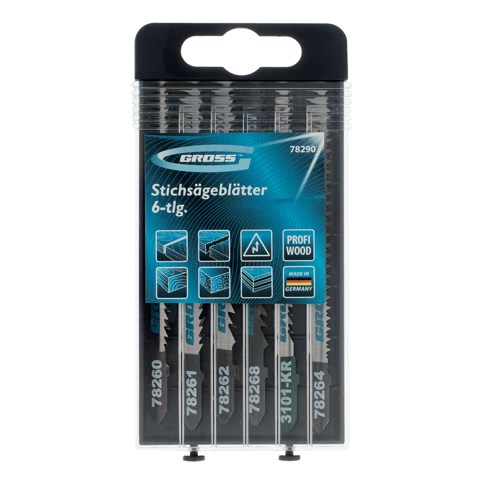 Набор полотен для электролобзика Gross Profi 78290, 6 шт., в пластиковом кейсе, — это универсальное решение для работы с деревянными изделиями и заготовками. Позволяет осуществить чистый и быстрый прямолинейный рез. Благодаря высокому качеству полотна выдерживают интенсивные нагрузки и подходят для профессионального применения.