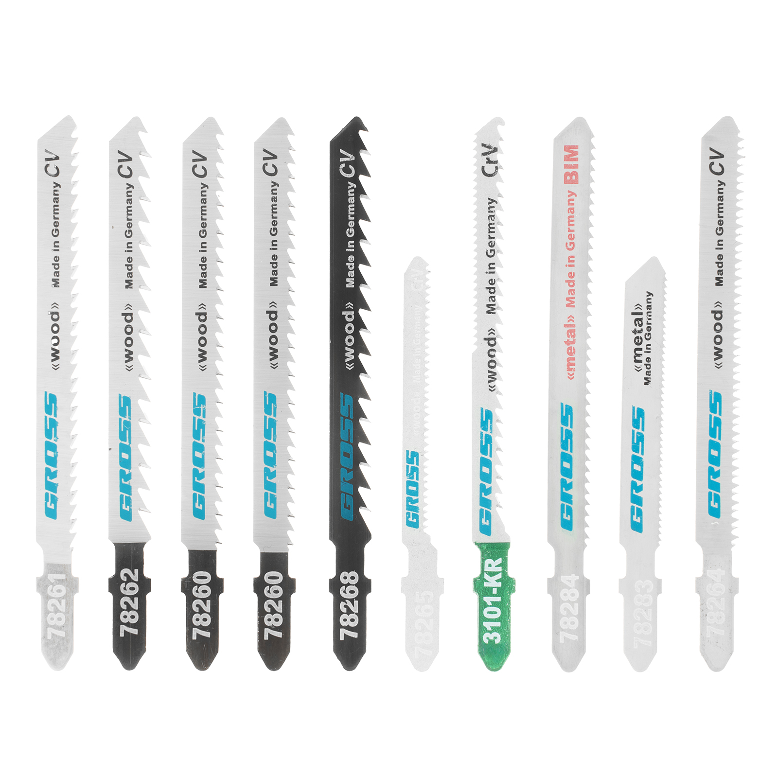 - Высокая твердость и износостойкость — все полотна в наборе выполнены из немецкой хромованадиевой стали.