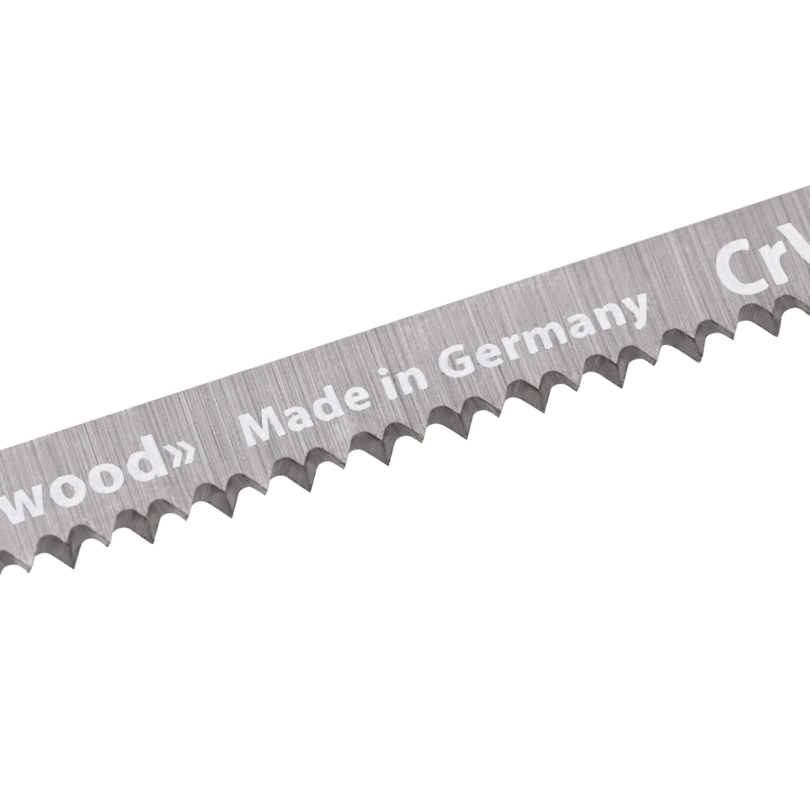 - Максимально чистый рез — полотна изготовлены в Германии на высокотехнологичном производстве, подверглись лазерной раскройке профиля, автоматизированной заточке и шлифовке.