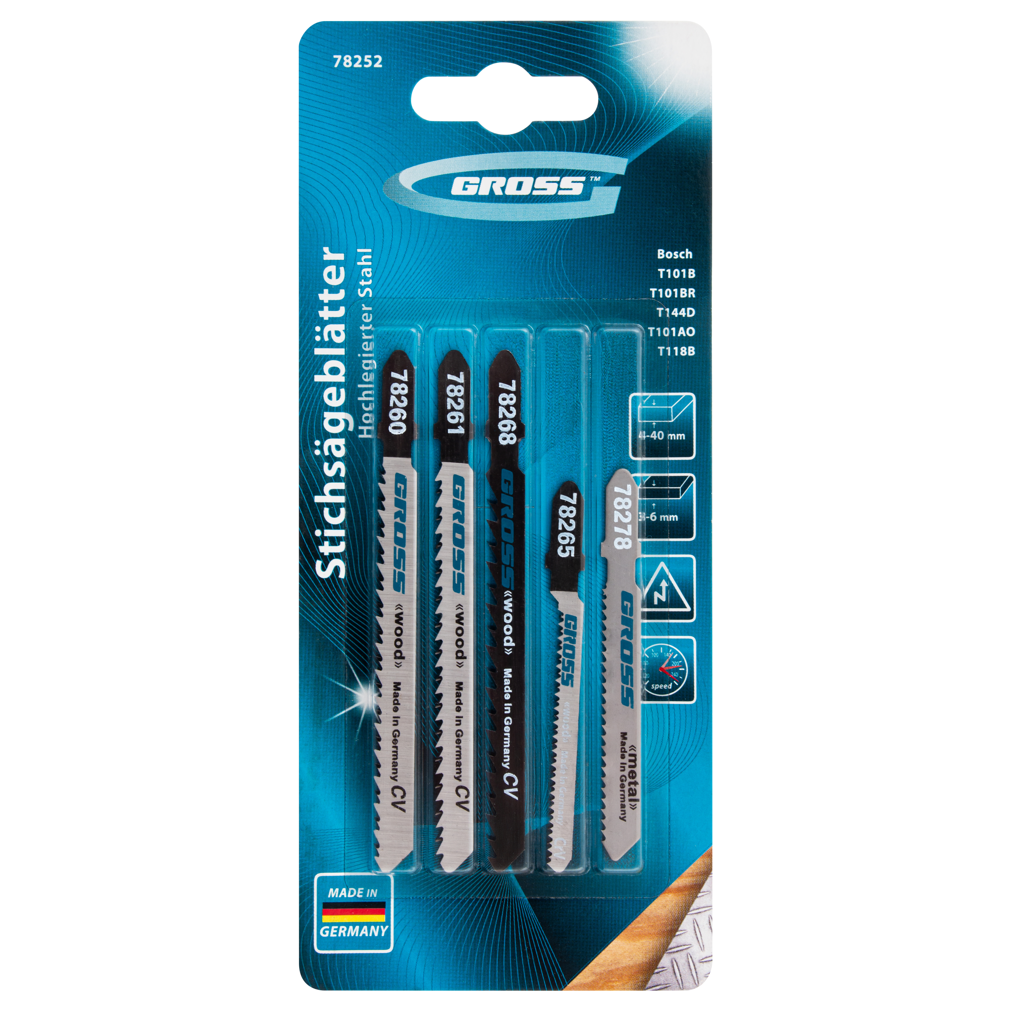 Универсальный набор полотен для электролобзика Gross 78252, 5 шт., предназначен для распила деревянных изделий, ДСП и ДВП. Все режущие элементы в наборе имеют отшлифованную под конус боковую поверхность полотна, поэтому оставляют аккуратную и ровную кромку на месте распила. Набор пригодится частным мастерам и профессионалам на стройке и в мастерской.