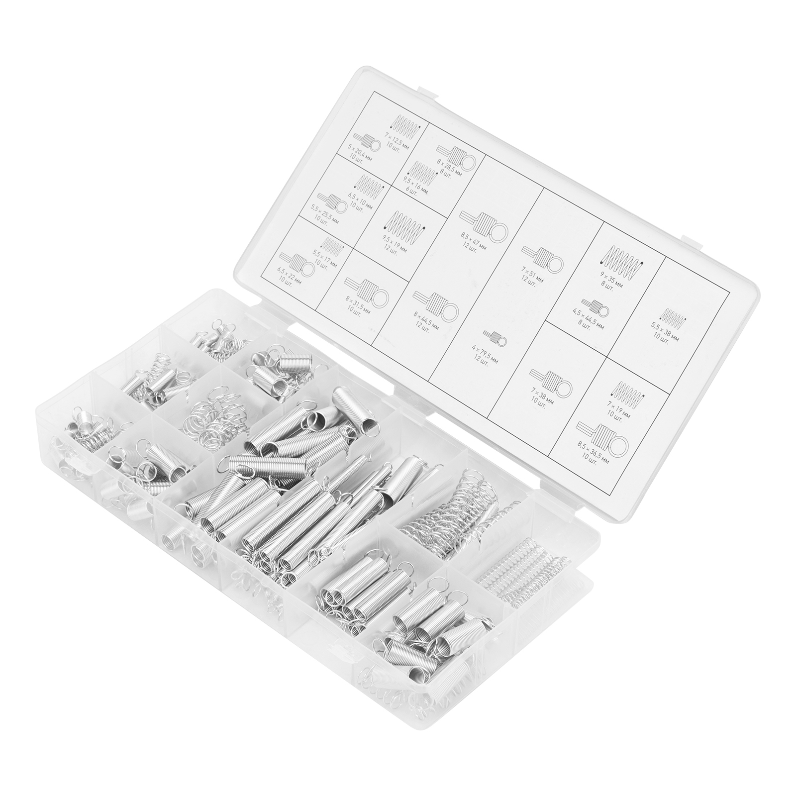 Пластиковый кейс - 1 штПружины растяжения: 4х79,5 мм - 12 шт4,5х44,5 мм - 8 шт5х20,4 мм - 10 шт5,5х25,5 мм - 10 шт6,5х22 мм - 10 шт7х38 мм - 10 шт7х51 мм - 12 шт8х28,5 мм - 8 шт8х31,5 мм - 10 шт8х44,5 мм - 12 шт8,5х36,5 мм - 10Чехол/кейс - 1 шт