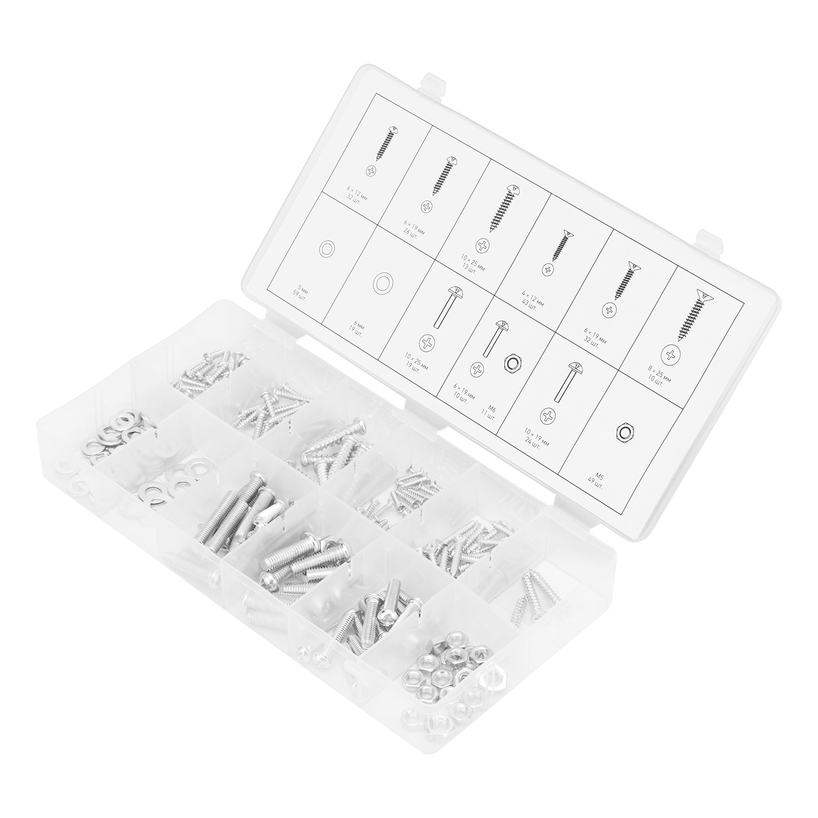 Эффективное решение разнообразных задач — в набор входят крепежные изделия различных типов и наиболее распространенных размеров.