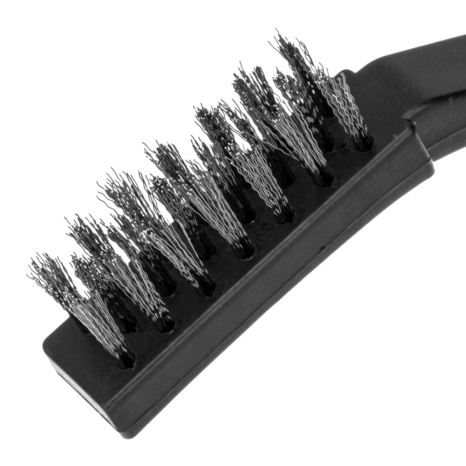 - Высокий ресурс — витая стальная проволока устойчива к деформации, латунированное покрытие защищает щетину от коррозии.
