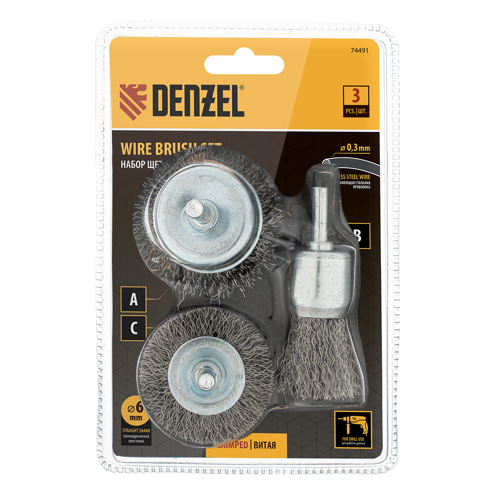 Набор щеток для дрели Denzel 74491 со шпилькой и щетиной из нержавеющей витой проволоки включает в себя 1 плоскую насадку диаметром 50 мм и 2 «Чашки» диаметром 25-50 мм. Набор используется для щадящей обработки твердых поверхностей: металла, стали (в том числе нержавеющей), древесины, пластика, позволяет удалять старые лакокрасочные покрытия, ржавчину и загрязнения. Щетки в форме чашки оптимальны для обработки плоских поверхностей большой площади, плоская насадка удобна для зачистки пазов, изгибов и углов.
