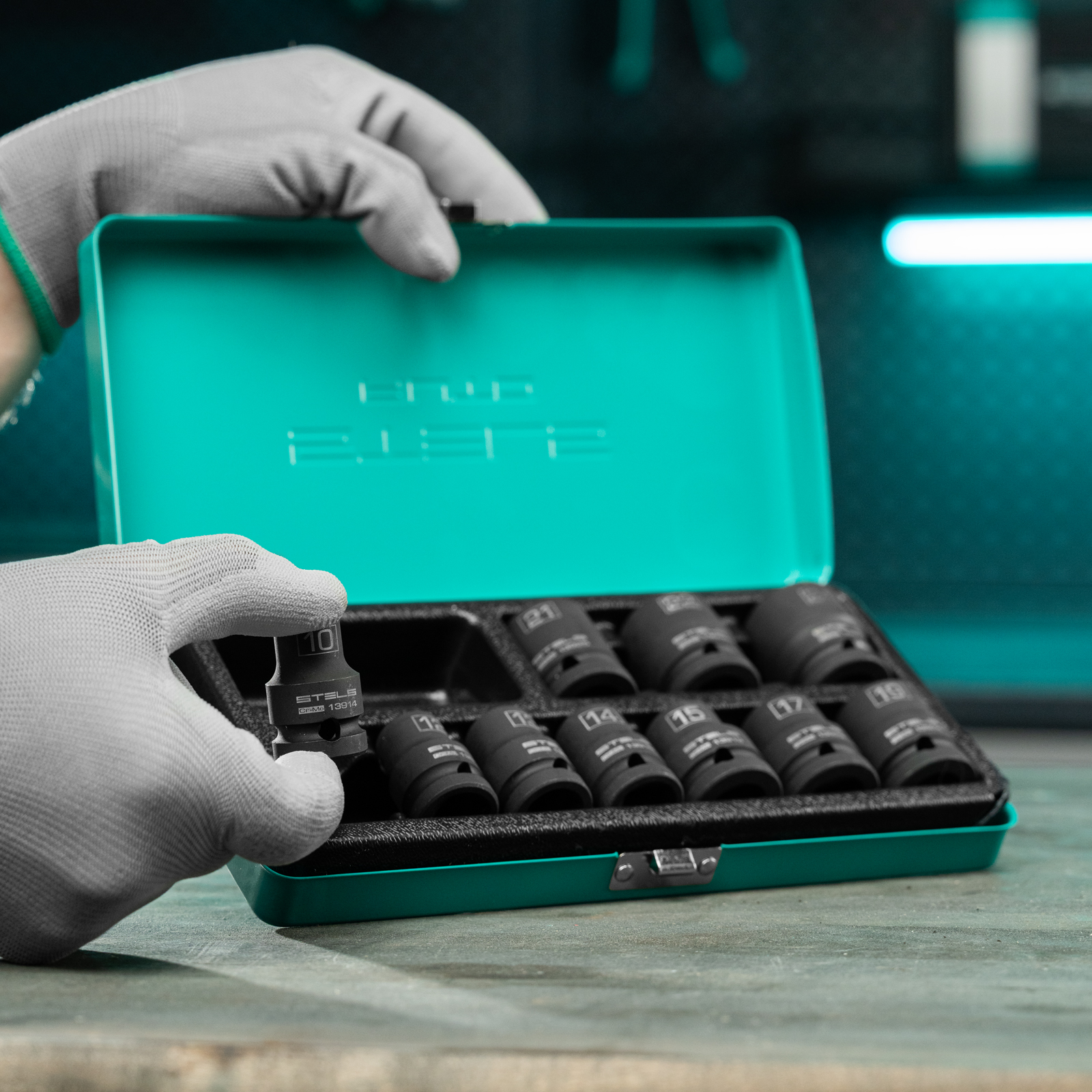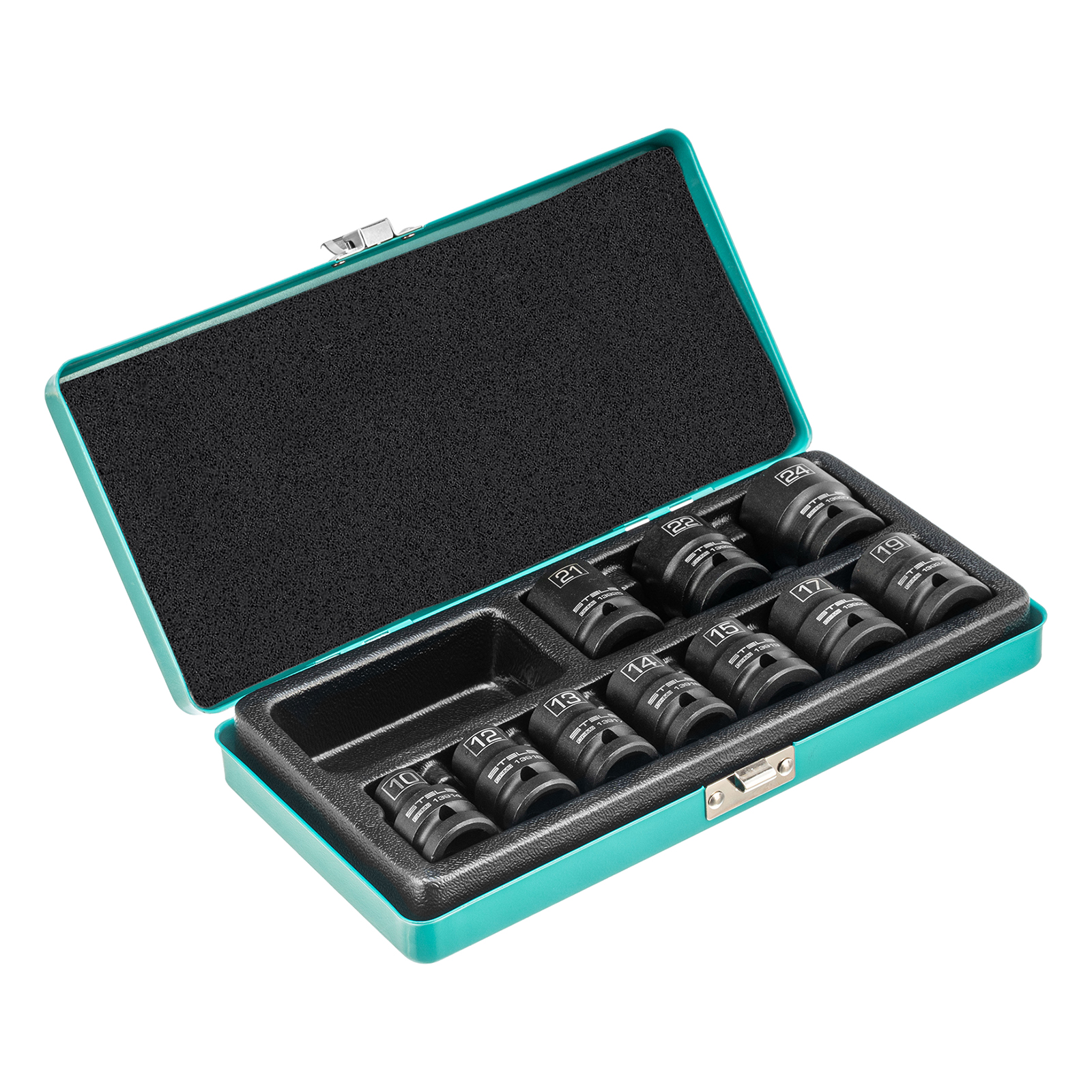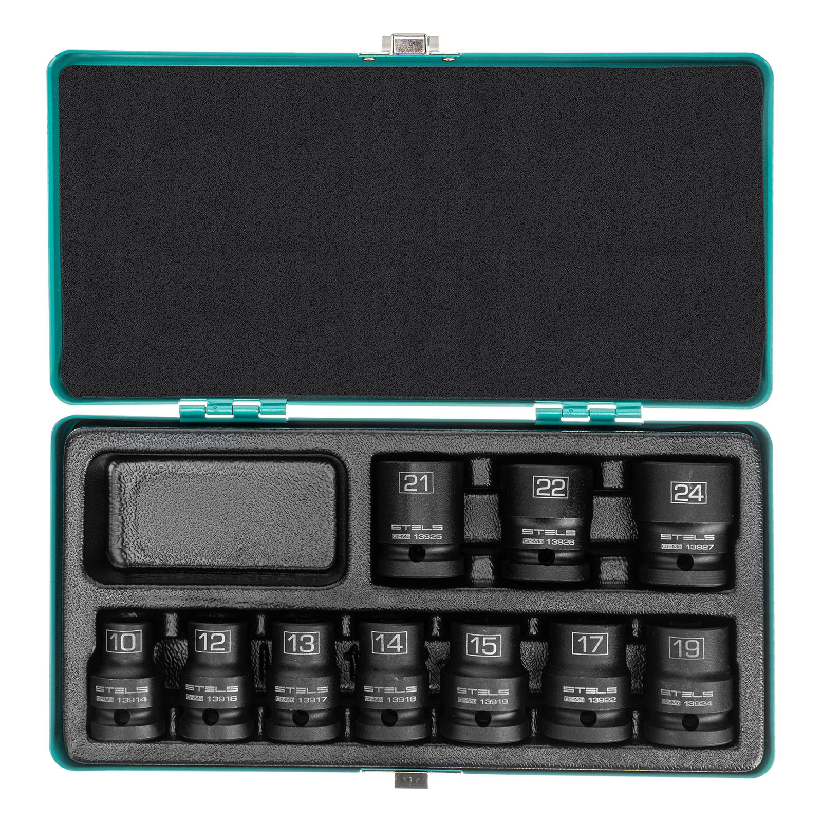 Набор шестигранных ударных торцевых головок Stels 13997 включает в себя 10 насадок размером 10-24 мм с присоединительным квадратом 1/2 дюйма для монтажа и демонтажа крепежных элементов. Используются в качестве оснастки с электрическими или пневматическими гайковертами. Насадки выдерживают интенсивные ударные нагрузки, подходят для применения в автомастерской, на строительной площадке и в слесарном цеху.