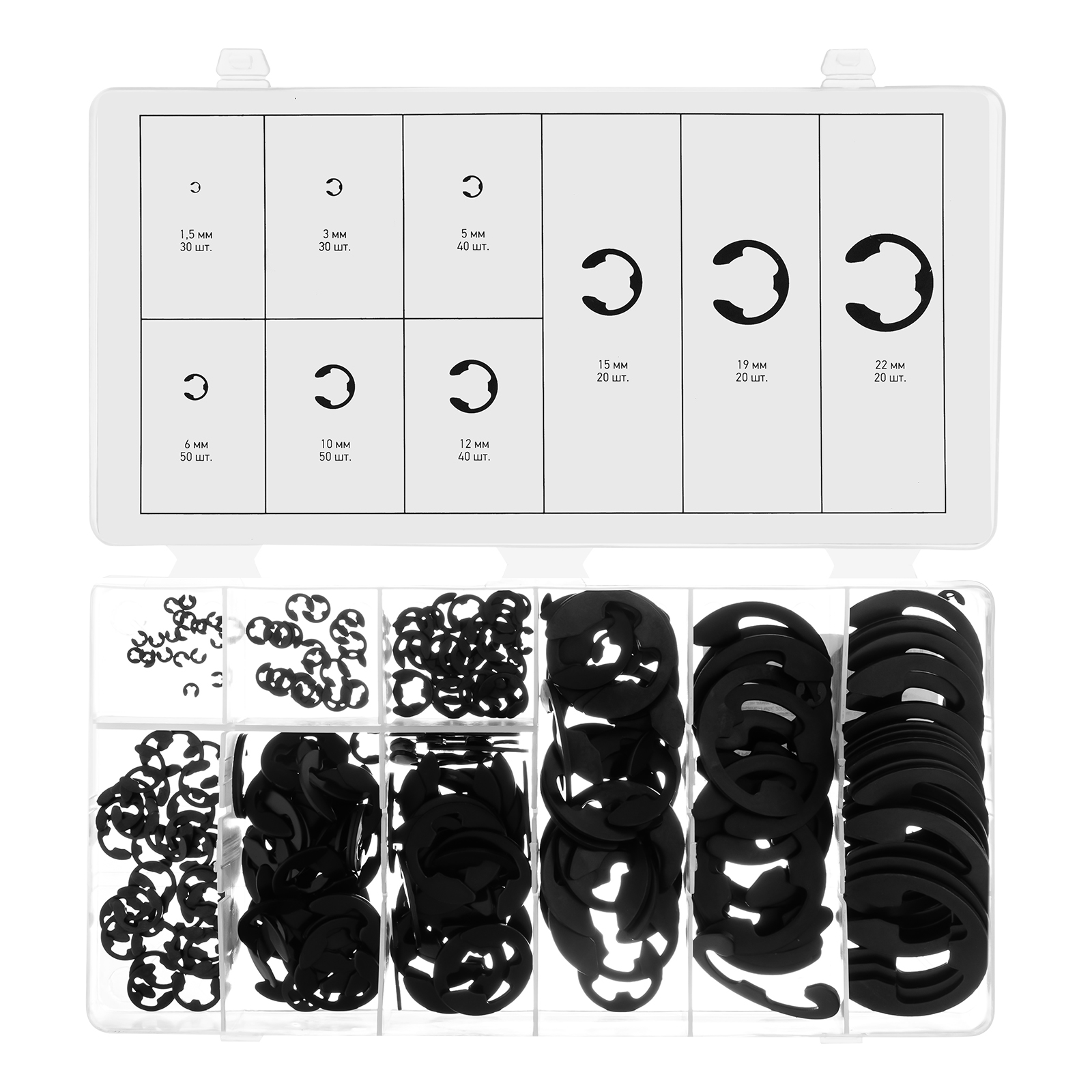 Набор стопорных колец Сибртех 47601 диаметром 1,5-22 мм используется для сборки и ремонта оборудования и включает 300 предметов. Входящие в набор кольца устанавливаются в отверстиях механизмов и предотвращают смещение деталей во время работы. Набор расходников наиболее популярных размеров пригодится для самостоятельного ремонта автомобиля и бытовой техники.