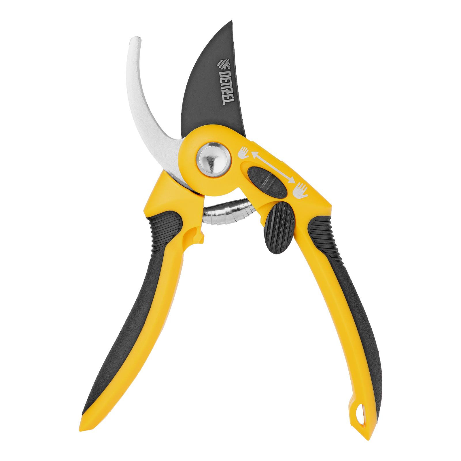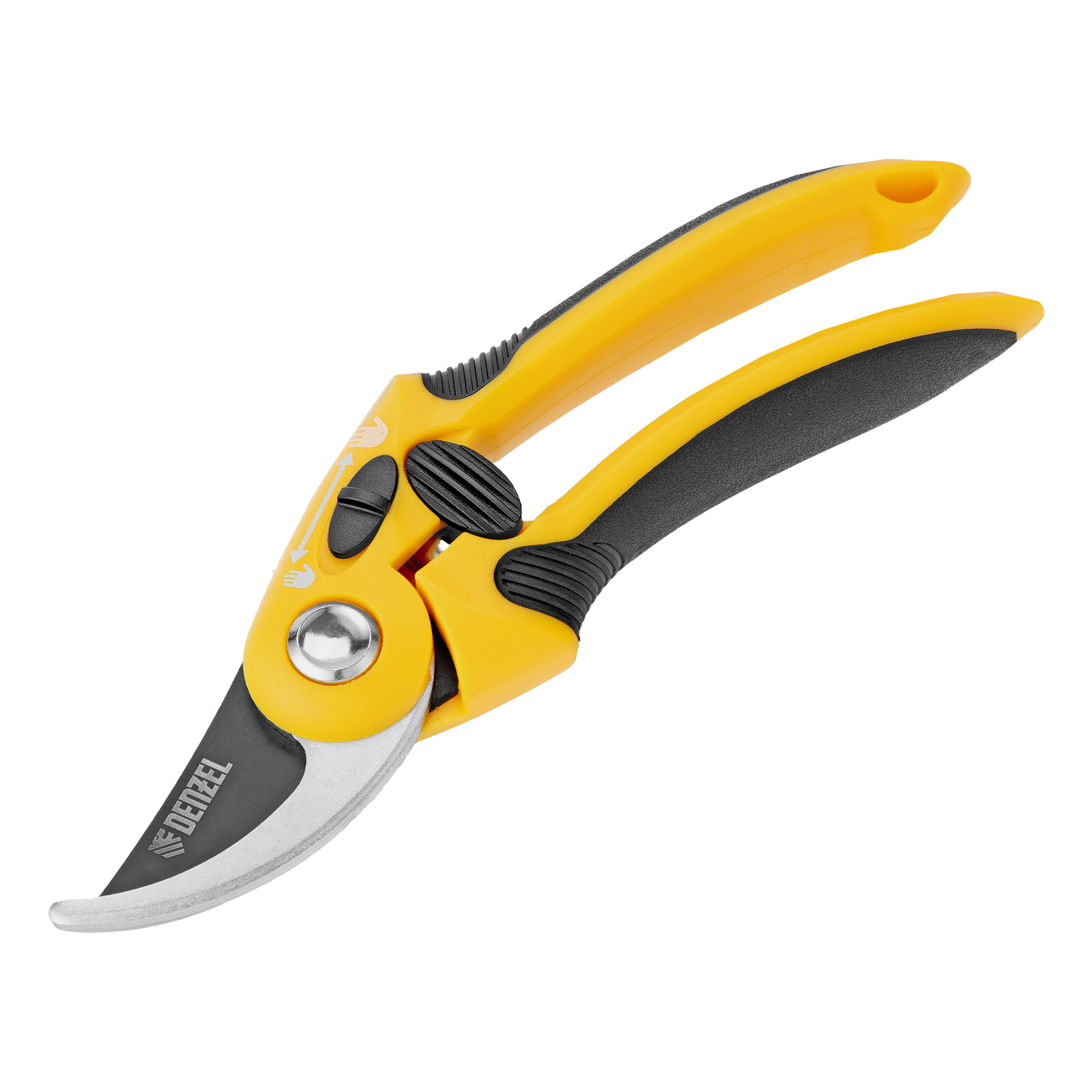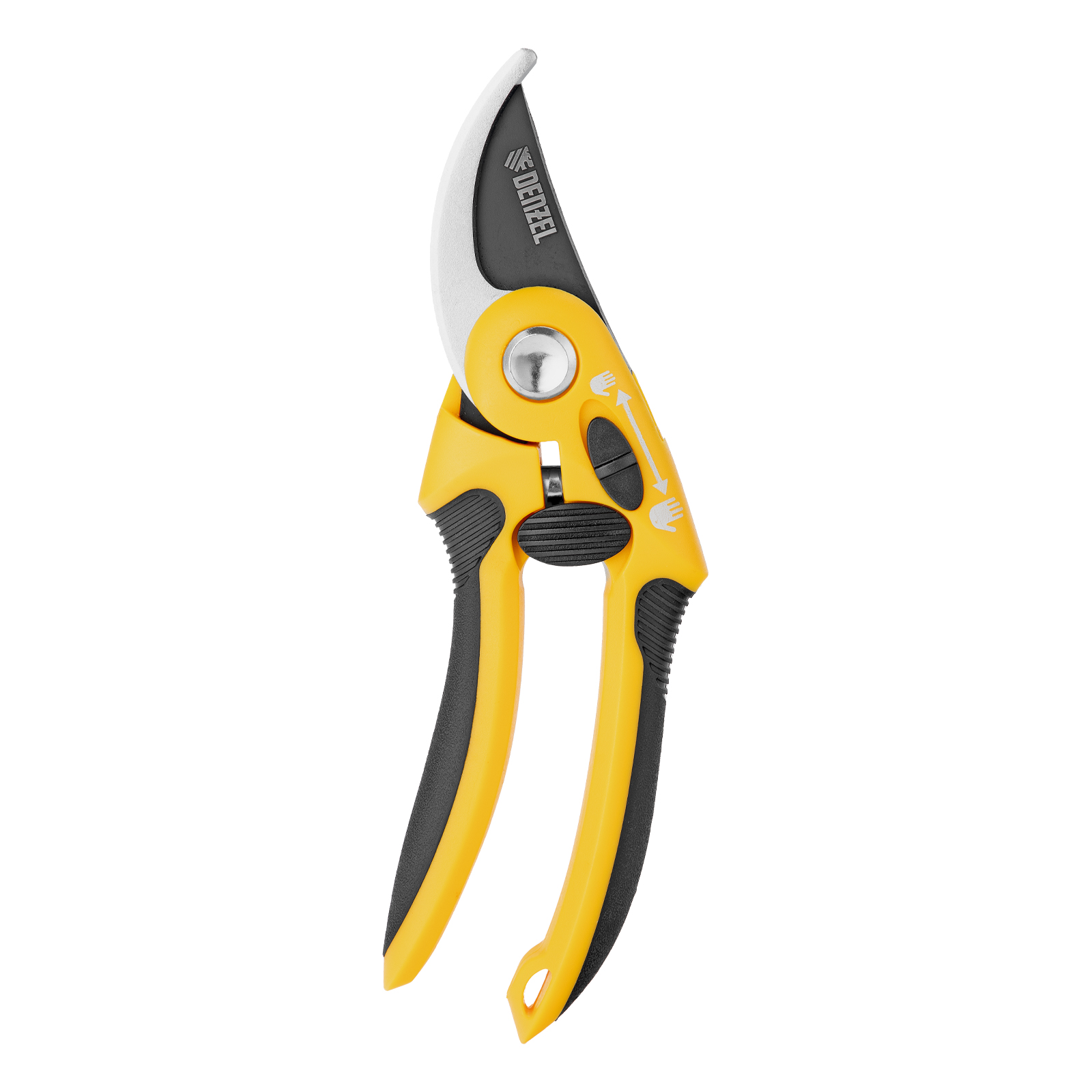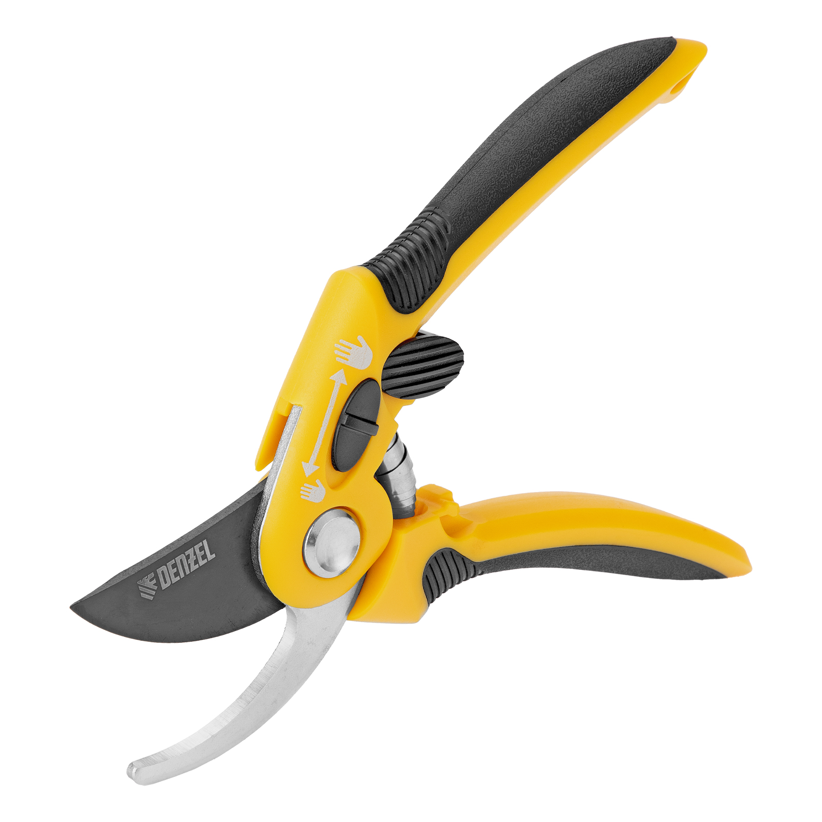 - Комфортное использование — переключатель «большая-малая рука» позволяет отрегулировать ширину захвата секатора.
