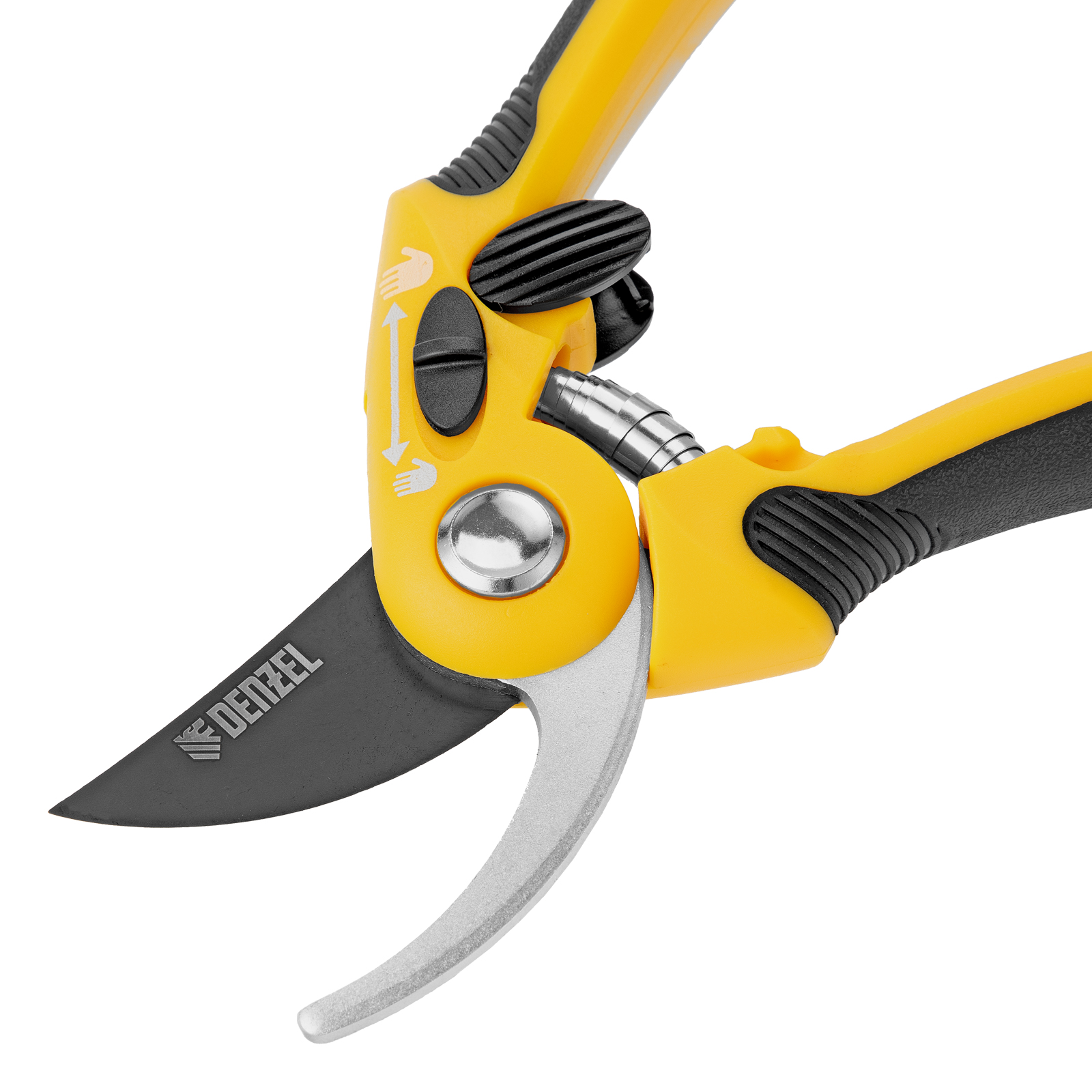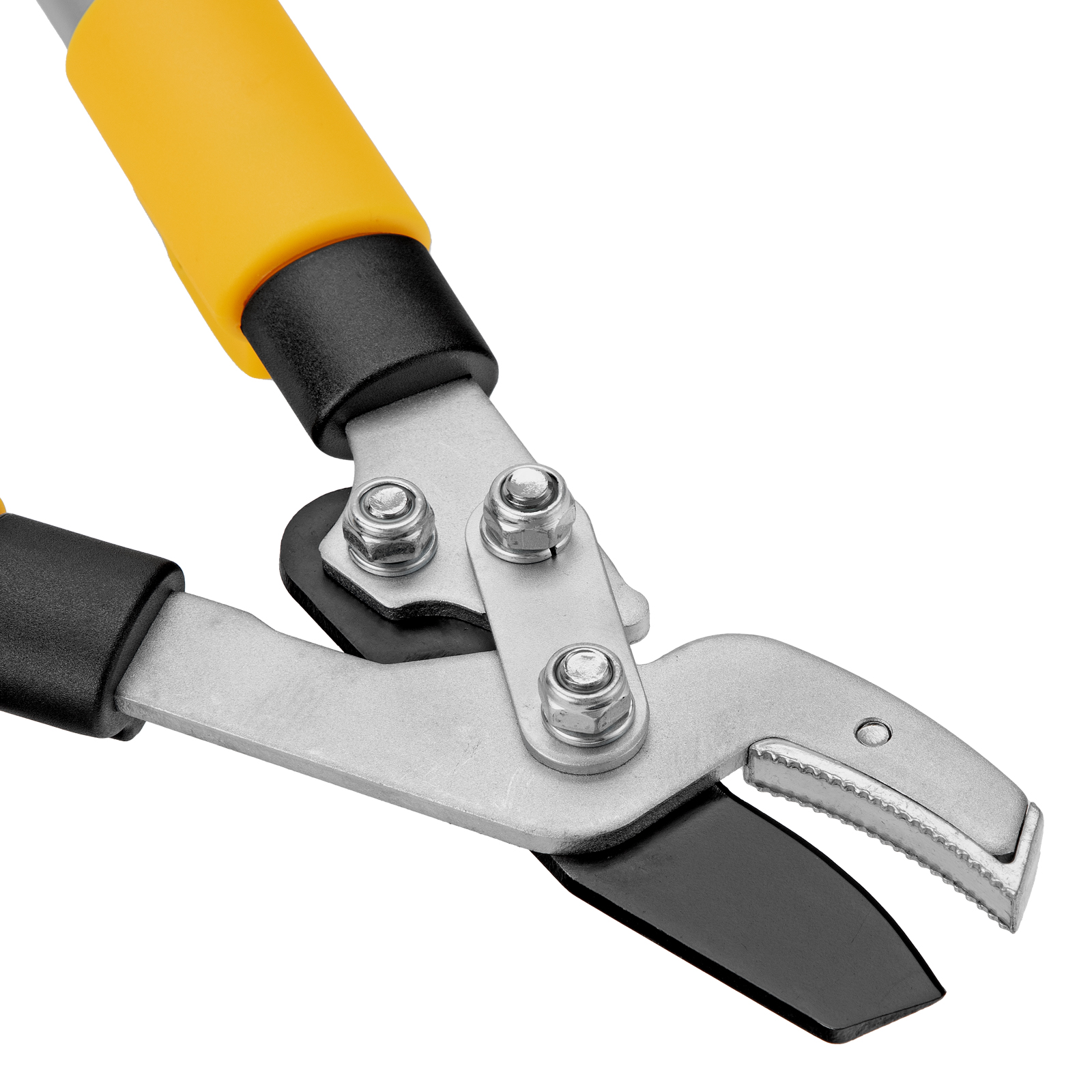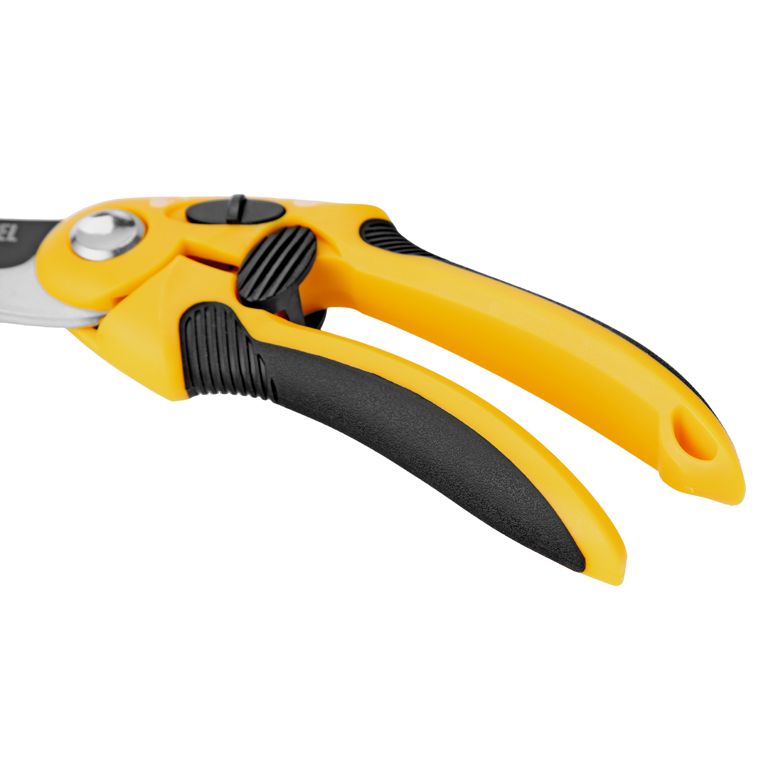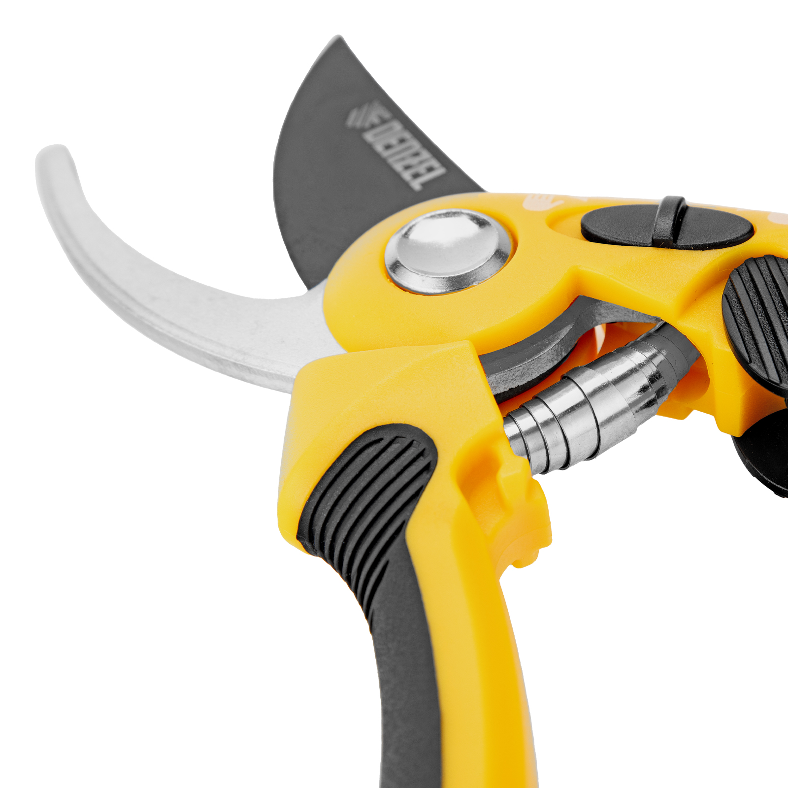 - Надежная фиксация — стальная опорная наковальня сучкореза с рифленой поверхностью предотвращает выскальзывание срезаемых веток.
