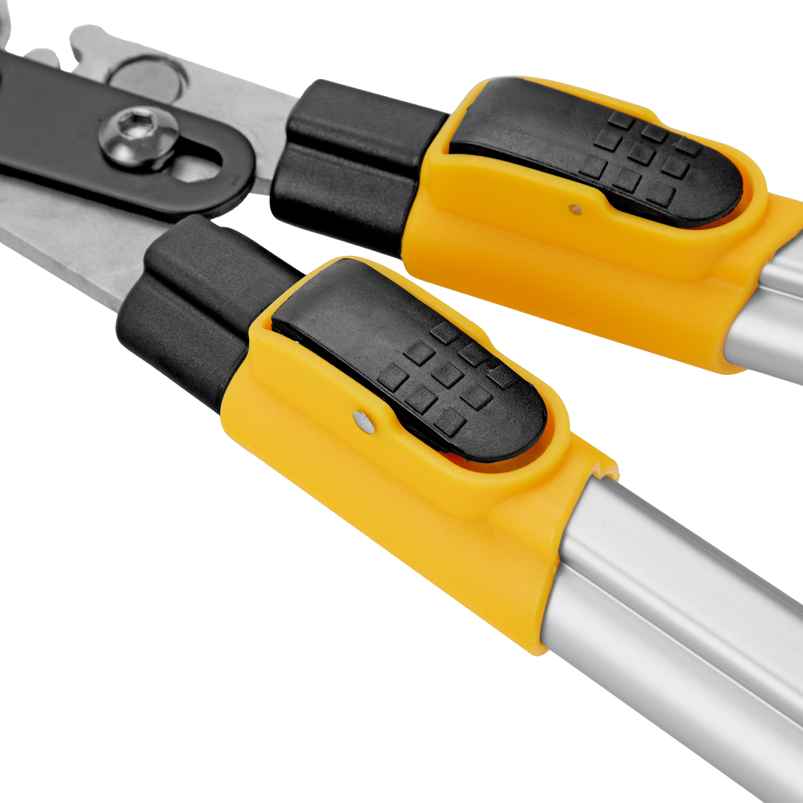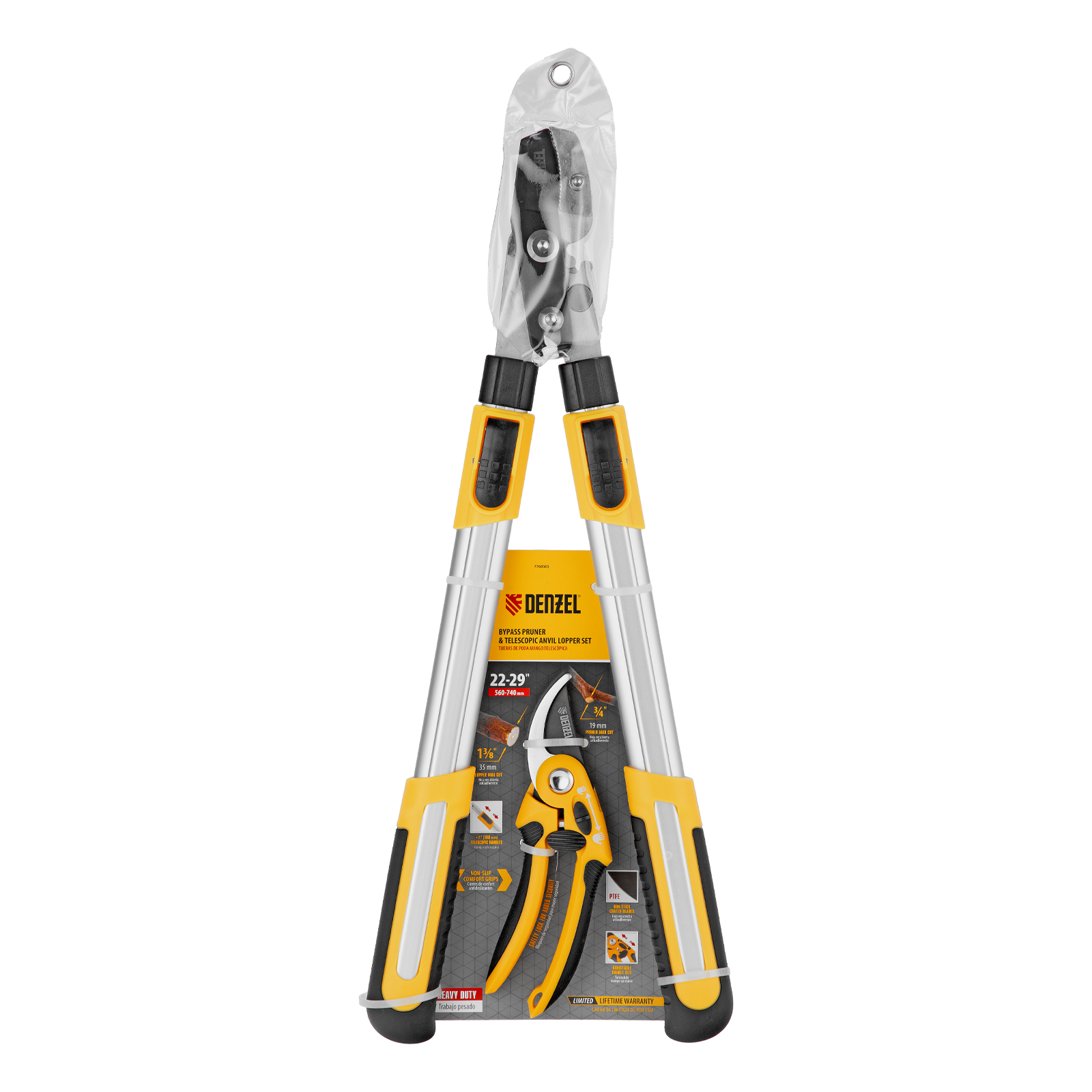 Набор Denzel 7760505 — это секатор прямого реза и сучкорез с телескопическими рукоятками длиной 22-29 дюймов. Секатор предназначен для обрезки живых веток диаметром до 19 мм, а сучкорез оптимален для срезания сухих и увядщих ветвей толщиной до 35 мм. Лезвия с тефлоновым покрытием легко срезают ветви, минимально повреждая растения. Набор будет полезен владельцам загородных участков.