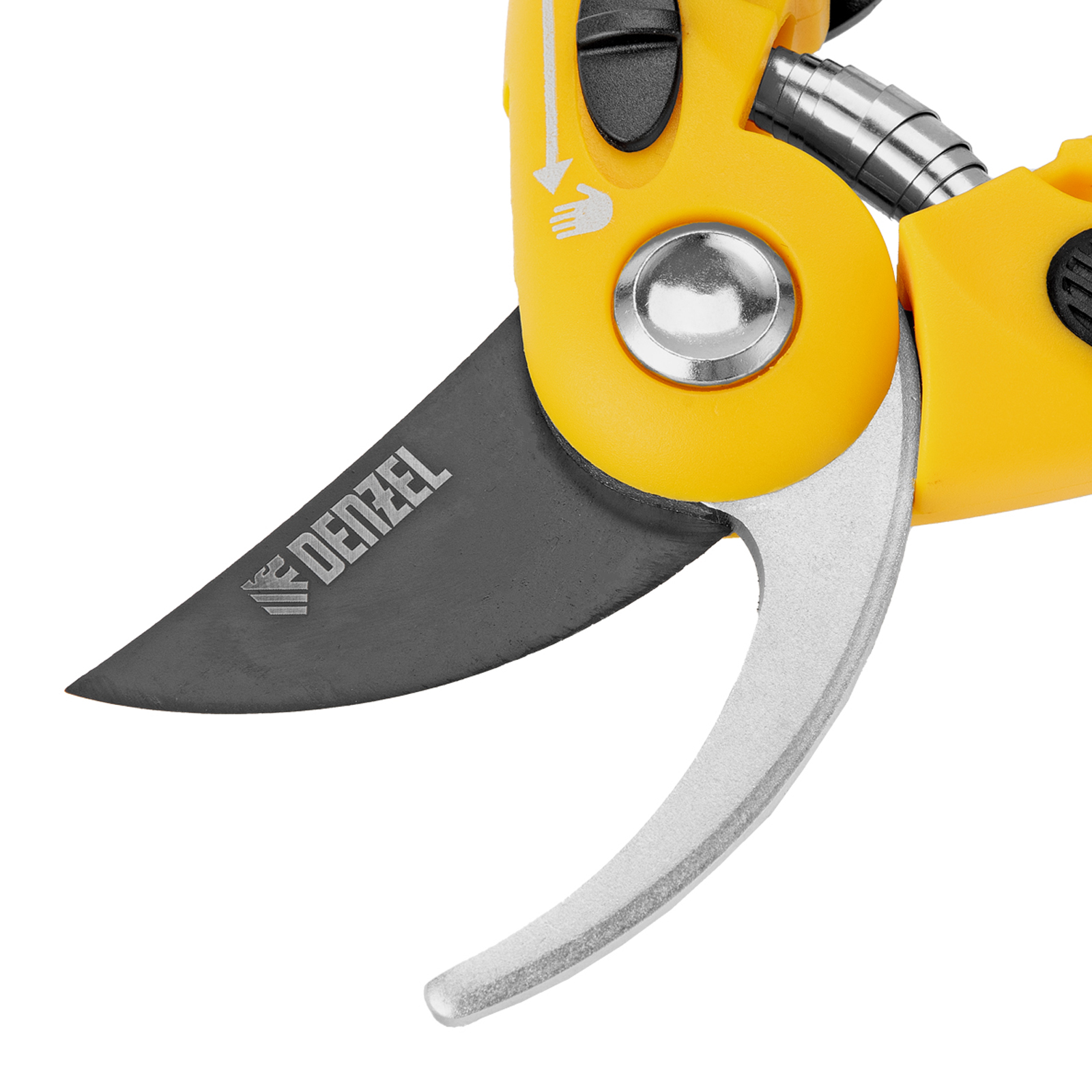 - Безопасное хранение и транспортировка — специальный фиксатор надежно удерживает лезвия секатора в сомкнутом положении.