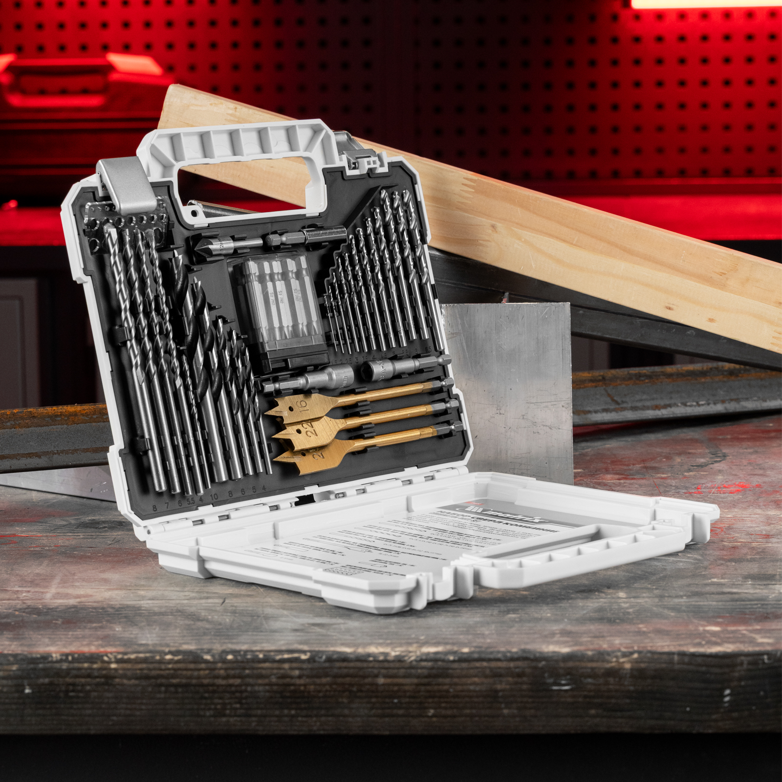 Сверло по металлу 1, 1,5, 2, 2,5, 3, 3,5, 4, 4,5, 5, 5,5, 6, 6,5 - 12 штСверло по бетону 4, 5,5, 6, 7, 8 - 5 штСверло по дереву 4, 5, 6, 8, 10 - 5 штБита PH2 - 20 штГоловка торцева 8, 10 - 2 штСверло по дереву перовое 16, 22, 25 - 3 штЗенковка по металлу - 1 штКалибр - 1 штАдаптер для бит с магнитом - 1 штПластиковый кейс - 1 шт